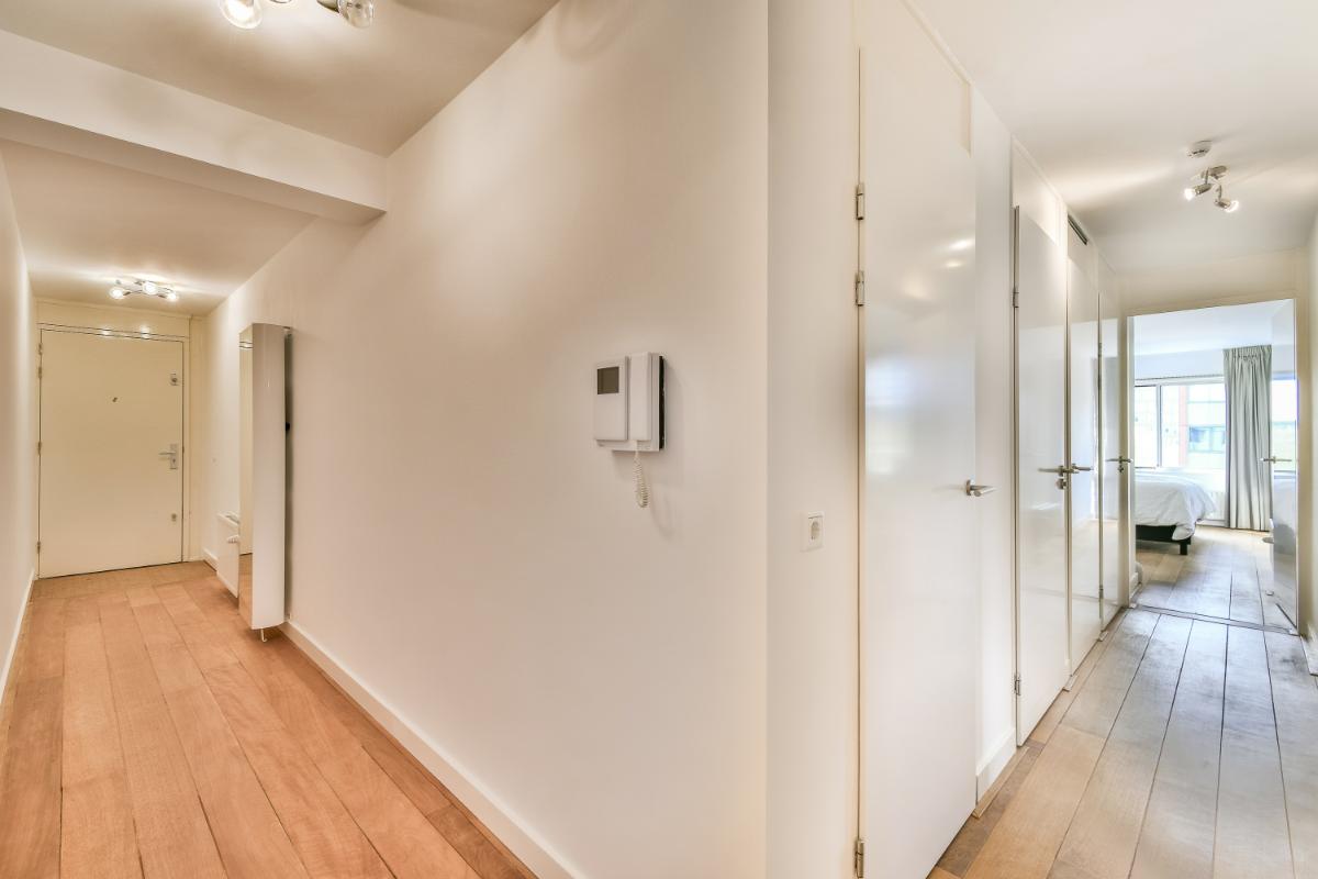 Indeling: De centrale hal van het gebouw met liftinstallatie, videofooninstallatie en trappenhuis is modern en stijlvol uitgevoerd. De ingang van het appartement bevindt zich op de 4e verdieping.