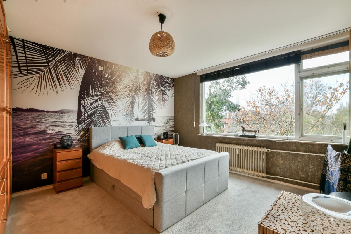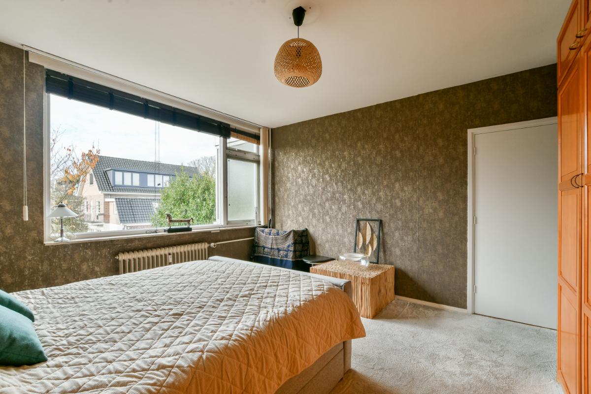 Aan de achterzijde van de woning vindt u de heerlijk ruime slaapkamer, deze is het afgelopen jaar vernieuwd met behang en nieuwe vloerbedekking.