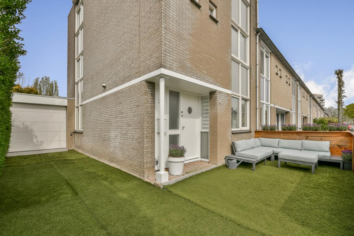 De achtertuin heeft royale afmetingen en is onderhoudsvriendelijk aangelegd met een groot terras, een gazon en borders met vaste beplanting. Door de ligging en begroeiing rondom biedt de tuin veel privacy. Aan de zijkant is er een achterom. De fijne tuin heeft een gunstige zonligging waardoor je op zomerse dagen hier van de middag- en avondzon kan genieten.