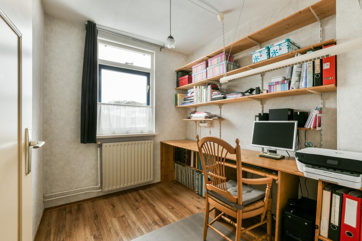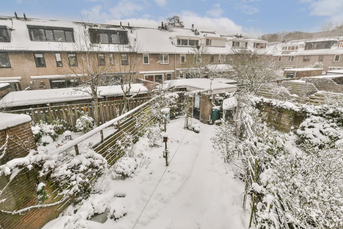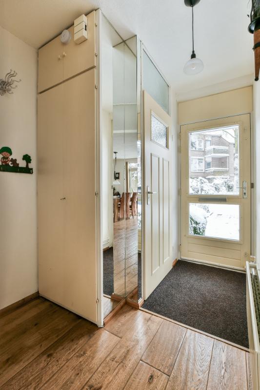 Well-maintained 5-bedroom family home with a large garden located in the child-friendly Middenhoven neighborhood. The house features an entrance hall with a modern toilet, a spacious and bright living room with an open-plan kitchen, and French doors leading to the expansive and sunny back garden. The first floor comprises three generously sized bedrooms and a modern bathroom. The second floor offers a large landing and a fourth bedroom with large skylights. The house is situated on a quiet street in a child-friendly neighborhood. Nearby are the Middenhoven shopping center, several schools, bus and tram stops (Amstelveenlijn), and major roads. There is ample parking on the street next to the house. Layout: The living room is accessible through a spacious entrance hall with a modern toilet, wardrobe, and stairs to the first floor.