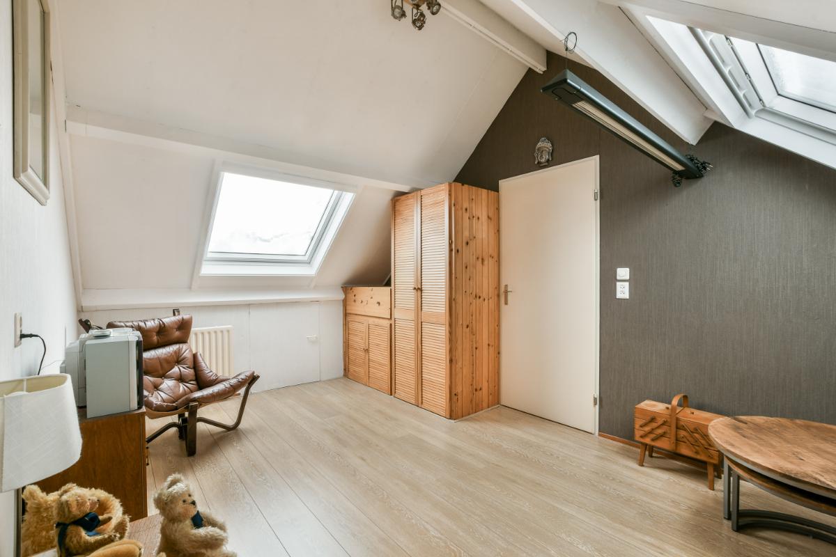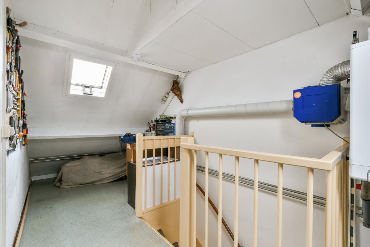 De tweede verdieping bestaat uit een voorzolder en een grote slaapkamer. Op de voorzolder met twee dakramen bevinden zich de c.v.-installatie en de aansluitingen voor een wasmachine en droger. De slaapkamer is voorzien van twee grote Velux dakramen en vaste bergkasten. Deze verdieping kan indien gewenst nog vergroot worden door het plaatsen van dakkapellen.