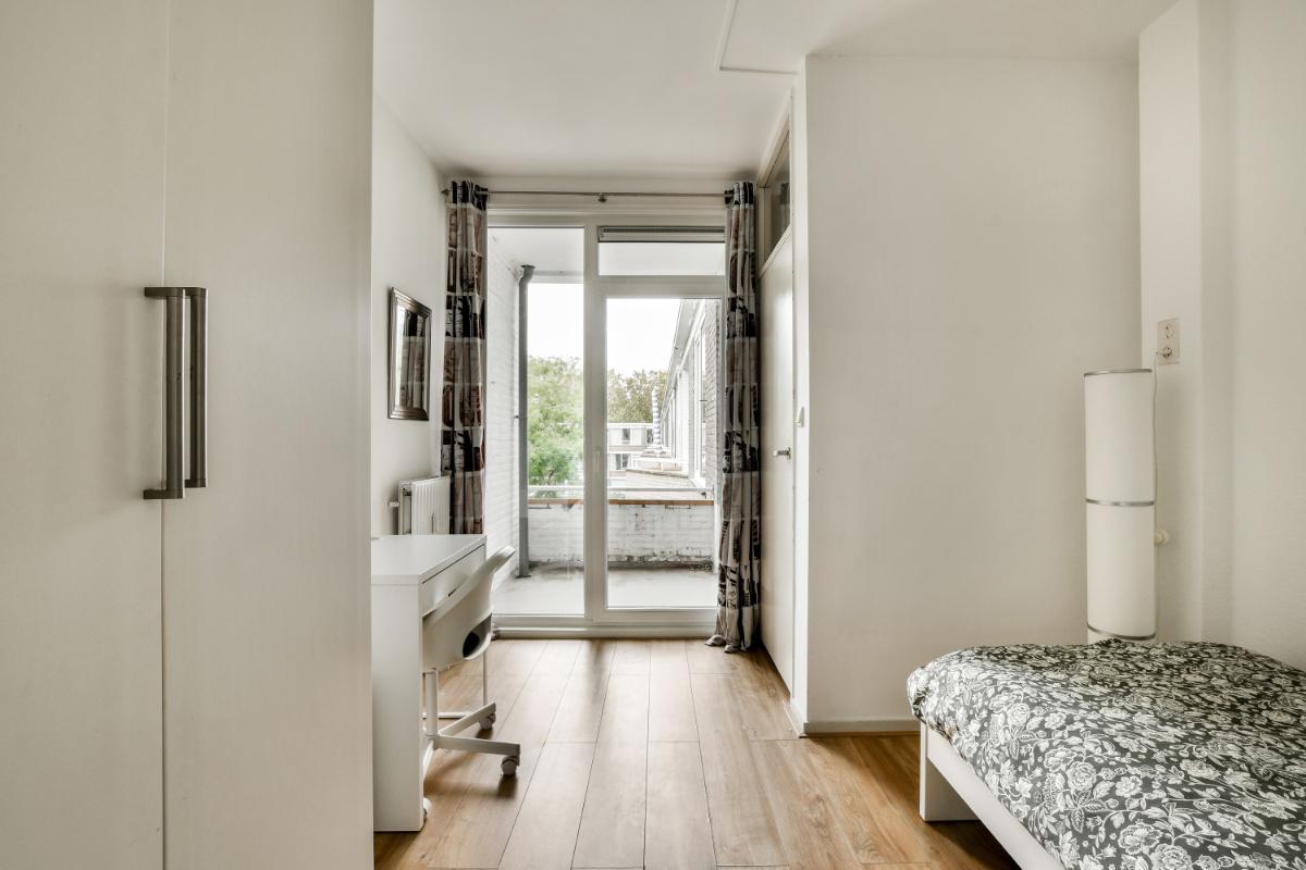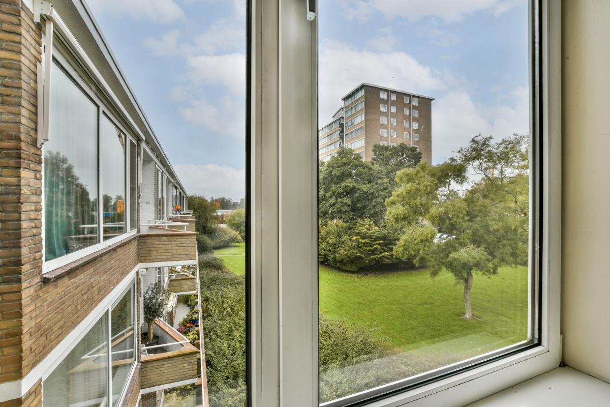 Spacious and bright 2-bedroom apartment in the heart of Amstelveen with unobstructed views. Located on the 3rd and top floor of the well-maintained apartment complex, the apartment includes a storage unit in the basement, a spacious West-facing balcony, and an East-facing loggia. The entrance is secure, and there is no elevator. The apartment is ideally situated next to Meanderpark and, across the street, the Stadshart (city center), where you'll find a wide range of shops, restaurants, the theater, the P60 music venue, the library, and various entertainment venues. Several schools, including the International School, Vrije Universiteit Amsterdam, and the Zuidas business district are also easily and quickly accessible. Amstelveen bus station and tram line 5 are a short walk away, offering fast public transport connections to the Zuidas business district, Amsterdam city center, Schiphol Airport, Haarlem, Amsterdam Bijlmer Arena station, Uithoorn, and Utrecht. Ample parking is available in front of the apartment for residents, with a parking permit.