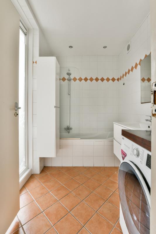 Naast de keuken bevindt zich het toilet en de badkamer. De badkamer beschikt over een groot raam met uitzicht op de loggia, een ligbad met douchegelegenheid en glazen spatscherm, een wastafel met badkamermeubel en spiegel en een designradiator. Ook is hier de aansluiting voor de wasmachine aanwezig.