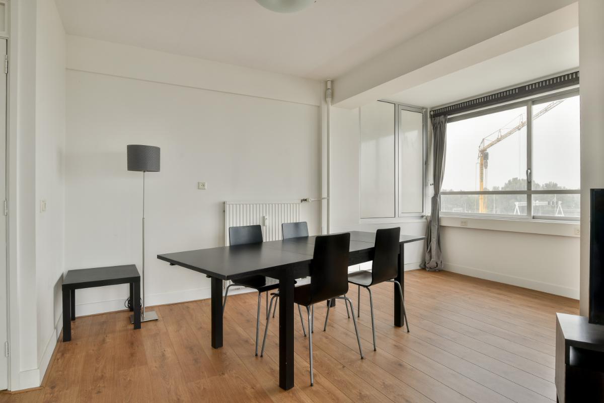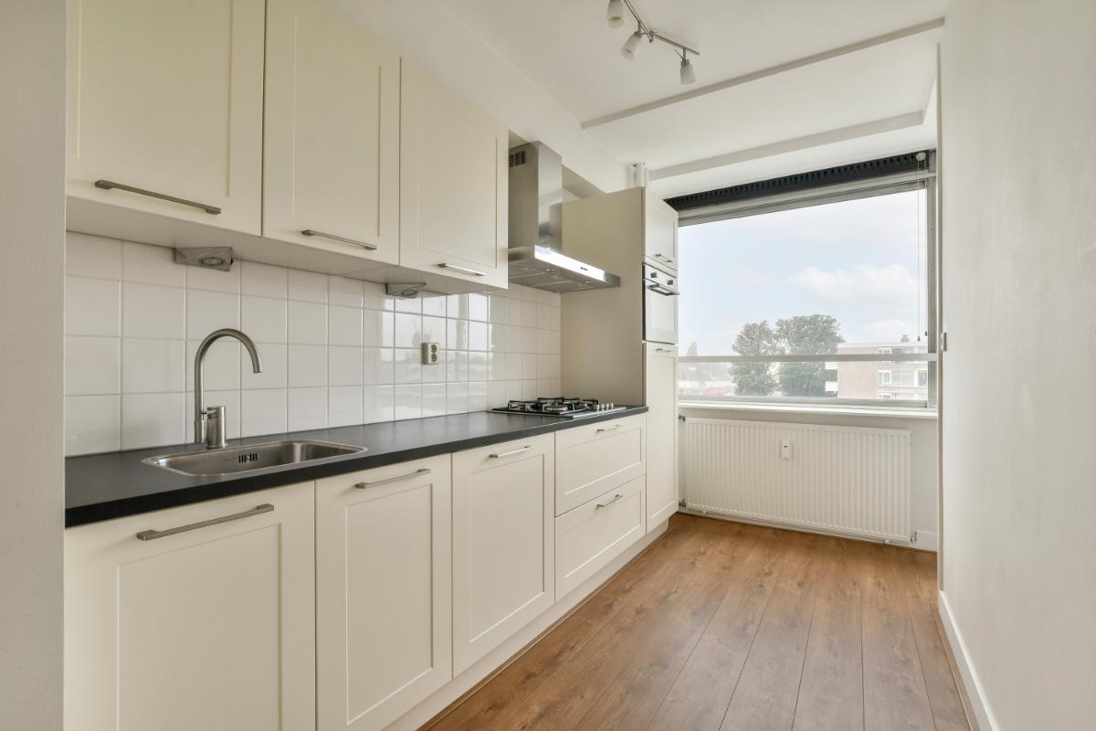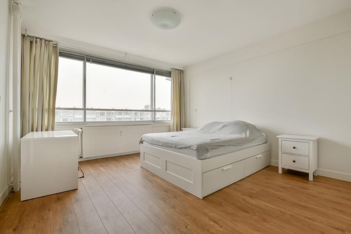 The apartment is located on the 5th floor of a well-maintained apartment complex and includes a storage unit in the basement. There is a secure entrance with a video intercom system, and the complex has an elevator and staircase. The building is ideally located near Stadshart Amstelveen, within walking distance of shops, cultural sites, and restaurants. The bus station is a few minutes' walk away, with good public transport connections to the entire region. Ample parking is available in front of the building thanks to a parking permit system. A park-like green area with several water features is located in the immediate vicinity.