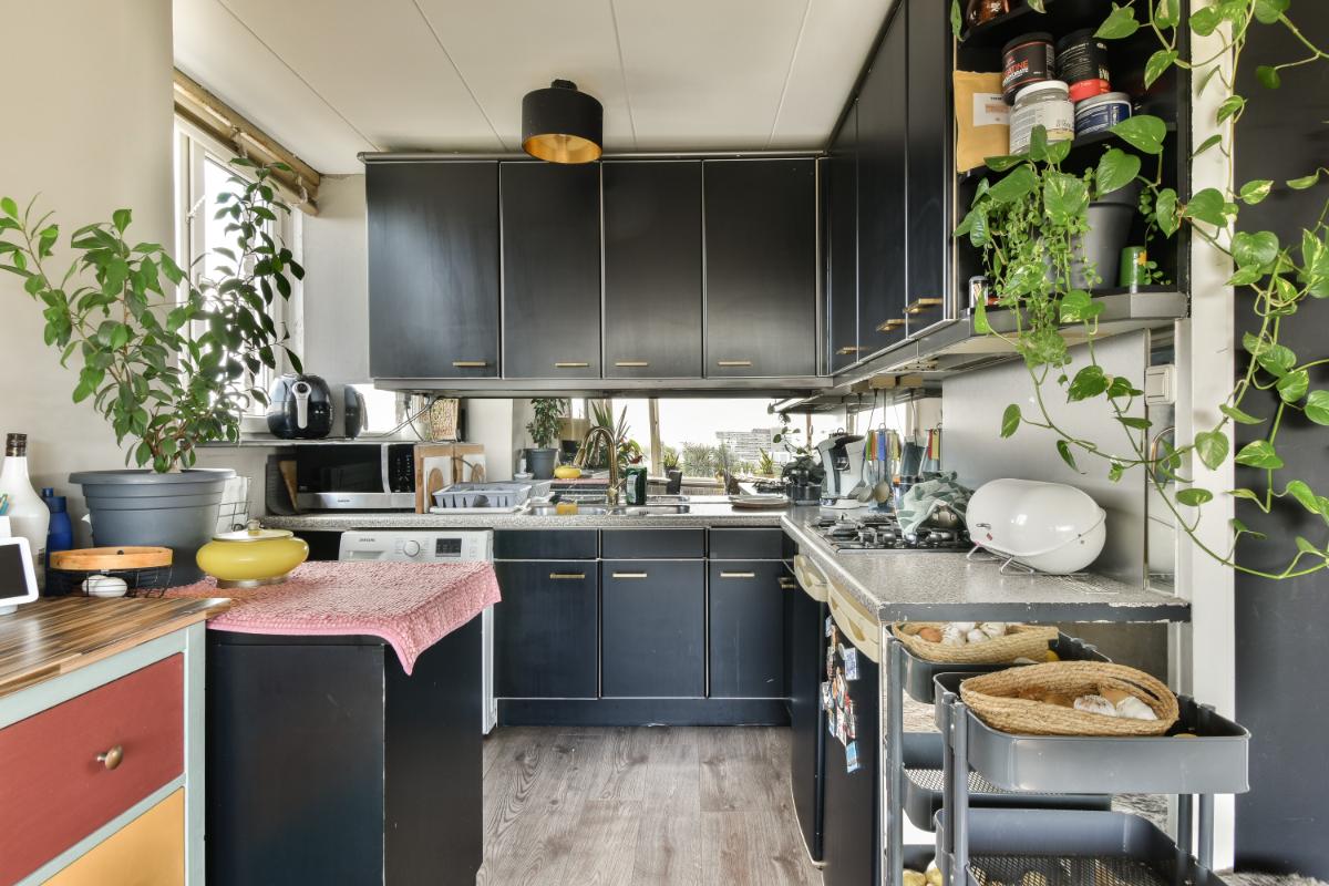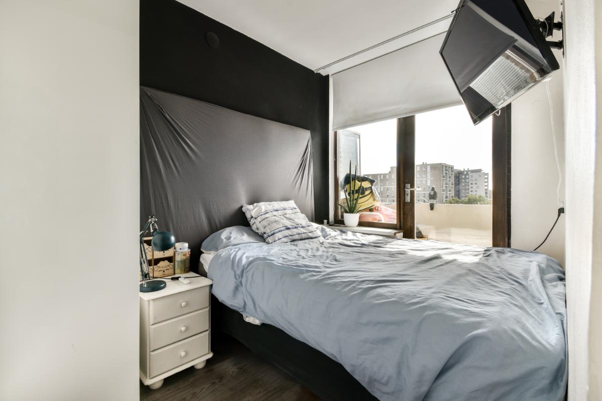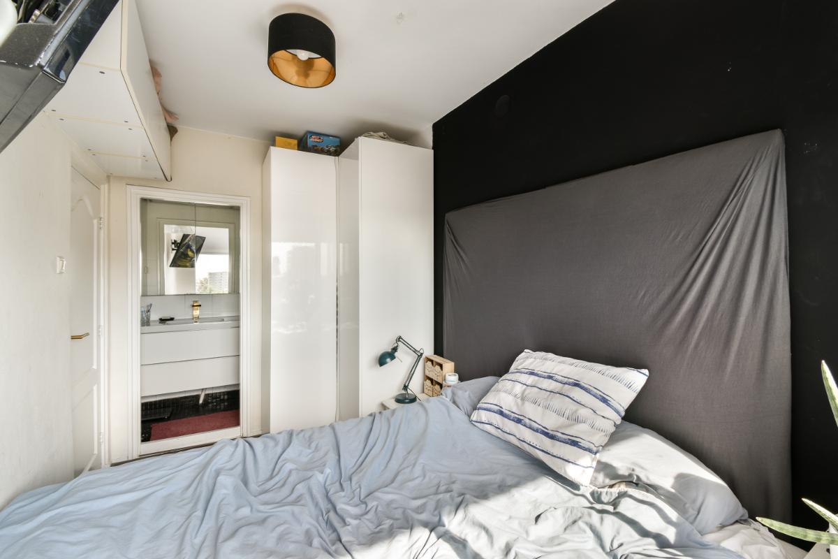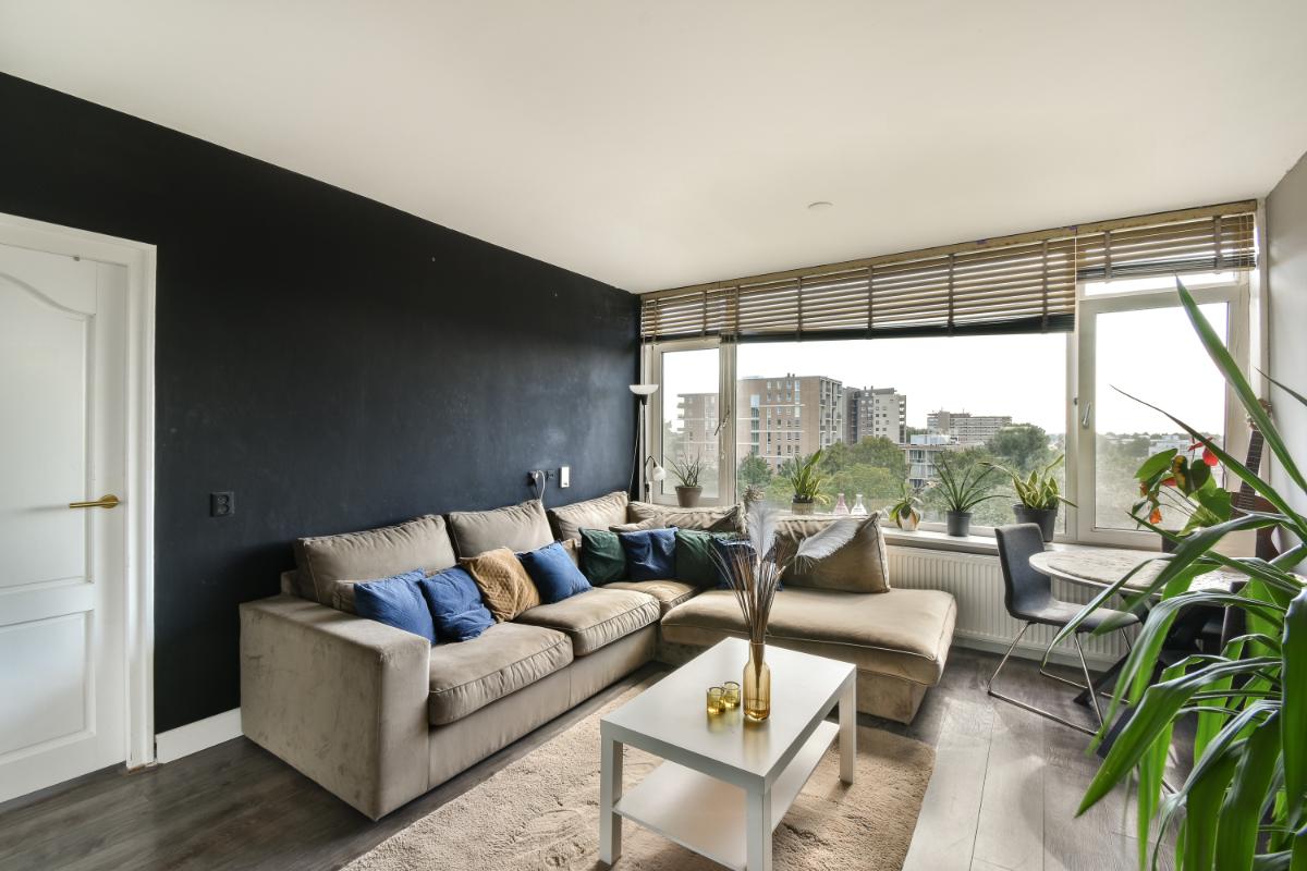 This two-room apartment is located on the 8th/top floor with fantastic views of the green surroundings and De Poel lake. The apartment has a south-facing balcony. The apartment is ideally situated in the wooded Keizer Karelpark residential area. For a walk in the woods, the nearby Amsterdamse Bos is just a few minutes away. In the immediate vicinity, you'll find Amstelveen's city center and the shops on Lindenlaan and Van der Hooplaan for your daily groceries. The Bovenkerk district, with its various restaurants, bars, and sports facilities, is also nearby. Public transport stops, including buses to Amstelveen bus station, Amsterdam, and Aalsmeer, are within walking distance, and major roads (including the A9, A2, and Beneluxbaan) are quickly and easily accessible. This is also a perfect location for people working at Schiphol Airport. For recreation along or on the water, De Poel lake is nearby. The apartment complex has a secure entrance with an intercom system and two elevators. The apartment has a separate storage unit in the basement, and free public parking is available in front of the building. Layout: The apartment complex has a secure entrance with two elevators. The apartment entrance provides access to a separate toilet, the boiler, and the living room with the open-plan kitchen. The living room is wonderfully bright thanks to the large south-facing windows and its corner location. From the living room, you have a view of the green surroundings and the small park adjacent to the building. The living room has laminate flooring. The compact kitchen is equipped with a gas cooktop with extractor hood and a double sink. The kitchen also has a washing machine connection. A side window provides additional natural light and offers a panoramic view of the Poel!