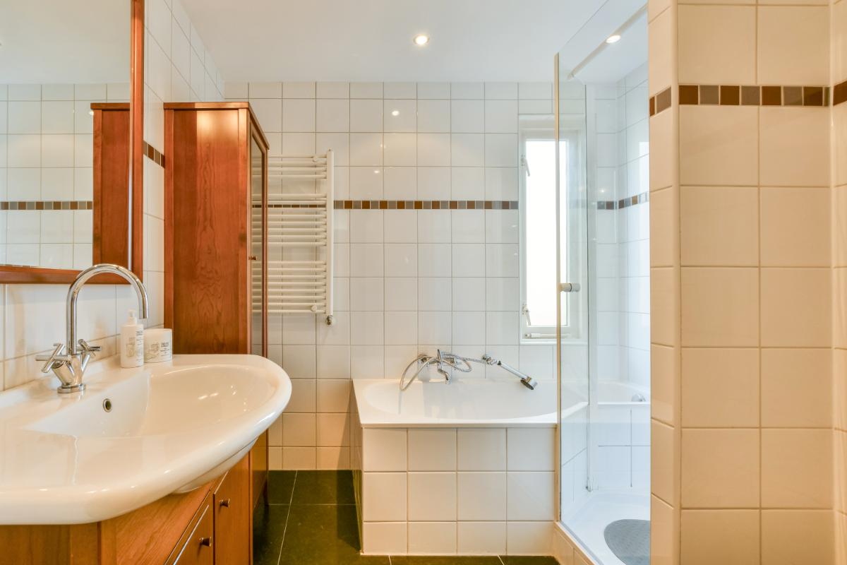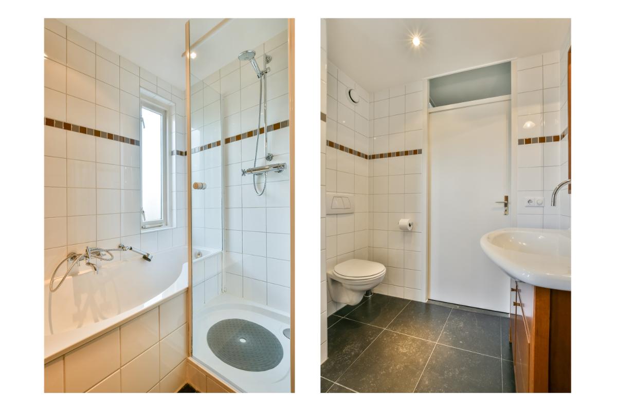 Op de eerste verdieping vind je de overloop die toegang biedt tot drie slaapkamers met goede afmetingen en een verzorgde badkamer. Alle slaapkamer zijn voorzien van een lamelparket vloer. De ruime badkamer is ingedeeld met een douchehoek, een ligbad, een hangend toilet, een wastafelmeubel een handdoekradiator. De badkamer is afgewerkt met witte wandbetegeling en antracietgrijze vloertegels. Ook is er een raam aanwezig voor daglicht en natuurlijke ventilatie.