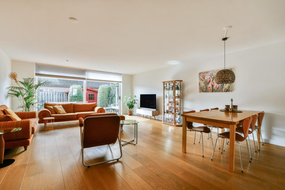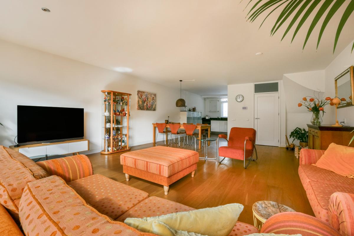 English This modernly finished and extended 5-room home is situated in a pleasant location in Amstelveen. The well-maintained property features, among other things, a spacious living room with an open (Siematic) kitchen at the front, a beautifully landscaped south-facing garden, four bedrooms, and a well-kept, spacious bathroom. The second floor offers possibilities for installing two dormer windows. The house is located on a quiet street, next to a park in the child-friendly and green residential area of Waardhuizen. You can park on private property at the front, and there is also parking available on the public road surrounding the house.