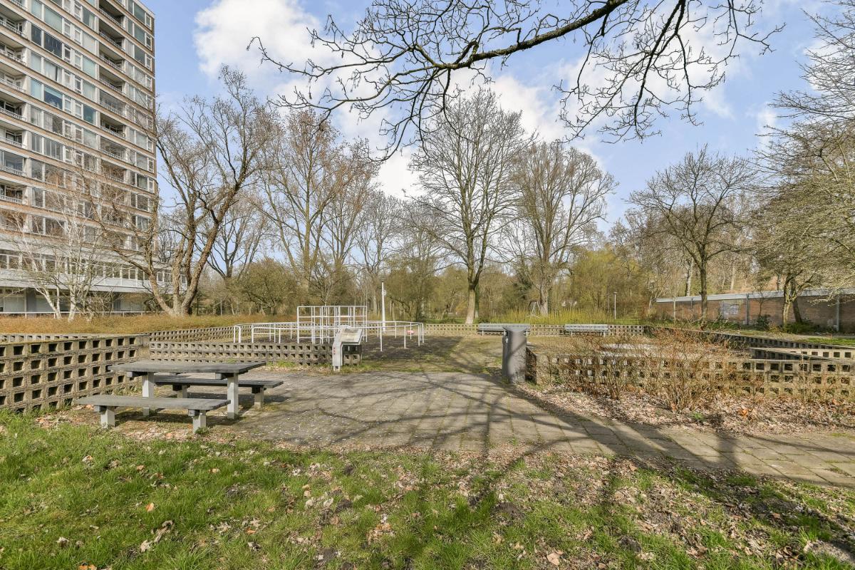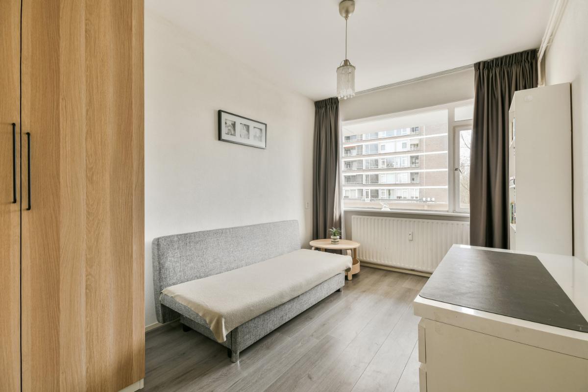 This spacious 3-room apartment is located on the second floor (first level) of a complex with an elevator. The apartment features, among other things, two spacious bedrooms, a modern eat-in kitchen and bathroom, a west-facing balcony, and a storage unit in the basement. The building is centrally located on a quiet street in the Buitenveldert residential area, on the border of Amstelveen and Amsterdam. The Amsterdamse Bos is just around the corner and is an ideal place for nature and sports enthusiasts due to the various running routes, cycling and walking paths, and recreational opportunities such as rowing, canoeing, and all kinds of sports clubs. The Amstelpark and the River Amstel are also within cycling distance. The Groot Gelderlandplein shopping center, the Zuid-As, the World Trade Center, Zuid WTC station, the Vrije Universiteit, various schools, and the Amsterdam UMC hospital (VU location) are nearby. The center of Amsterdam is only a 20-minute bike ride away. Accessibility is optimal with bus connections, the (express) tram, Station Zuid, and the A9 and A10 motorways nearby.