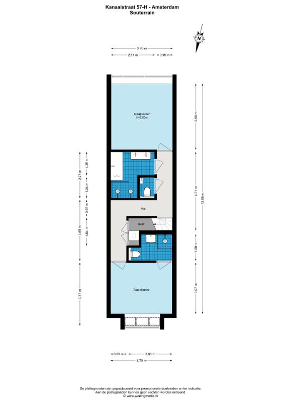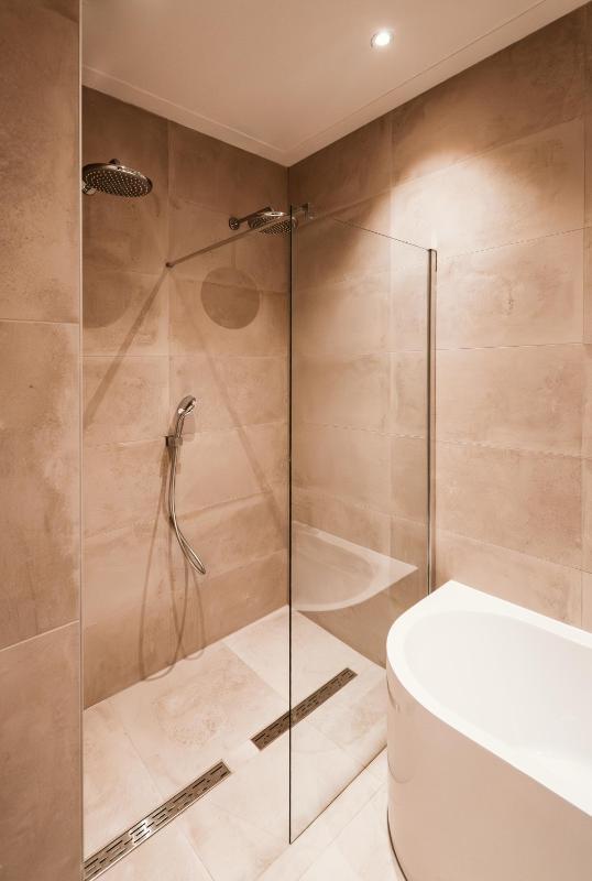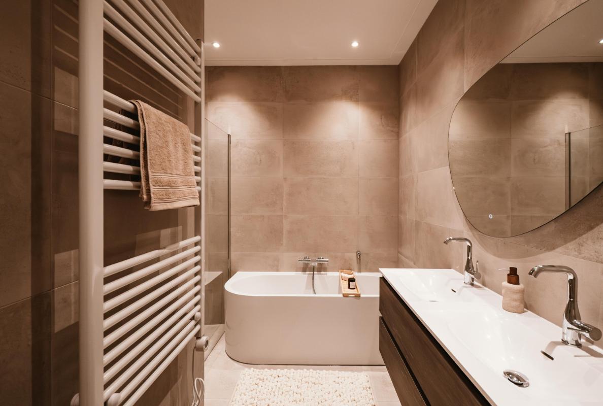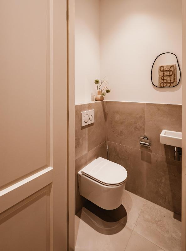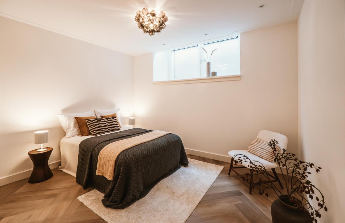 In het souterrain bevinden zich twee comfortabele slaapkamers met voldoende daglichttoetreding door de diepe lichtkoekoeken aan beide zijdes van de woning. Er zijn twee luxe badkamers: één met ligbad, inloopdouche en dubbele wastafel, en één met inloopdouche, dubbele wastafel en toilet. Daarnaast beschikt de woning over nog twee aparte toiletten (op beide verdiepingen één) en een praktische wasruimte. Dankzij de vloerverwarming door het hele huis en de hoogwaardige afwerking is comfort hier vanzelfsprekend.