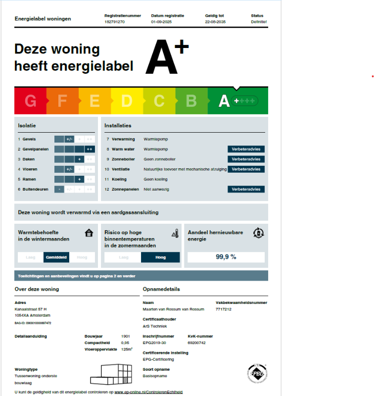 Bijzonderheden / kenmerken - Woonoppervlakte ca. 115 m² - De woning wordt verkocht inclusief nieuw aangeschafte raambekleding en verlichting - Geheel vernieuwbouwd in 2025 - Energielabel A+ (volledig geïsoleerd) - Eigen grond (géén erfpacht) - Tuin op het zuiden - Nieuwe fundering (2024/2025) - 3 slaapkamers, 2 badkamers, 3 toiletten - Oplevering in overleg - Koopakte conform RING model Amsterdam