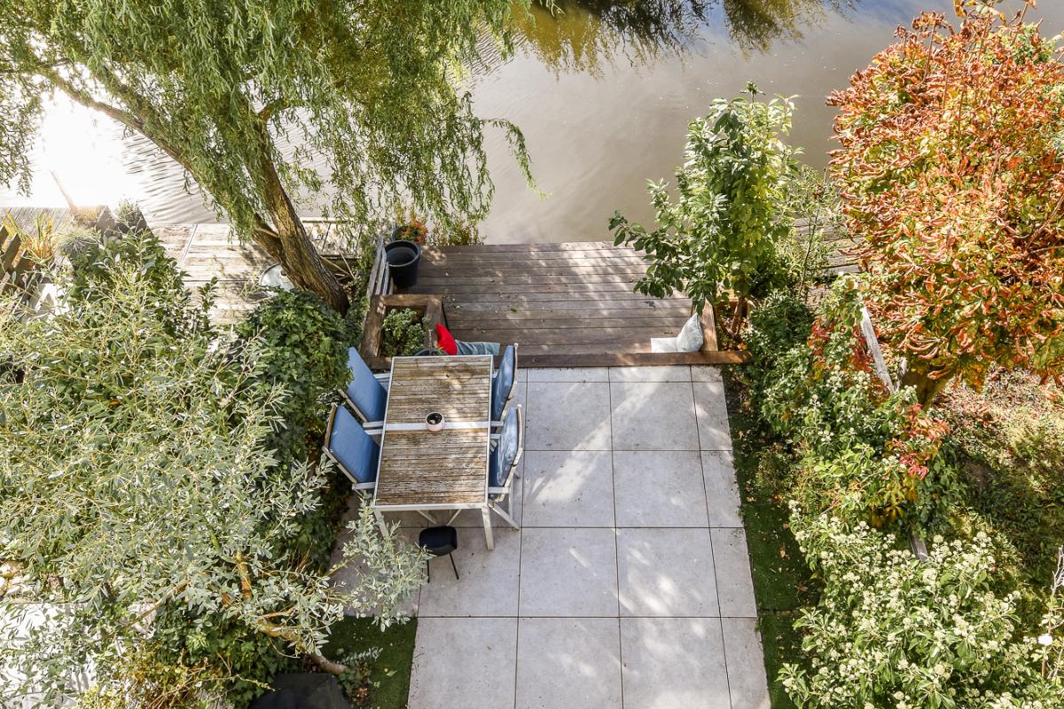 Indeling: De woning heeft een entree met meterkast en een modern toilet. Naast de entree beschikt de woning over een praktische inpandige berging met een buitendeur, verwarming en elektra. De entree van de woning geeft toegang tot de heerlijk ruime en lichte woonkeuken. En vanuit de woonkeuken loopt je zo de sfeervolle tuin in die op het zuiden is gelegen en enkele jaren geleden opnieuw is aangelegd. Direct bij de achtergevel is er een groot terras op hetzelfde niveau als de woonkeuken en achter in de tuin bevindt zich een tweede terras dat op een iets lager niveau ligt en direct aan het water.