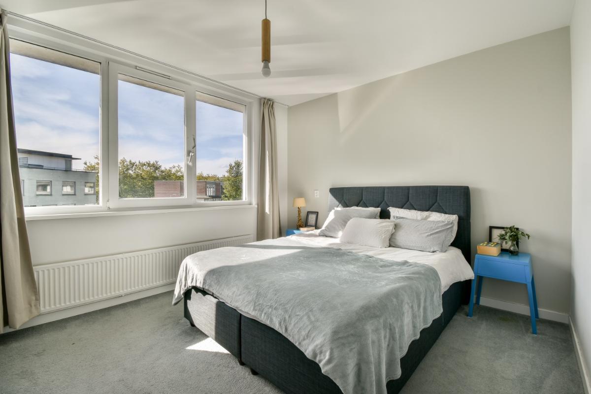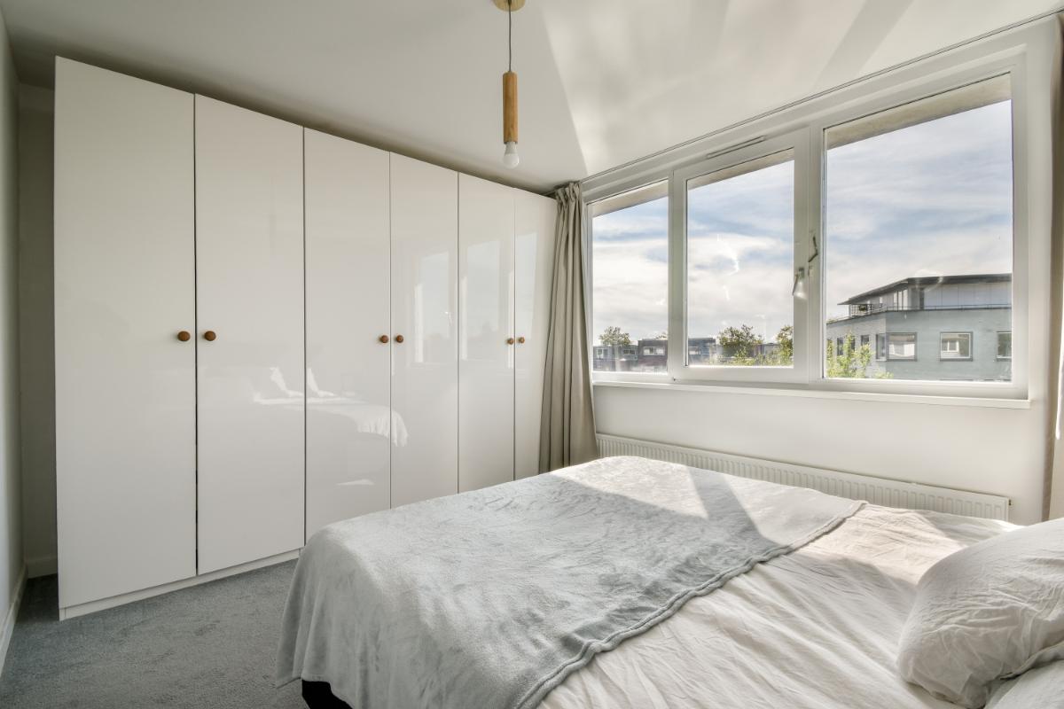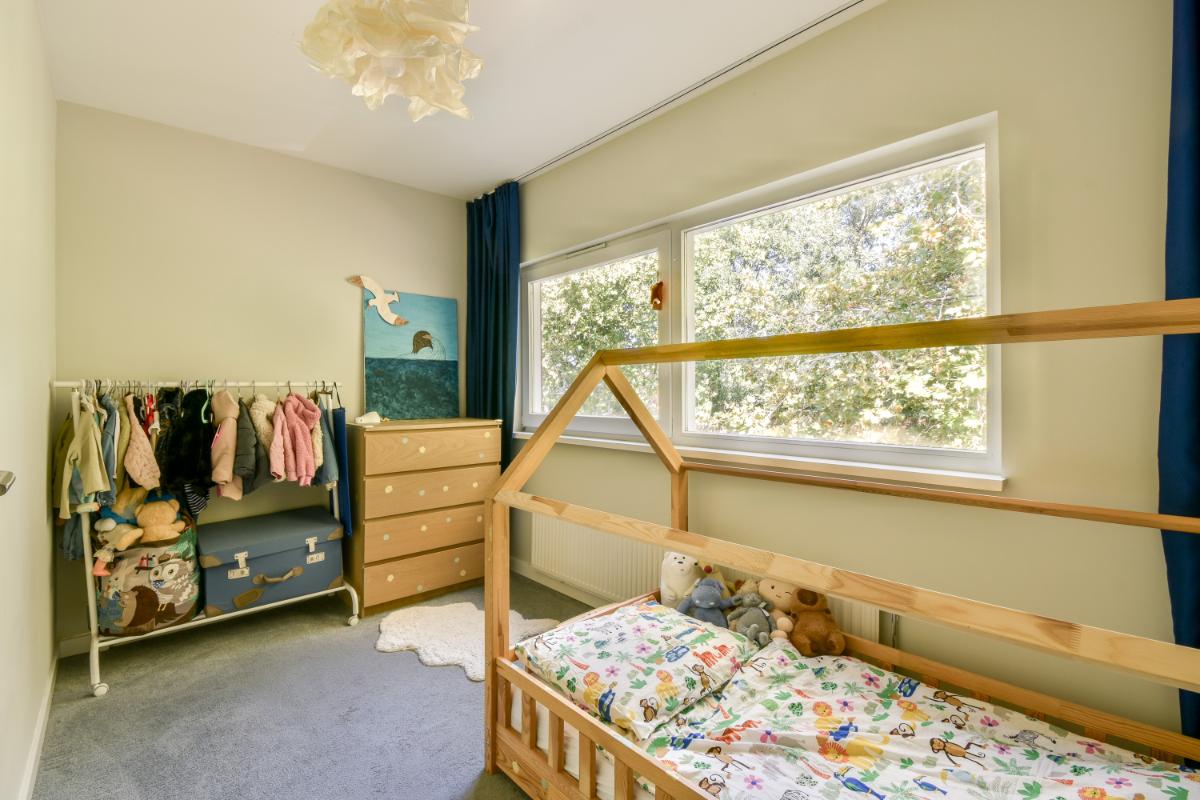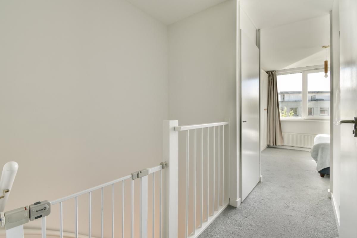 Vanuit de woonkamer geeft een trap toegang tot de tweede verdieping. Deze verdieping is ingedeeld met een overloop met een vaste kast, twee slaapkamers en de badkamer. De hoofdslaapkamer bevindt zich aan de achterzijde en biedt dus ook uitzicht op de tuin en het water. De andere slaapkamer ligt aan de voorzijde van de woning. Tussen deze kamers bevindt zich de moderne badkamer die in 2024 gerenoveerd is en voorzien van een groot ligbad, een separate douche, een wastafelmeubel en een hangend toilet. De overloop heeft een vaste kast met de cv-installatie en aansluitingen voor de wasmachine en droger.