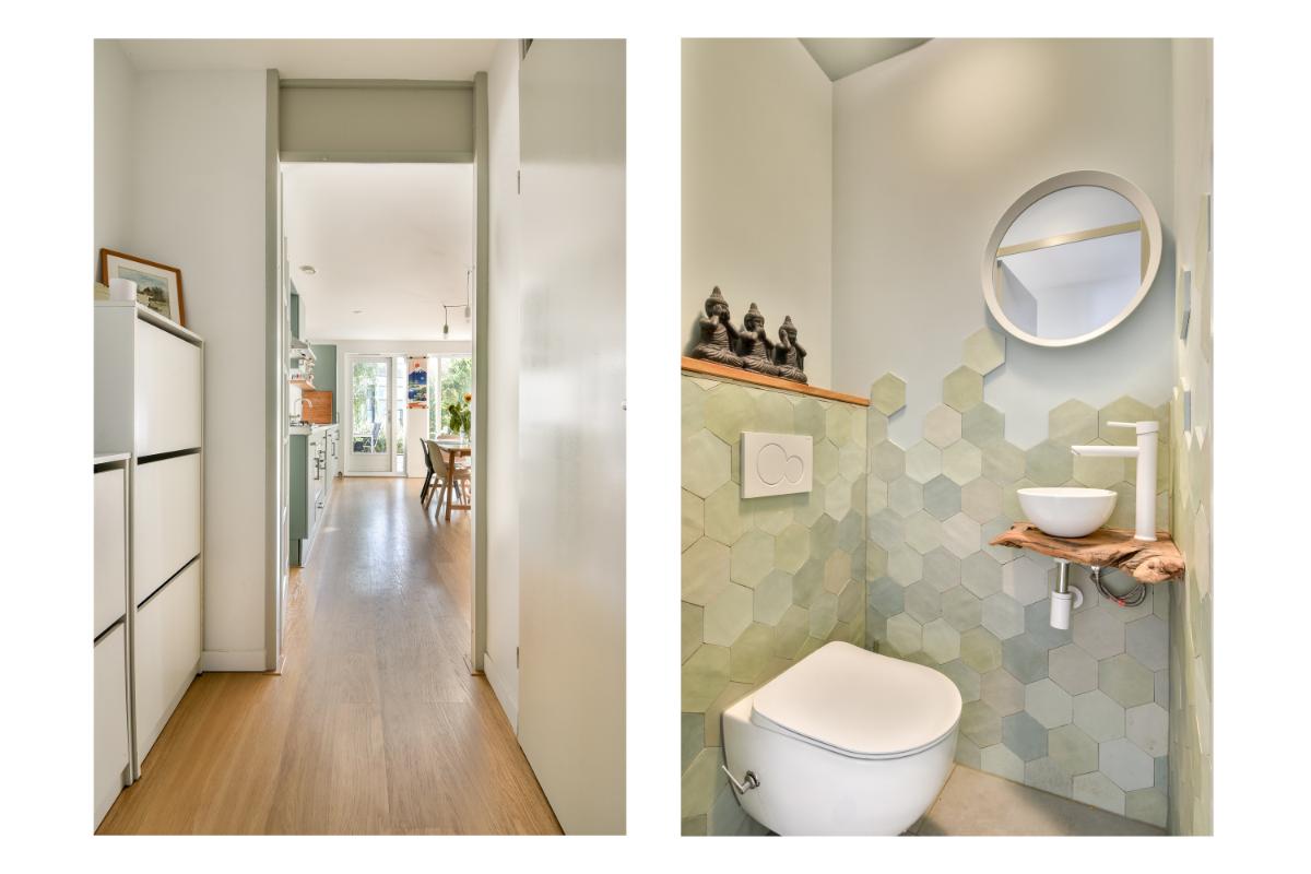 English translation: Waterfront living! This well-maintained and modernly finished family home offers just that, featuring a south-facing backyard with a private terrace/jetty directly on calm, open water. The house also features a spacious and modern kitchen area with space for dining table, three bedrooms, modern bathroom and toilet, an indoor storage and is located in the residential area Oostzanerwerf in Amsterdam Noord. This energy-efficient home has an energy label B. The current leasehold has been bought off until 2042, and for the subsequent period, a perpetual leasehold with a fixed lease has been introduced.