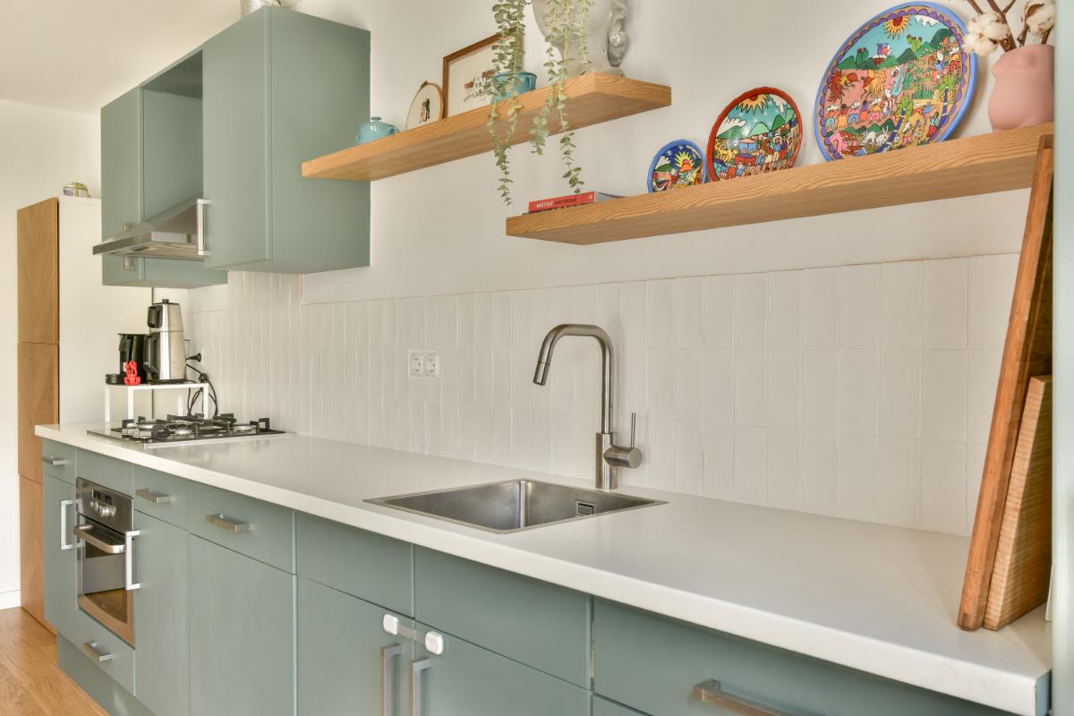 De keuken heeft een modern keukenblok dat enkele jaren geleden een upgrade heeft gehad en voorzien is van een nieuw werkblad, een nieuwe spoelbak en diverse inbouwapparatuur, zoals een kookplaat, een afzuigkap, een oven, een vaatwasser en een koel-/vrieskast. De woonkeuken biedt ruimte voor een grote eettafel en is, net als de rest van de woning, afgewerkt met een mooie laminaatvloer en recent gestucte wanden. In de hoek bevindt zich de trap naar de eerste verdieping.