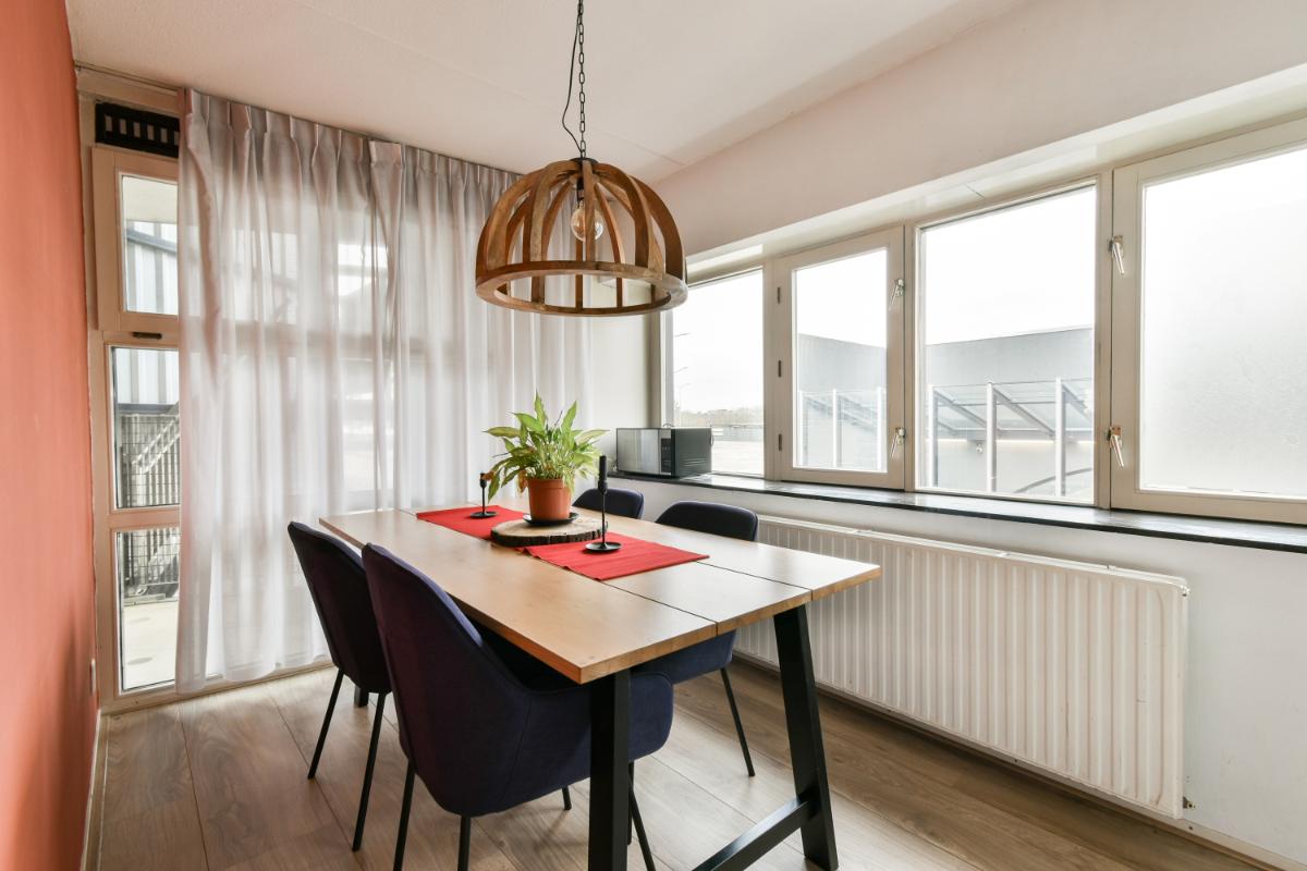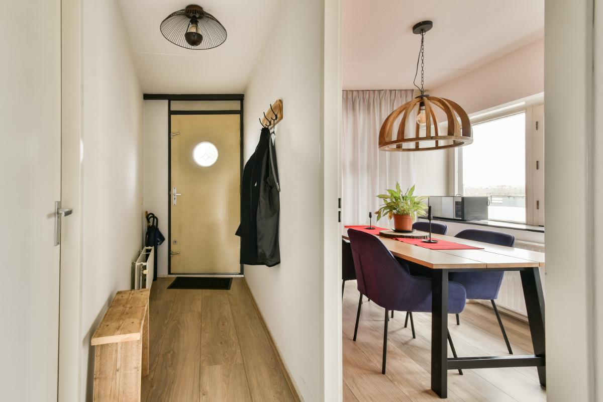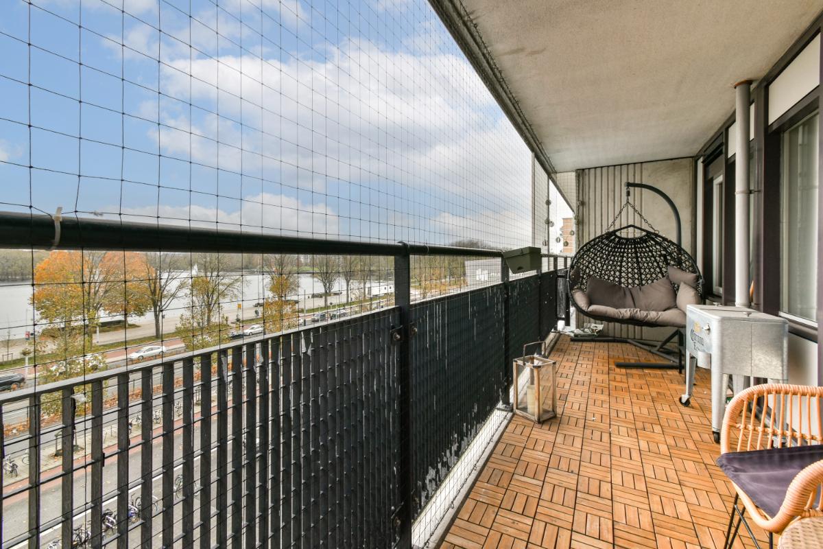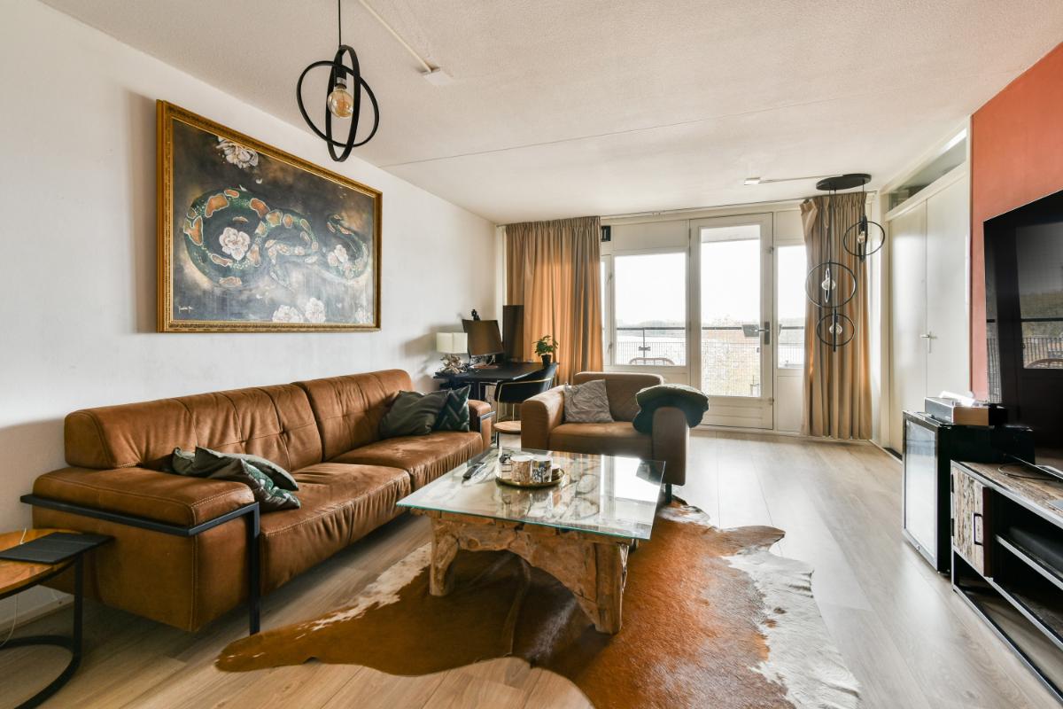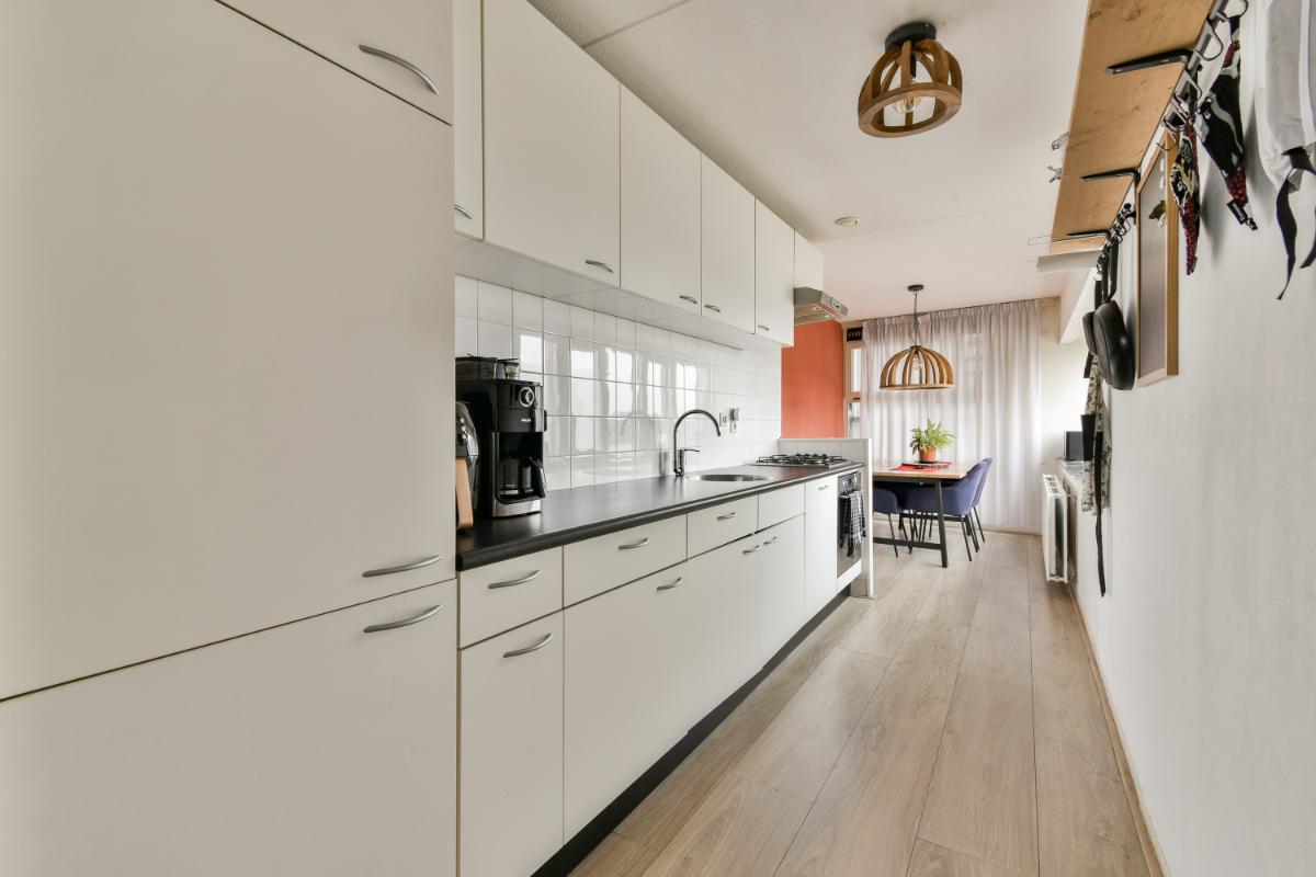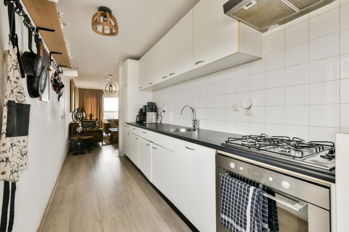 Vierde verdieping: De entree van het hoekappartement geeft toegang tot een hal, met aan de galerij-zijde een ruime slaapkamer alsmede een eetkamer die je ook weer kan aanpassen naar een derde slaapkamer. De moderne badkamer is voorzien van een douche en wastafelmeubel. Er is een separaat toilet in de gang. De woonkamer bevindt zich aan de zonnige voorzijde en biedt toegang tot het ruime terras. Je geniet hier volop van het uitzicht over de Sloterplas. De tweede slaapkamer bevindt zich ook aan de voorzijde en heeft uitzicht over de Sloterplas. De open keuken is bereikbaar vanuit de woonkamer en vanuit de eetkamer. De keuken biedt voldoende ruimte voor het uitoefenen van je kookkunsten.