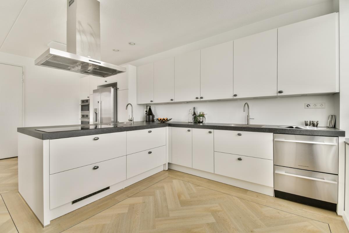 The modern, luxurious open-plan kitchen with a semi-island completes the picture and is a dream for any cooking enthusiast. It offers ample work and storage space, as well as all the necessary high-quality built-in appliances, including a Quooker (hot, cold, and sparkling), an induction cooktop with extractor hood, an American-style refrigerator, two cooling drawers, a dual-function English dishwasher, a built-in combination microwave, and an oven.