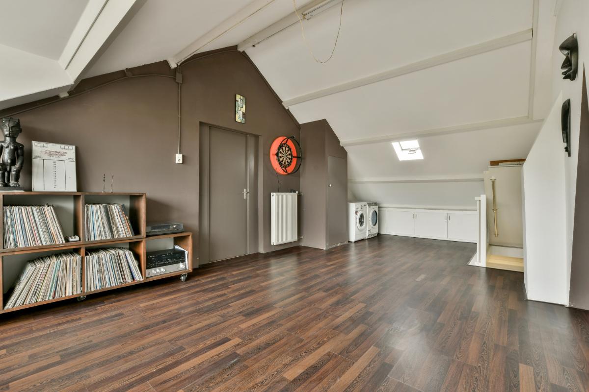 Deze verdieping is ruimtelijk en licht mede door de hoge kap en de grote raampartijen van de dakkapel en een dakraam. Verder zijn hier de aansluitingen voor de wasmachine en droger aanwezig, er is bergruimte achter knieschotten en in een vaste kast is de C.V.-installatie geplaatst. De grote zolderverdieping is afgewerkt met een moderne laminaatvloer en kan nog geheel naar eigen ideeën en inzichten ingedeeld worden.