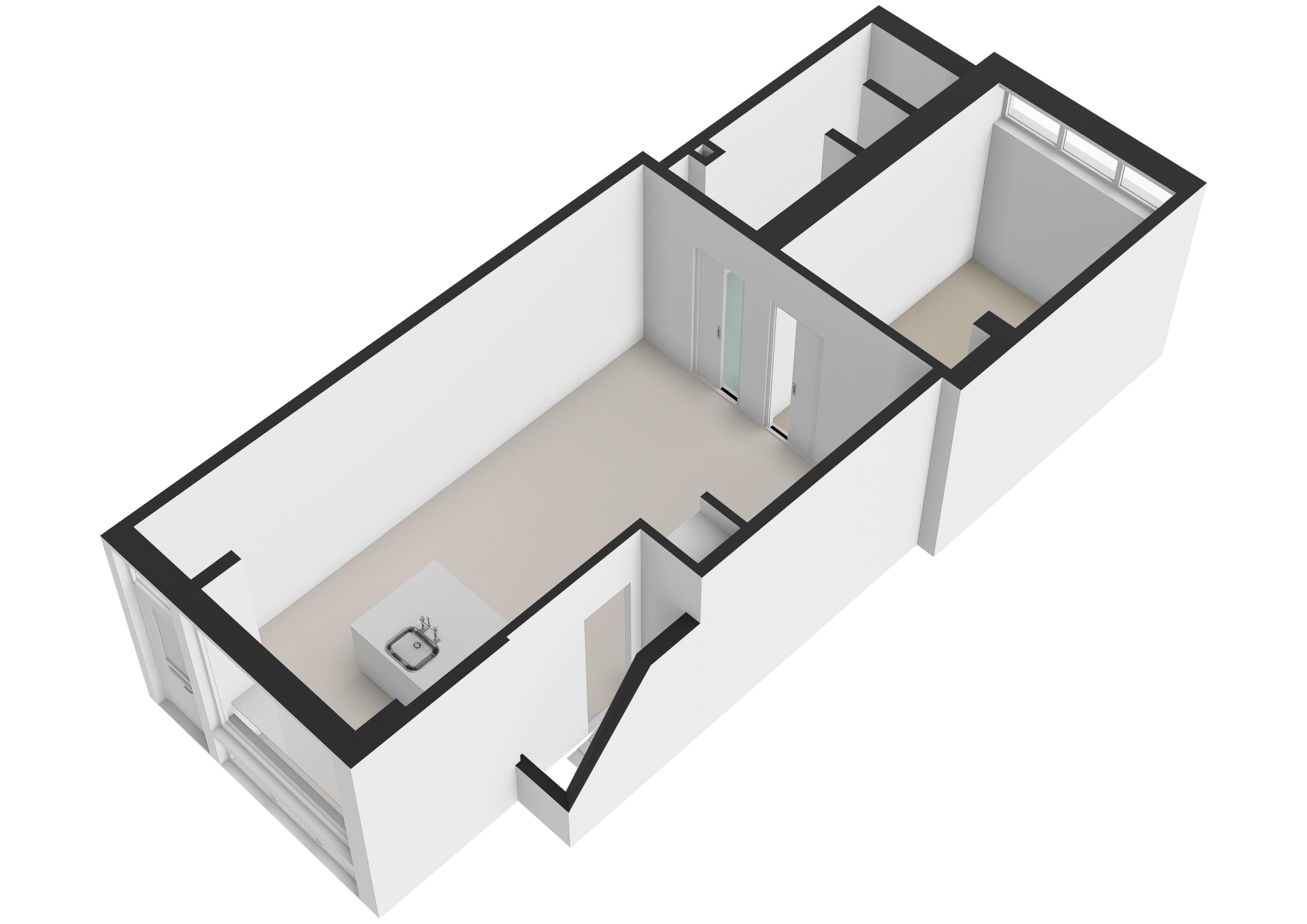 Begane grond: Via de entree op de begane grond betreedt u direct de ruime keuken. De keuken is voorzien van een net keukenblok met een gaskookplaat en beschikt over voldoende opbergruimte. Vanuit de keuken leidt een afgesloten trap naar het souterrain.