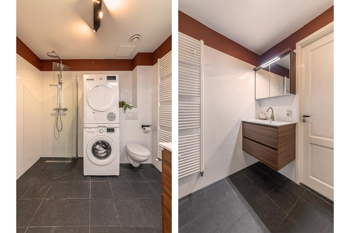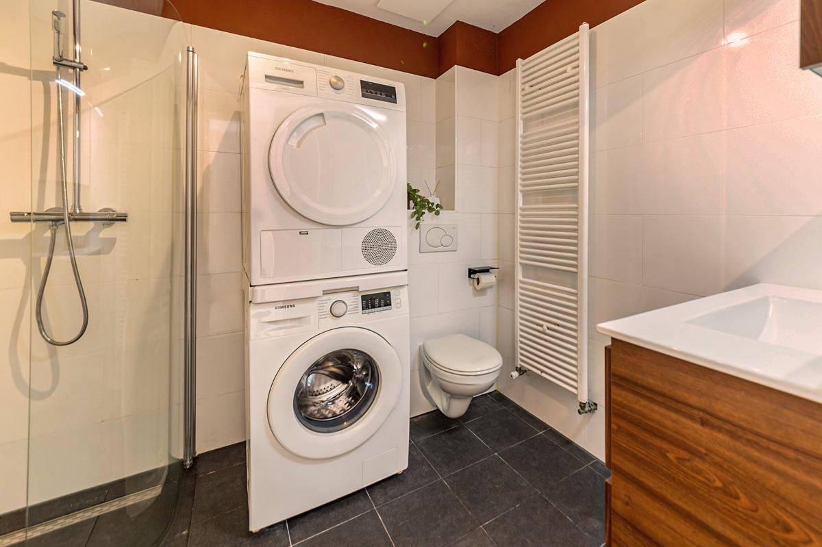 The French doors from both the kitchen and bedroom open onto the sunny south-facing garden, which includes a large storage room with electricity, potentially convertible into a garden house or home office. The roof of the storage room is already prepared for solar panels. Thanks to the high-quality finishes, natural light, and functional layout, this apartment feels immediately comfortable.