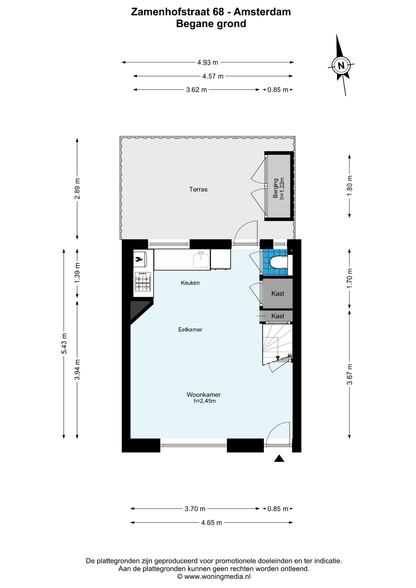 Layout Ground floor Upon entering, you step into the bright living room with open kitchen, which is equipped with various built-in appliances. There is also a separate toilet on this floor. The living room gives access to the sunny south-facing back garden, a wonderful place to enjoy the sun. The garden has a convenient back entrance.