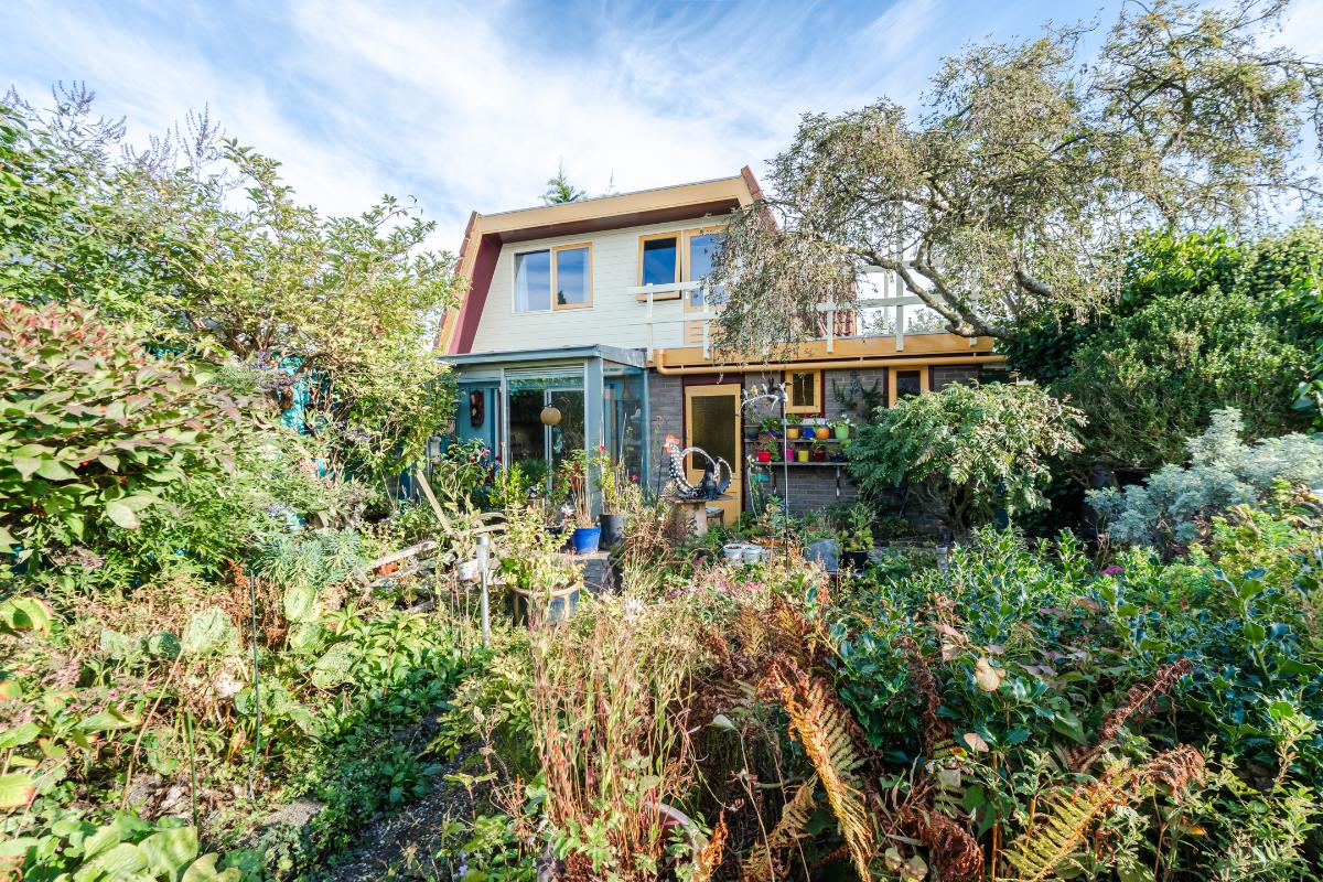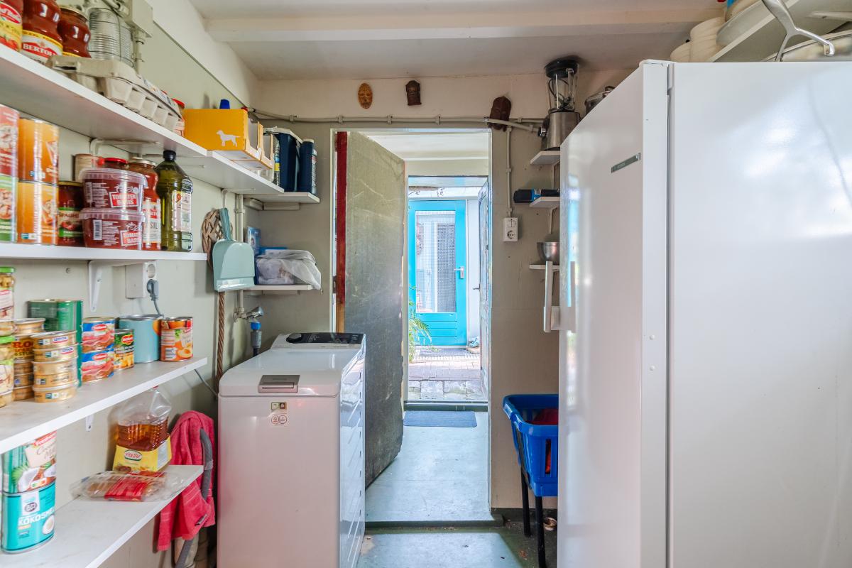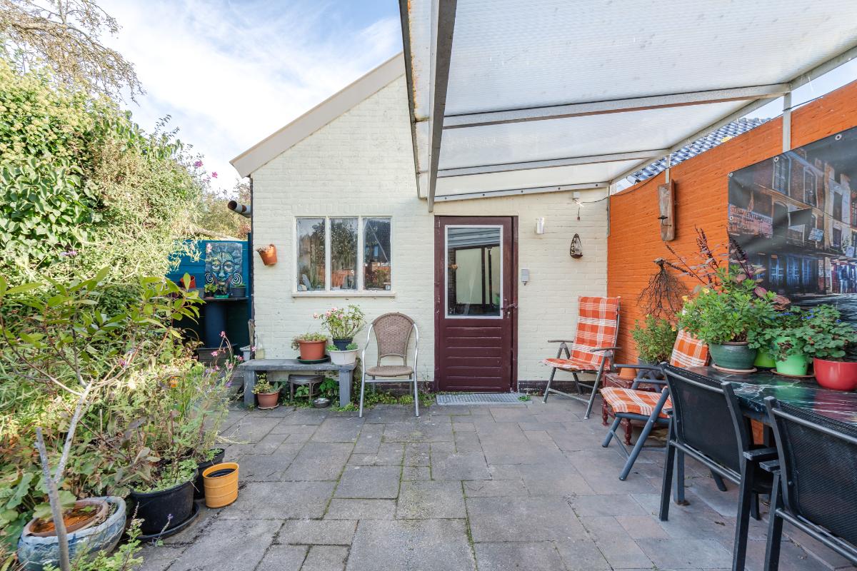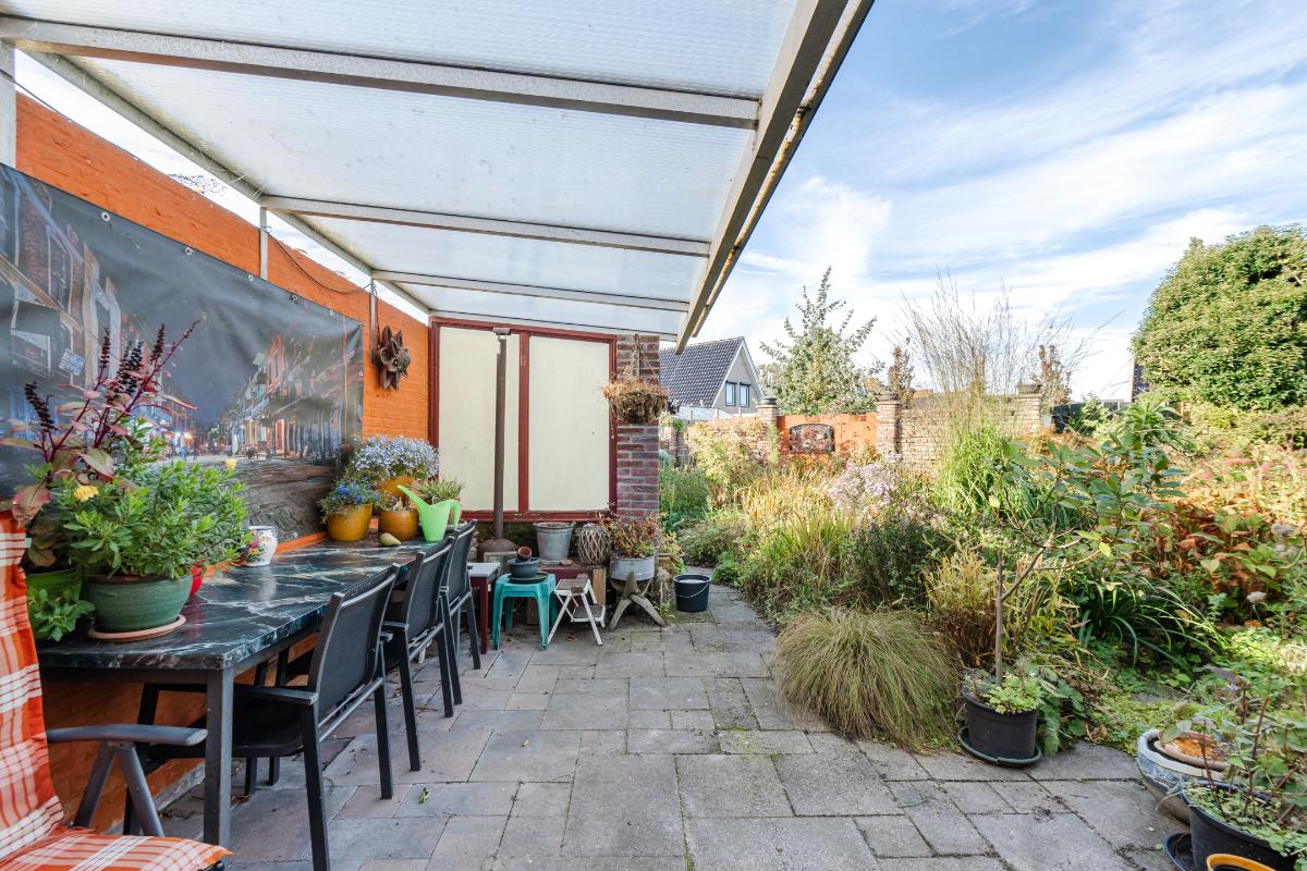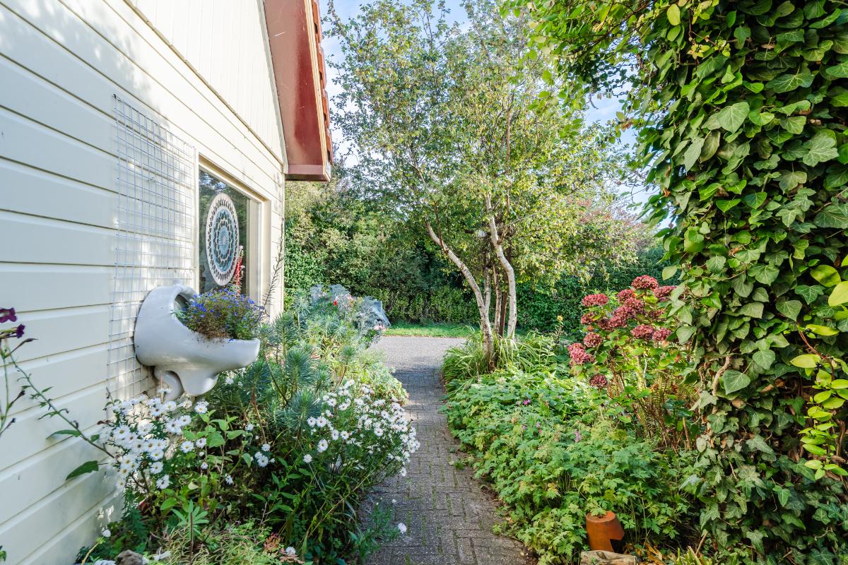 Aan de keuken is een serre gebouwd waar je bij de eerste zonnestralen heerlijk kunt toeven. De serre geeft op haar beurt weer toegang tot de tuin. De tuin in bloemenrijk aangelegd en goed gelegen ten opzichte van de zon. Achter in de tuin staat een stenen berging. Aan de straatzijde staat een vrijstaande stenen garage/berging. Nog meer informatie over deze woning is te vinden op amsteldijk14.nl