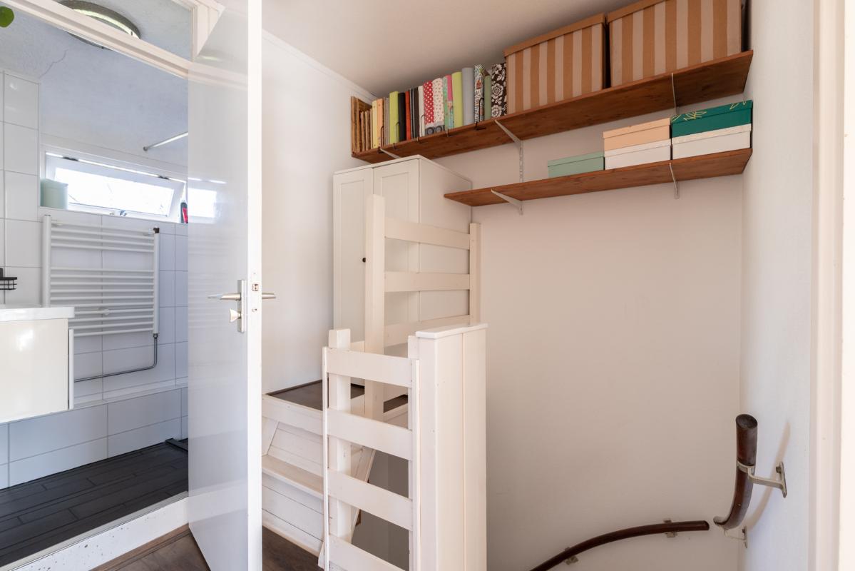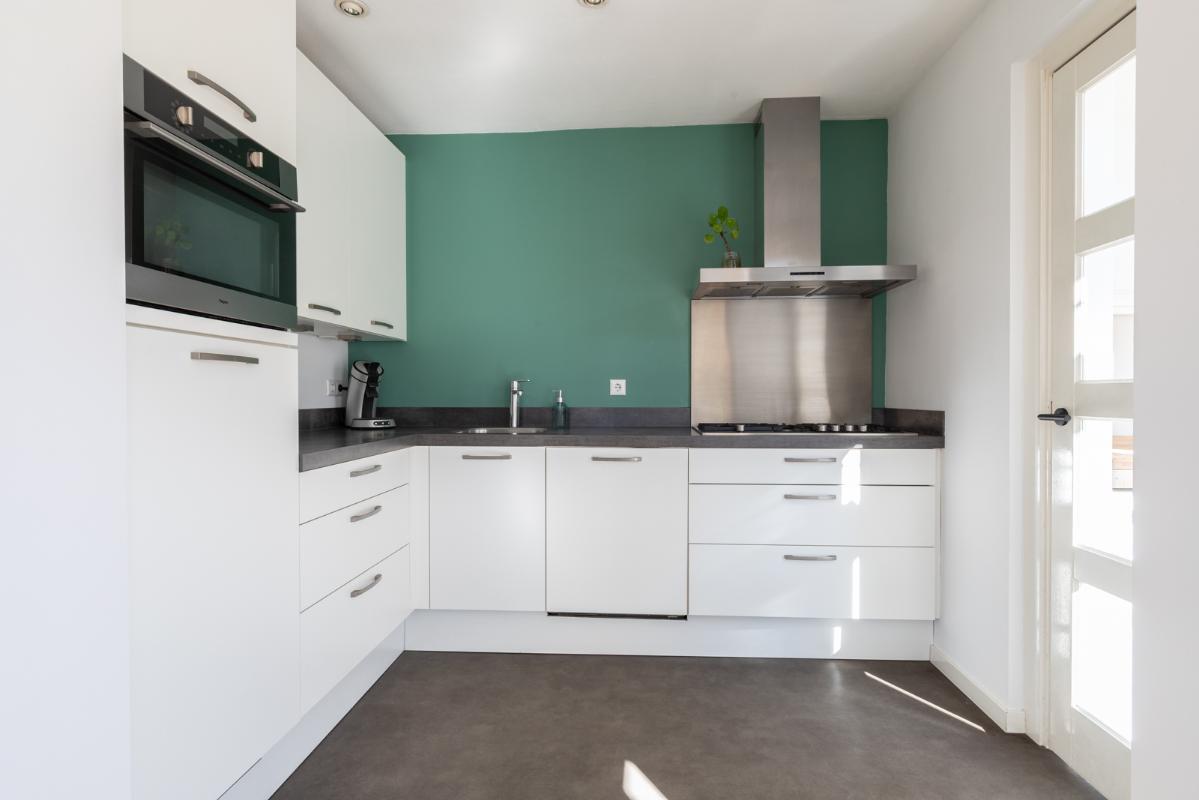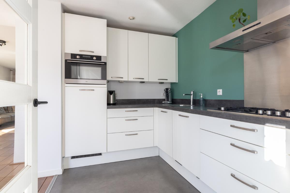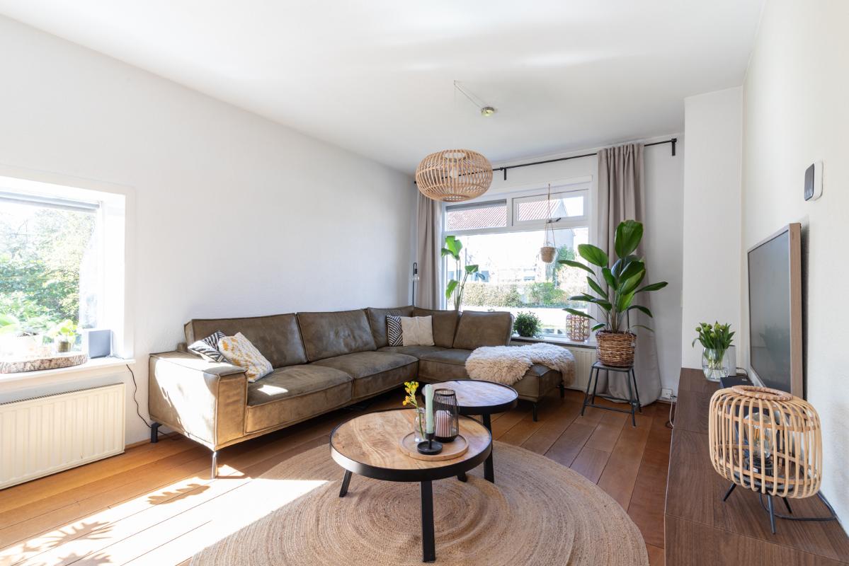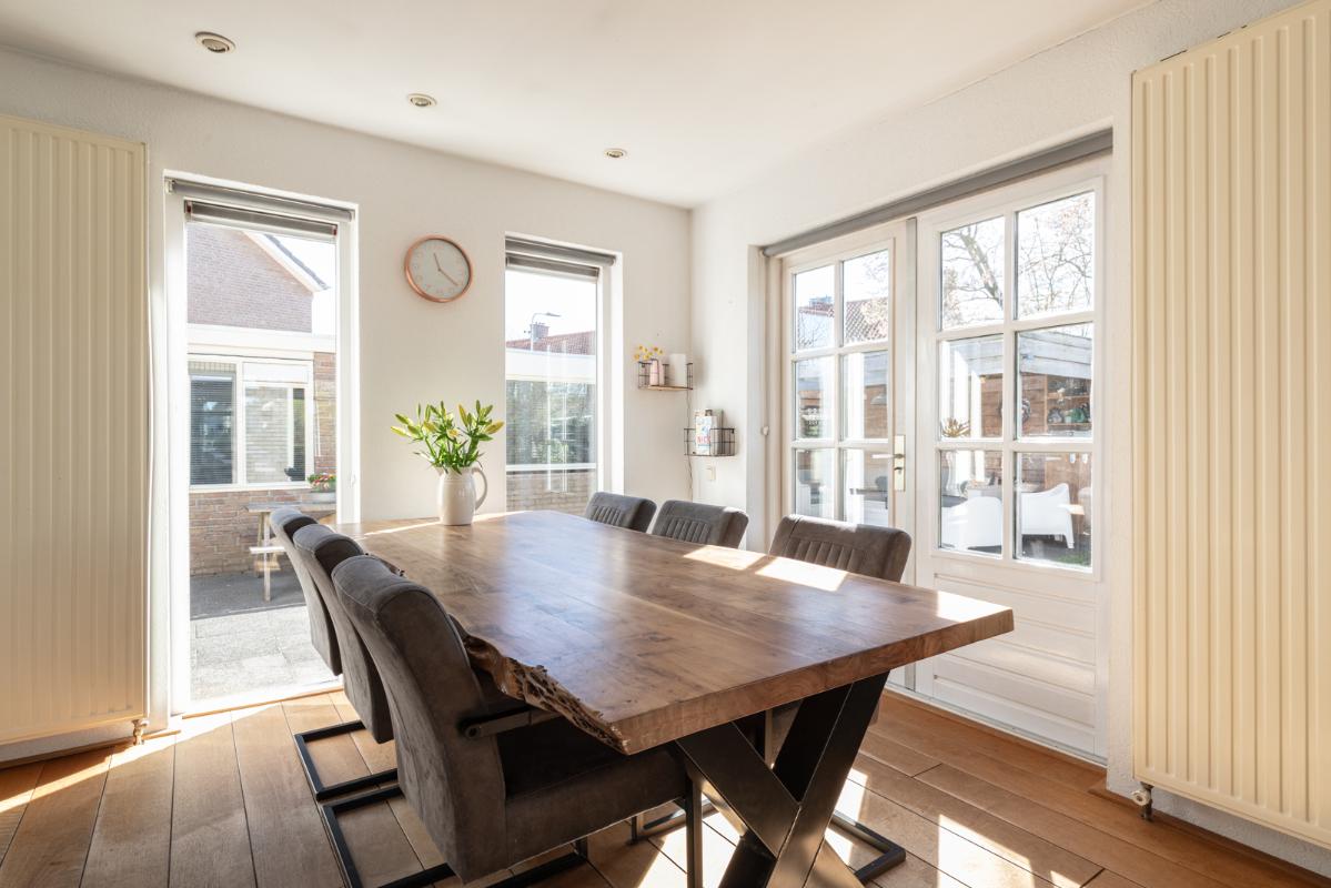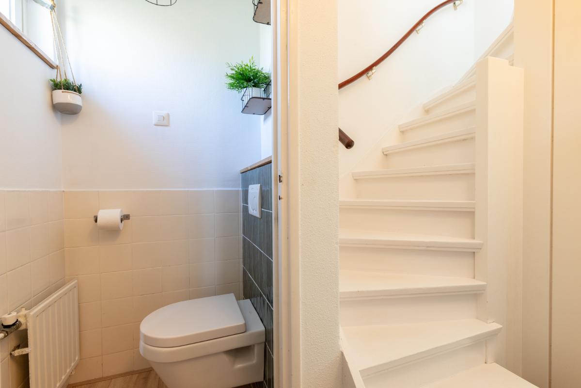 INDELING: Begane grond: hal/entree met toilet (wandcloset); een ruime en lichte woonkamer met halfopen woonkeuken (circa 44m²) met dubbele deuren naar de tuin. De moderne keuken is voorzien van een 5-pits gaskookplaat, afzuigschouw, koelkast, combi-oven, vaatwasser en veel kast- en werkruimte. Vanuit de keuken toegang tot de bijkeuken met wasmachine/droger-opstelling en deur naar de tuin. Eerste verdieping: overloop; 3 keurige slaapkamers (circa 13, 8 en 6m²) en een compacte moderne badkamer met inloopdouche en wastafelmeubel. Tweede verdieping: via vlizotrap bereikbare bergzolder.