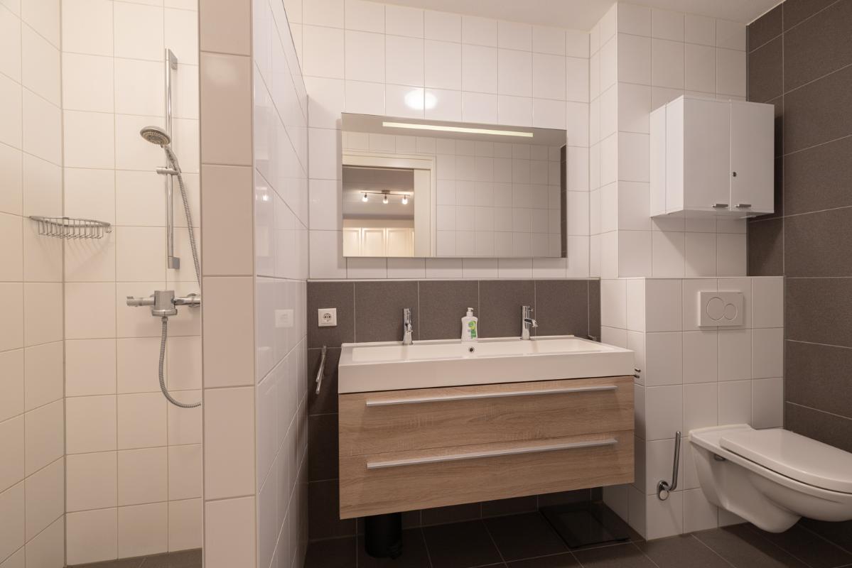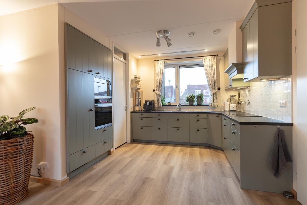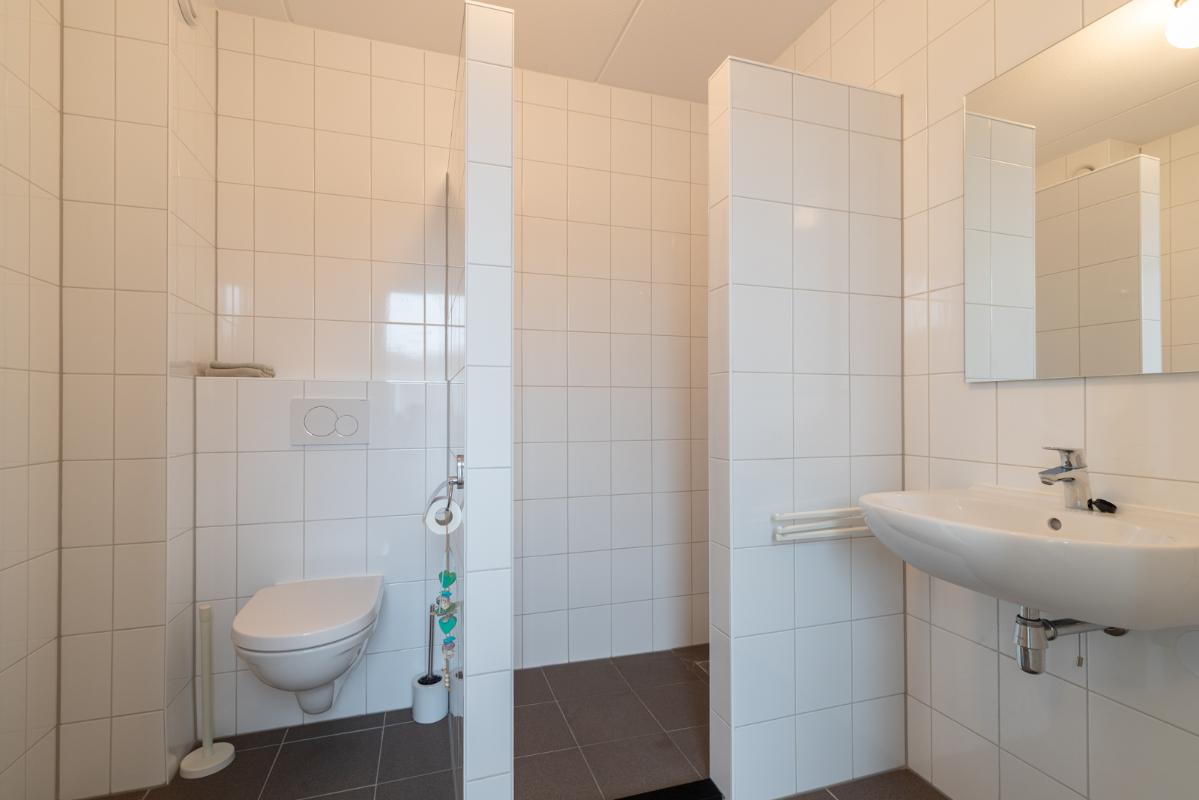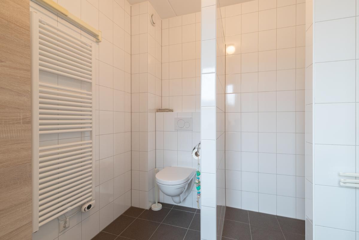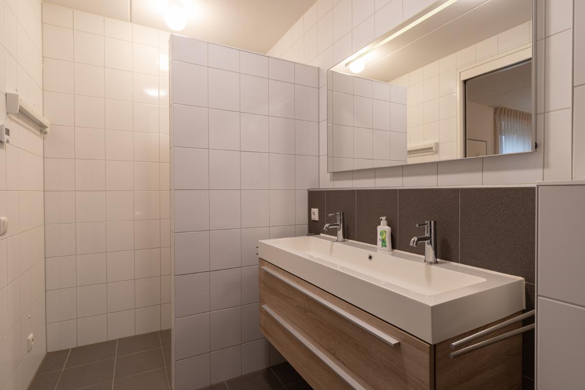 INDELING: Begane grond: hal/entree met toilet (wandcloset met fonteintje) en trapkast (met wasmachine- & drogeraansluiting); een royale woonkamer met open keuken (circa 41m²) veel lichtinval en deur naar de tuin en het terras. De prachtige keuken is voorzien van een inductiekookplaat, afzuigschouw, vaatwasser, oven, magnetron, koelkast en veel kast- en werkruimte. Naast de keuken bevindt zich een ruime berging/bijkeuken met veel extra bergruimte en deur naar de de oprit. Vanuit de woonkamer toegang tot de royale slaapkamer (circa 16m²) en aangrenzende badkamer. Deze is voorzien van een ruime inloopdouche, wastafelmeubel en wandcloset. De gehele begane grond is voorzien van vloerverwarming en elke ruimte is afzonderlijk qua temperatuur in te stellen. Eerste verdieping: overloop; een tweede badkamer (voorzien van inloopdouche, wastafel en wandcloset) en twee slaapkamers (circa 14 en 8m²), waarvan de grootste is voorzien van een eigen keukenblok (met koelkast en kookgelegenheid). Heel handig voor logés die even op zichzelf willen zijn.