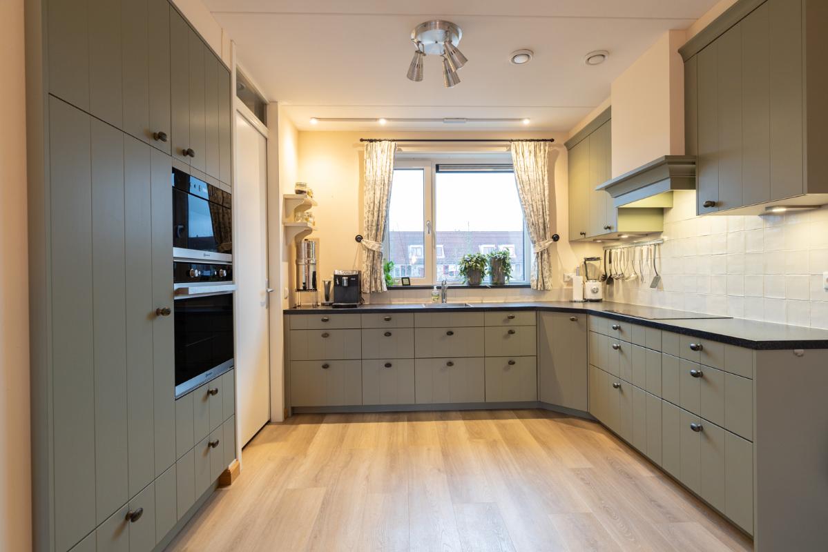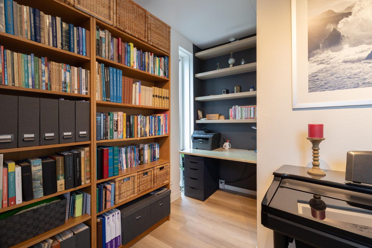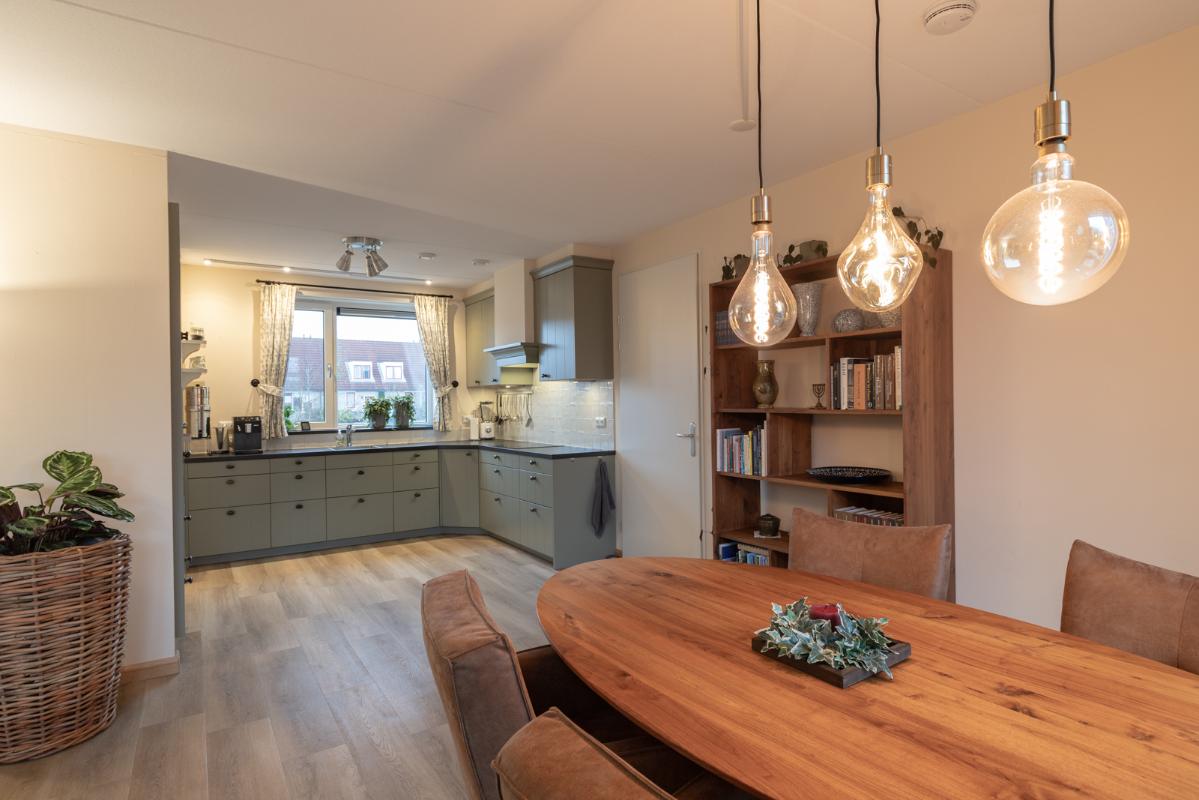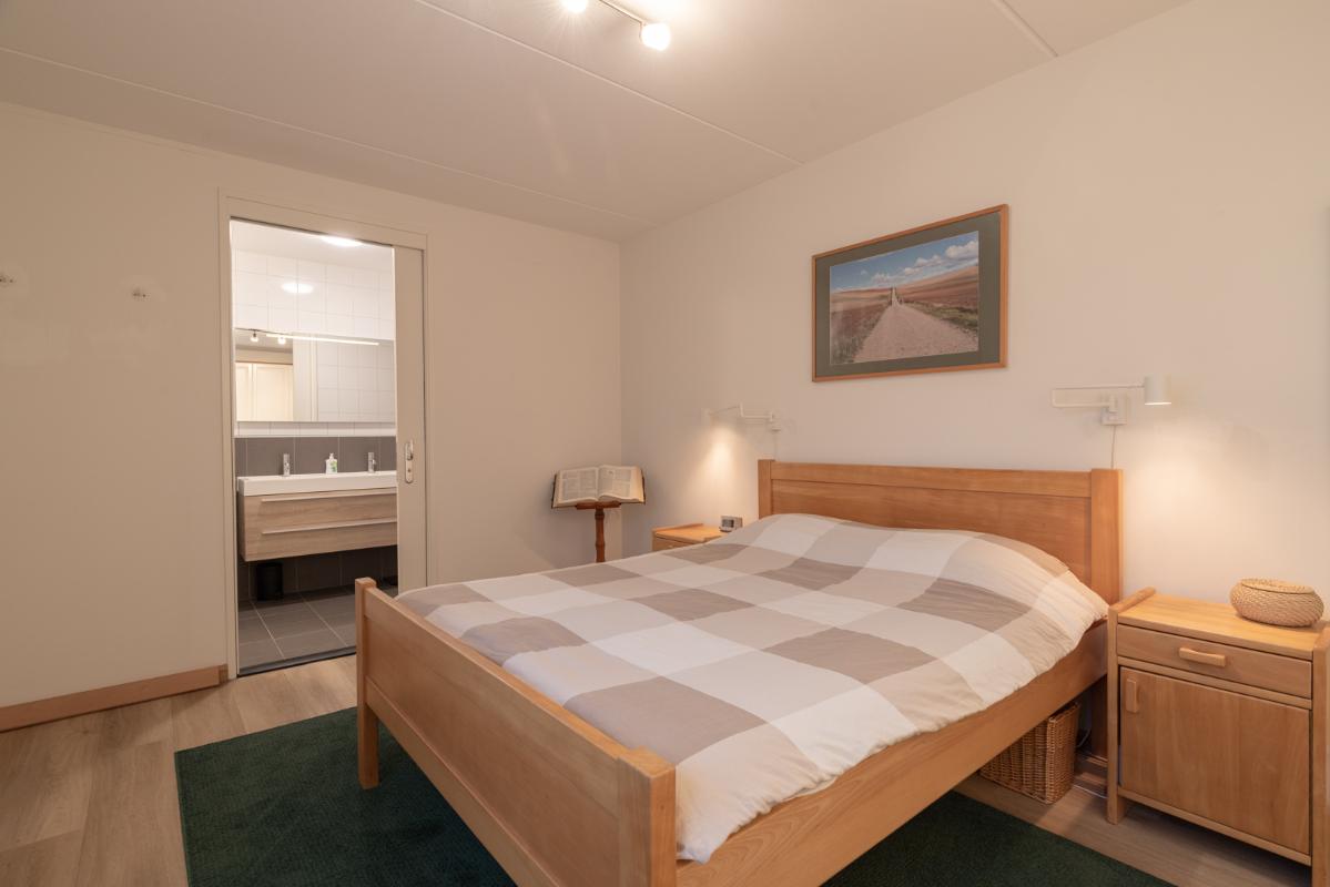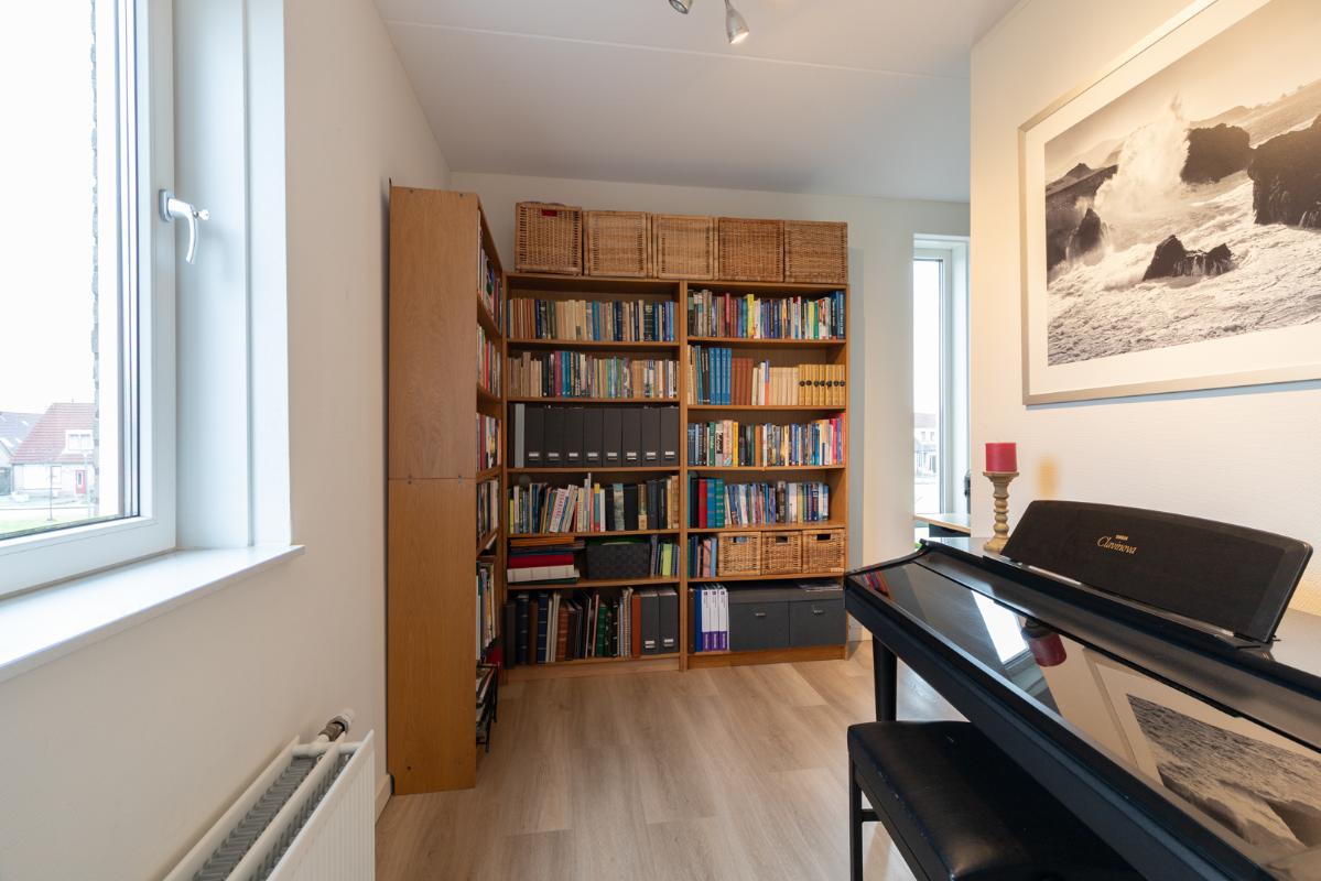INDELING: Begane grond: hal/entree met toilet (wandcloset met fonteintje) en trapkast (met wasmachine- & drogeraansluiting); een royale woonkamer met open keuken (circa 41m²) veel lichtinval en deur naar de tuin en het terras. De prachtige keuken is voorzien van een inductiekookplaat, afzuigschouw, vaatwasser, oven, magnetron, koelkast en veel kast- en werkruimte. Naast de keuken bevindt zich een ruime berging/bijkeuken met veel extra bergruimte en deur naar de de oprit. Vanuit de woonkamer toegang tot de royale slaapkamer (circa 16m²) en aangrenzende badkamer. Deze is voorzien van een ruime inloopdouche, wastafelmeubel en wandcloset. De gehele begane grond is voorzien van vloerverwarming en elke ruimte is afzonderlijk qua temperatuur in te stellen. Eerste verdieping: overloop; een tweede badkamer (voorzien van inloopdouche, wastafel en wandcloset) en twee slaapkamers (circa 14 en 8m²), waarvan de grootste is voorzien van een eigen keukenblok (met koelkast en kookgelegenheid). Heel handig voor logés die even op zichzelf willen zijn.