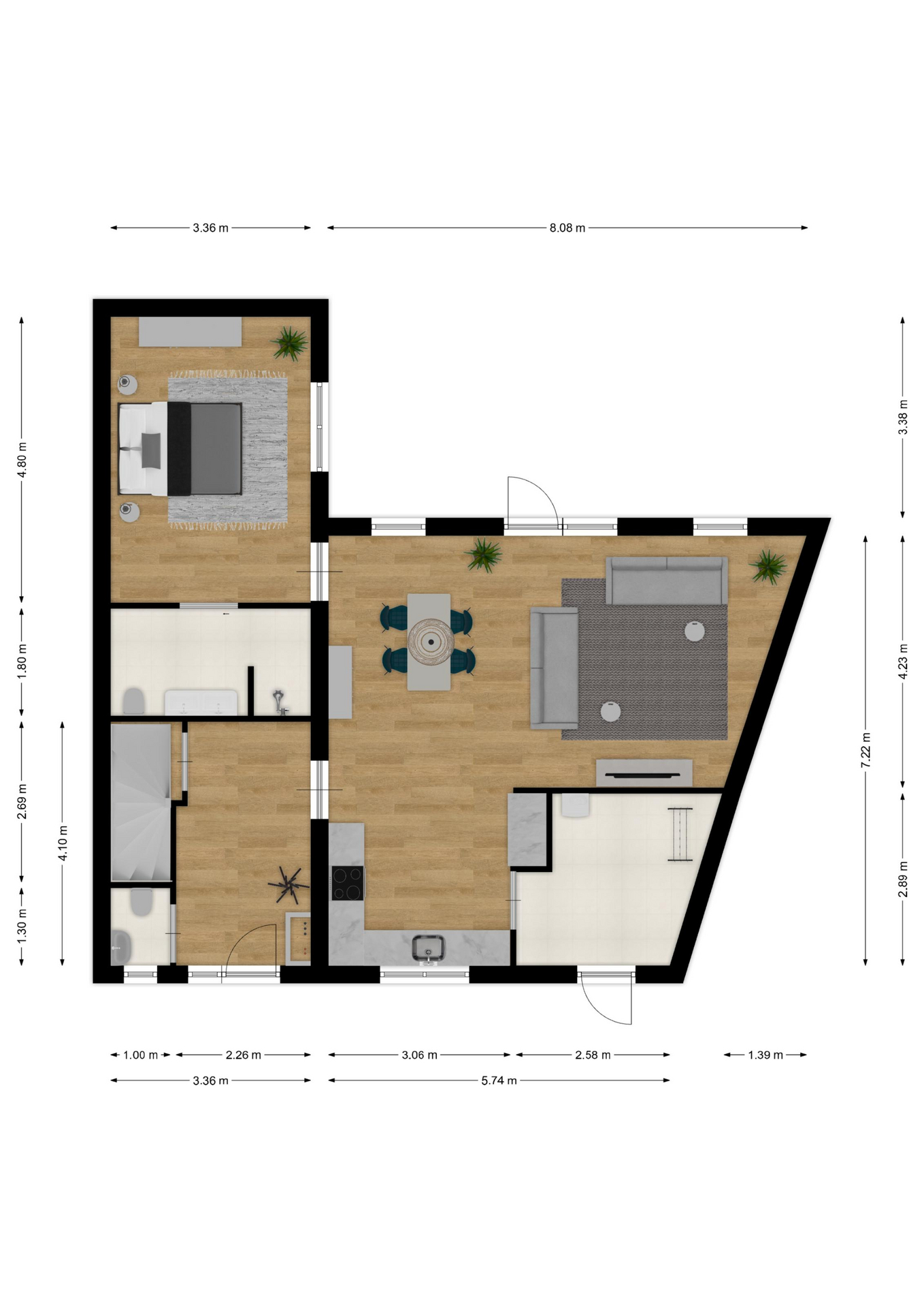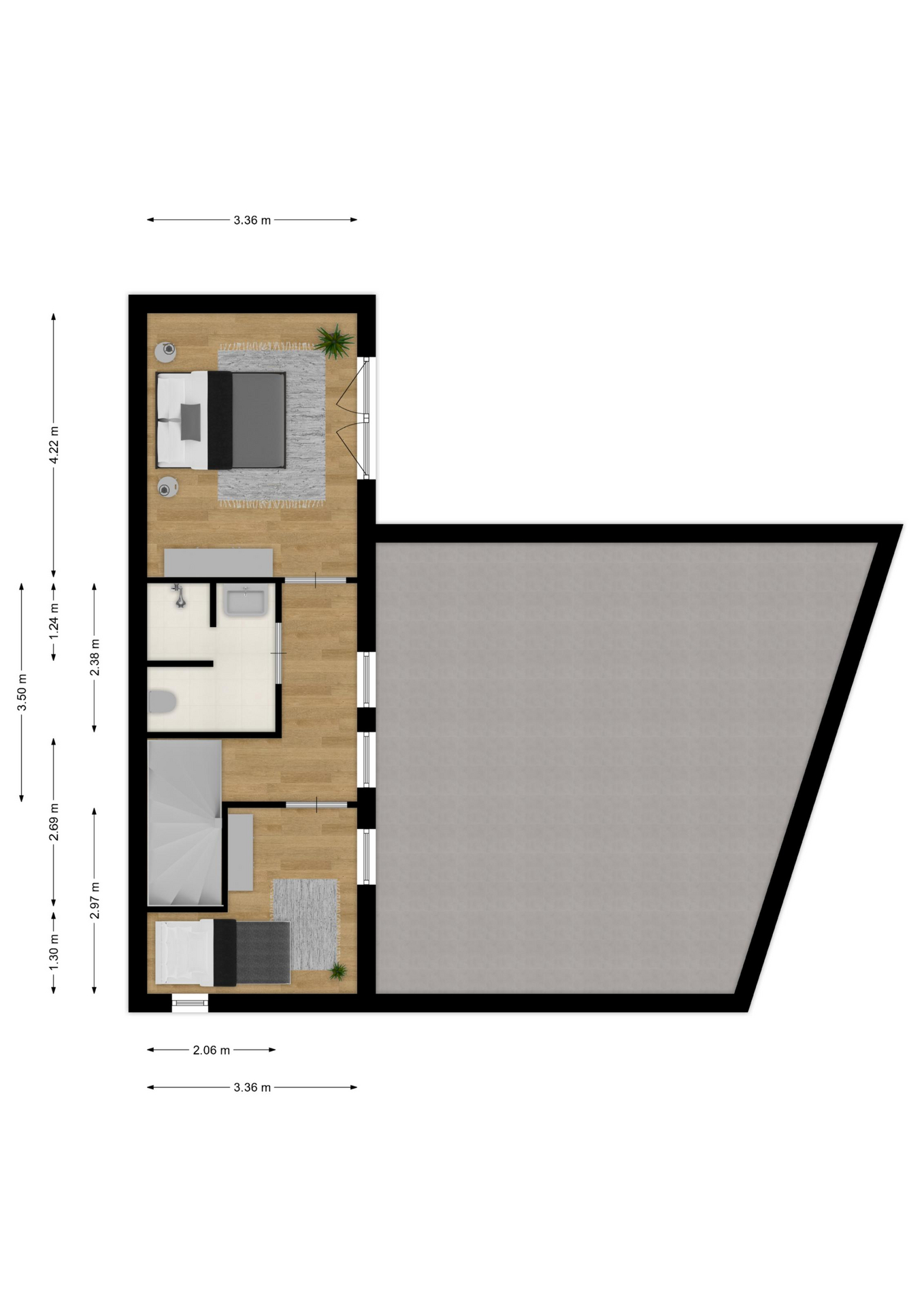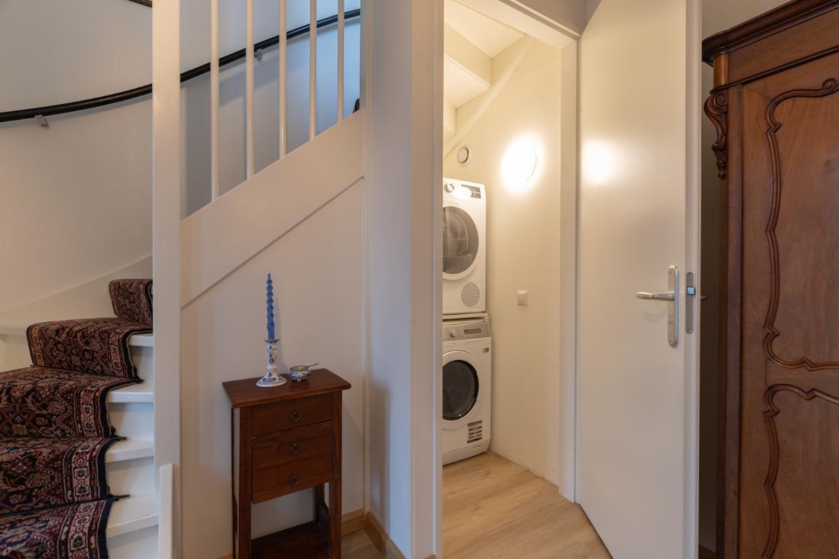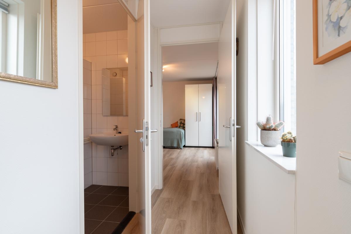 INDELING: Begane grond: hal/entree met toilet (wandcloset met fonteintje) en trapkast (met wasmachine- & drogeraansluiting); een royale woonkamer met open keuken (circa 41m²) veel lichtinval en deur naar de tuin en het terras. De prachtige keuken is voorzien van een inductiekookplaat, afzuigschouw, vaatwasser, oven, magnetron, koelkast en veel kast- en werkruimte. Naast de keuken bevindt zich een ruime berging/bijkeuken met veel extra bergruimte en deur naar de de oprit. Vanuit de woonkamer toegang tot de royale slaapkamer (circa 16m²) en aangrenzende badkamer. Deze is voorzien van een ruime inloopdouche, wastafelmeubel en wandcloset. De gehele begane grond is voorzien van vloerverwarming en elke ruimte is afzonderlijk qua temperatuur in te stellen. Eerste verdieping: overloop; een tweede badkamer (voorzien van inloopdouche, wastafel en wandcloset) en twee slaapkamers (circa 14 en 8m²), waarvan de grootste is voorzien van een eigen keukenblok (met koelkast en kookgelegenheid). Heel handig voor logés die even op zichzelf willen zijn.