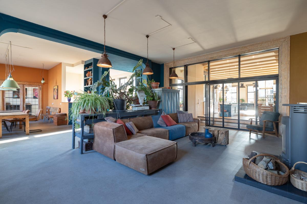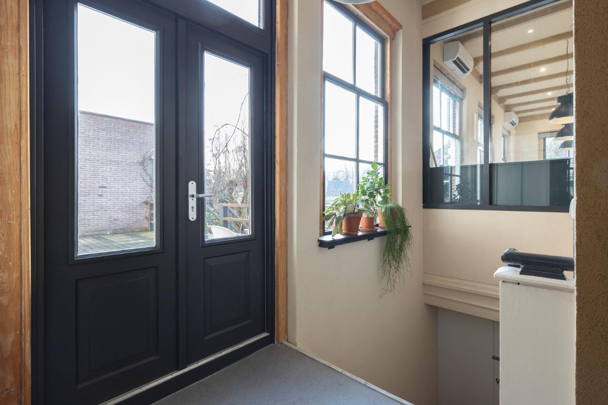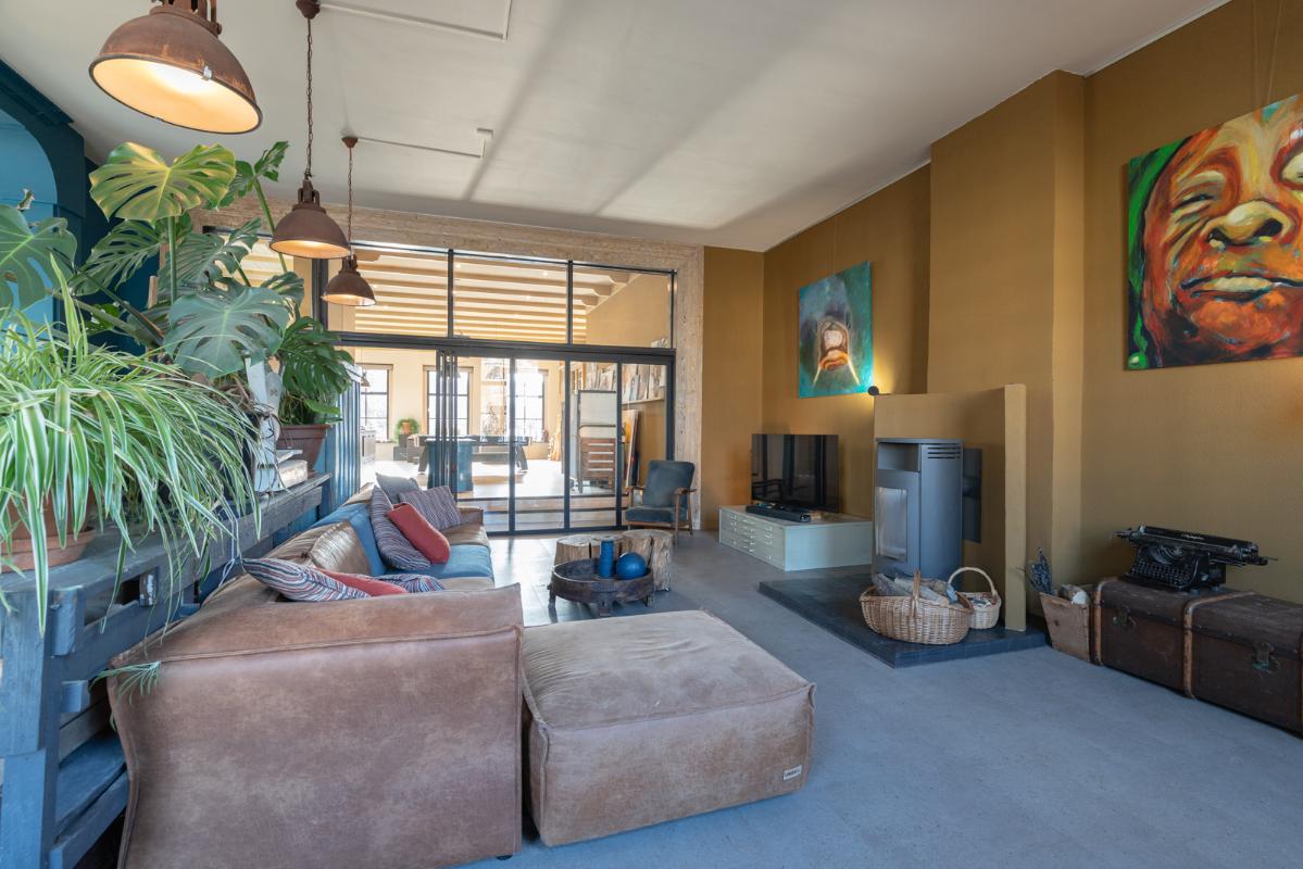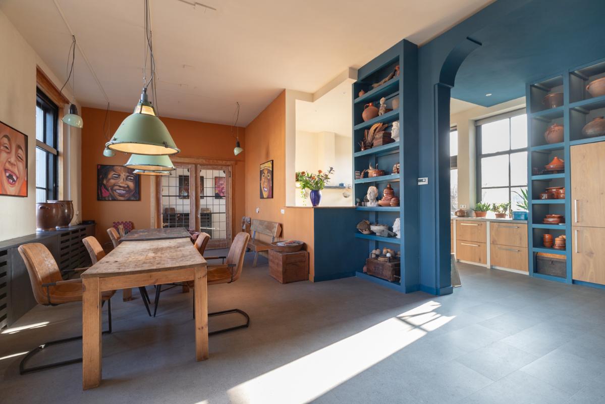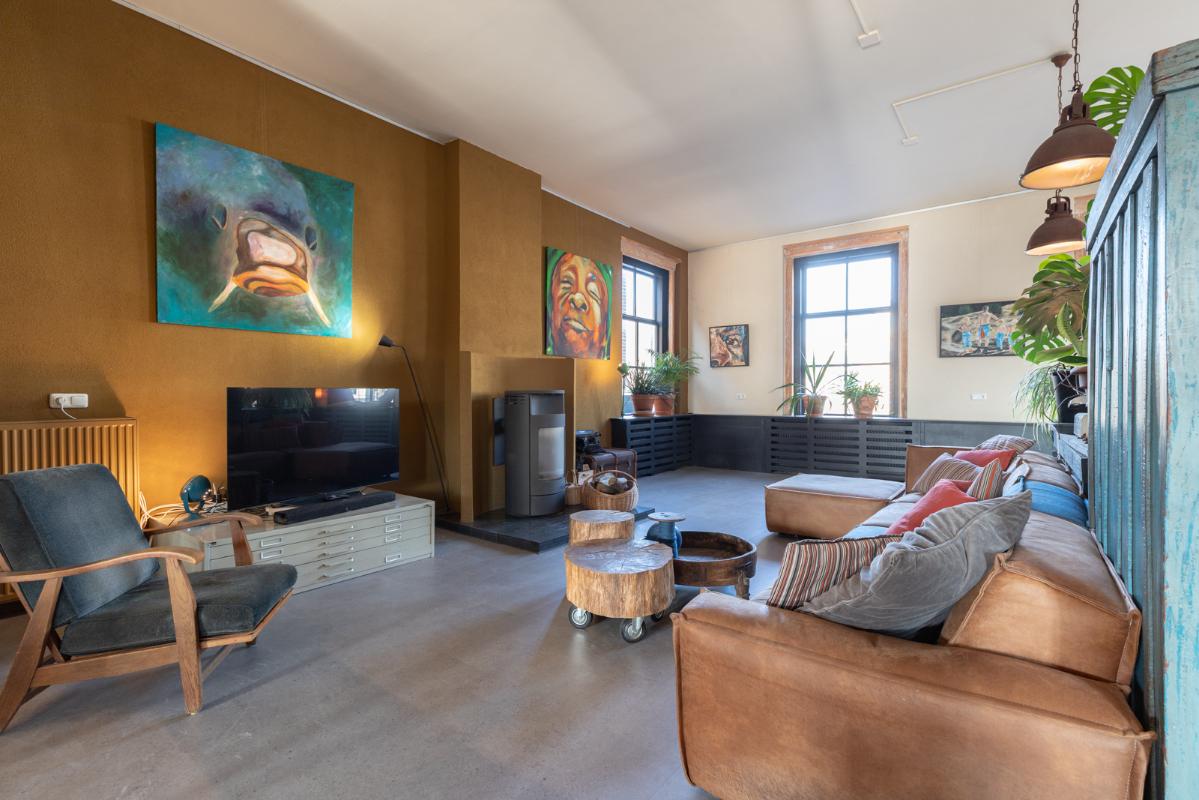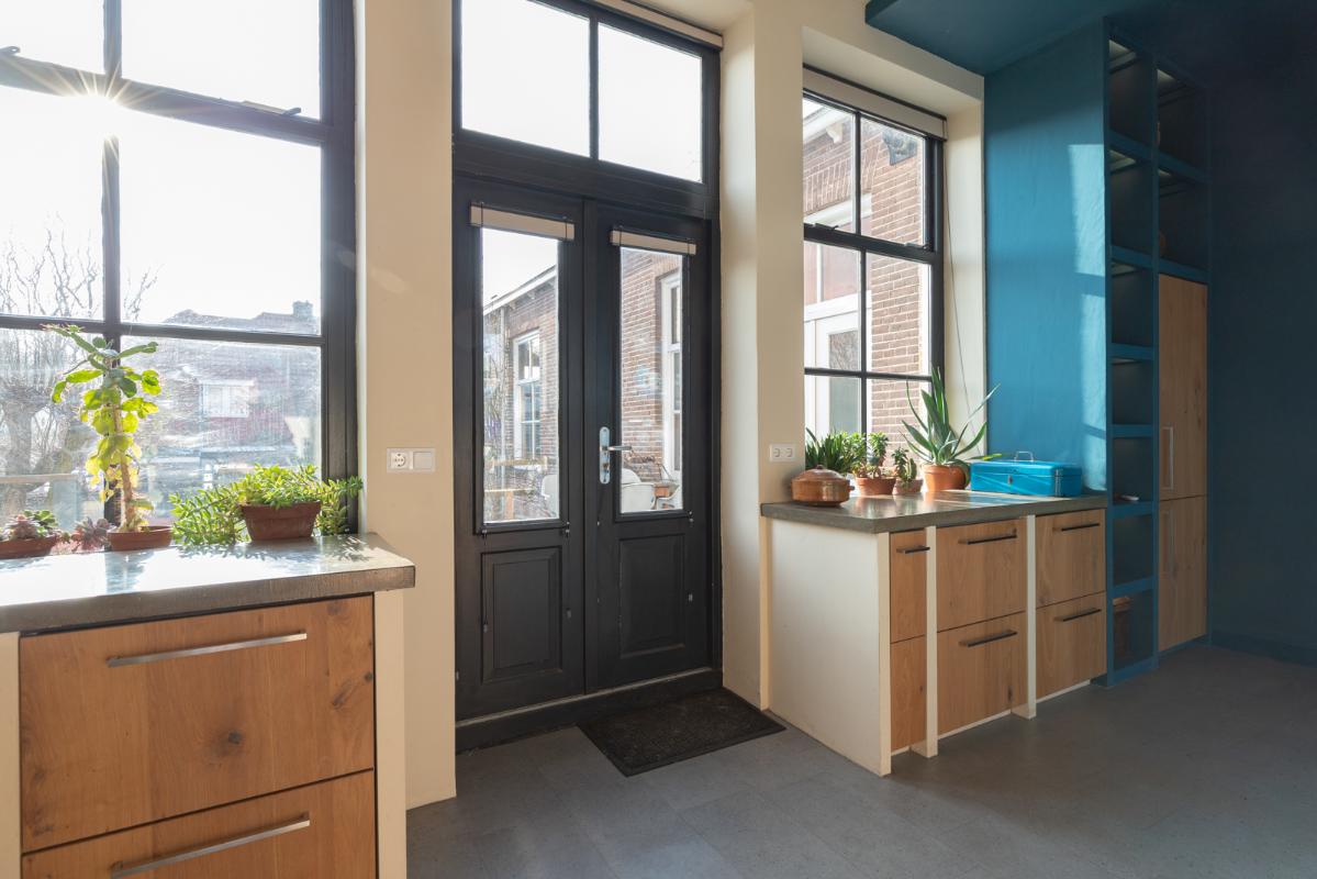 INDELING: BEGANE GROND: entree/tochtportaal met prachtige eikenhouten glas-in-lood deuren. Vanuit de imposante hal toegang tot het toilet, de woonkamer en de achtergelegen veranda. De riante living met halfopen keuken van ruim 100m² is een heerlijke ruimte vol warmte & sfeer en met een fraai uitzicht op de Vaart en de Witterbrug. De halfopen handgemaakte robuuste keuken (2023) is voorzien van een koel-vriescombinatie, inductiefornuis met oven, afzuigschouw, vaatwasser en veel kast- en werkruimte. Vanuit de keuken direct toegang de veranda (ca. 40m²) op het zuiden middels de dubbele tuindeuren. Het atelier (ca. 84m²) bevindt zich aan de tuinzijde en is middels een prachtige glaswand af te sluiten van de living. In 2024 is deze voormalige eetzaal van het Tehuis geheel verbouwd tot een prachtige multifunctionele ruimte. Dankzij het hoge plafond en grote ramen een heerlijke ruimte met prachtige lichtinval en een fraai uitzicht op de tuin. Het geheel wordt verwarmd (en gekoeld) middels twee airco-units en er is een extra keukenblok met spoelgelegenheid en koelkast. Vanaf de begane grond is er rechtstreeks toegang tot het gastenverblijf in het souterrain.