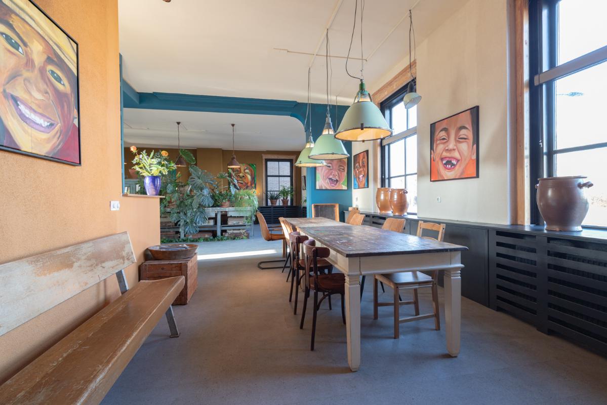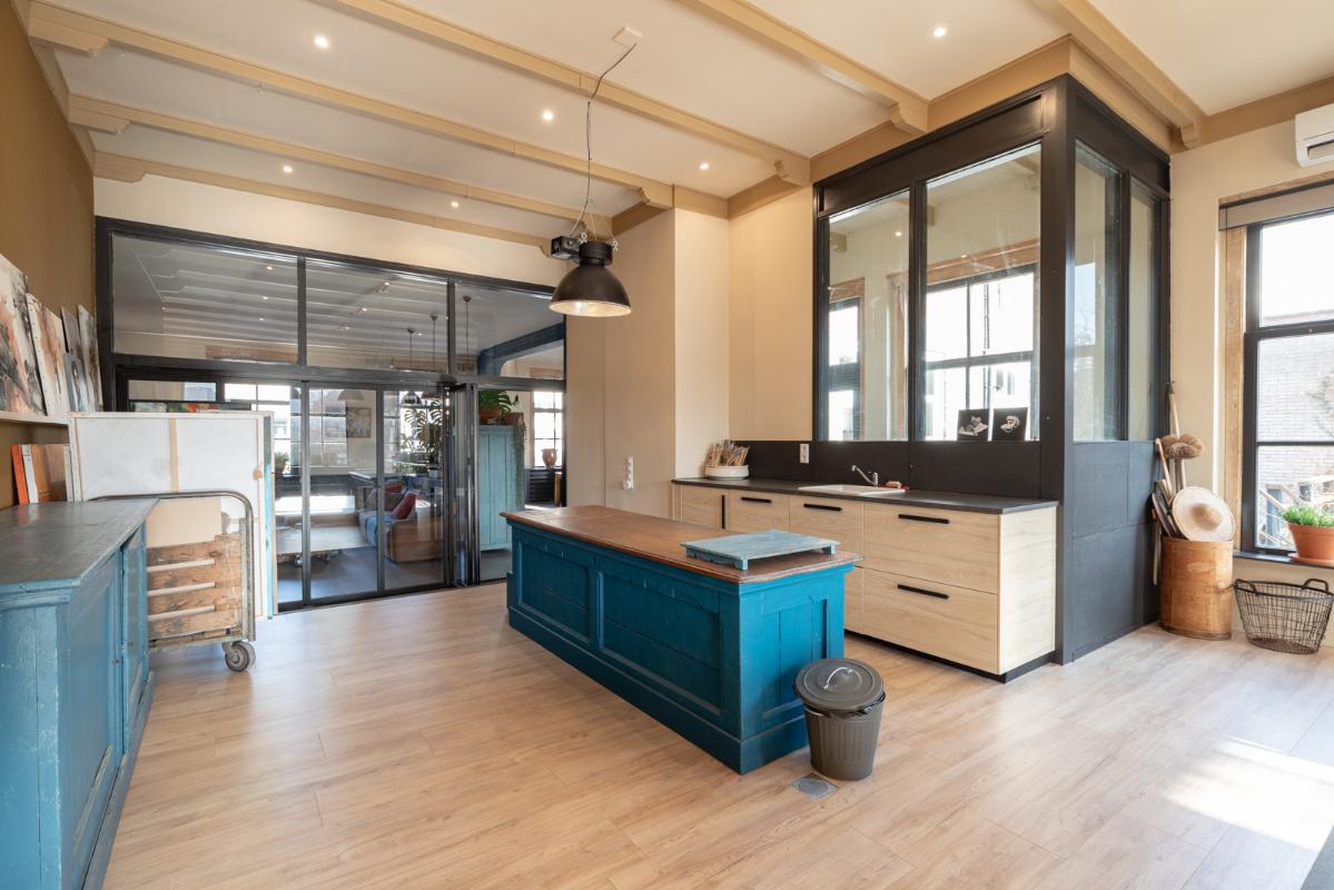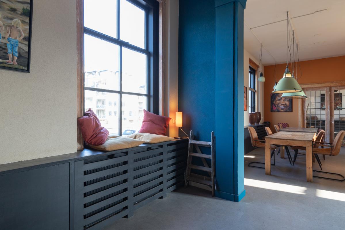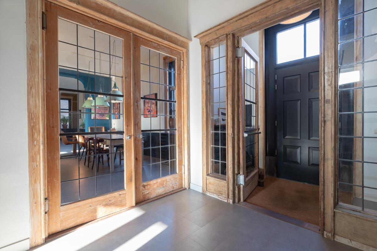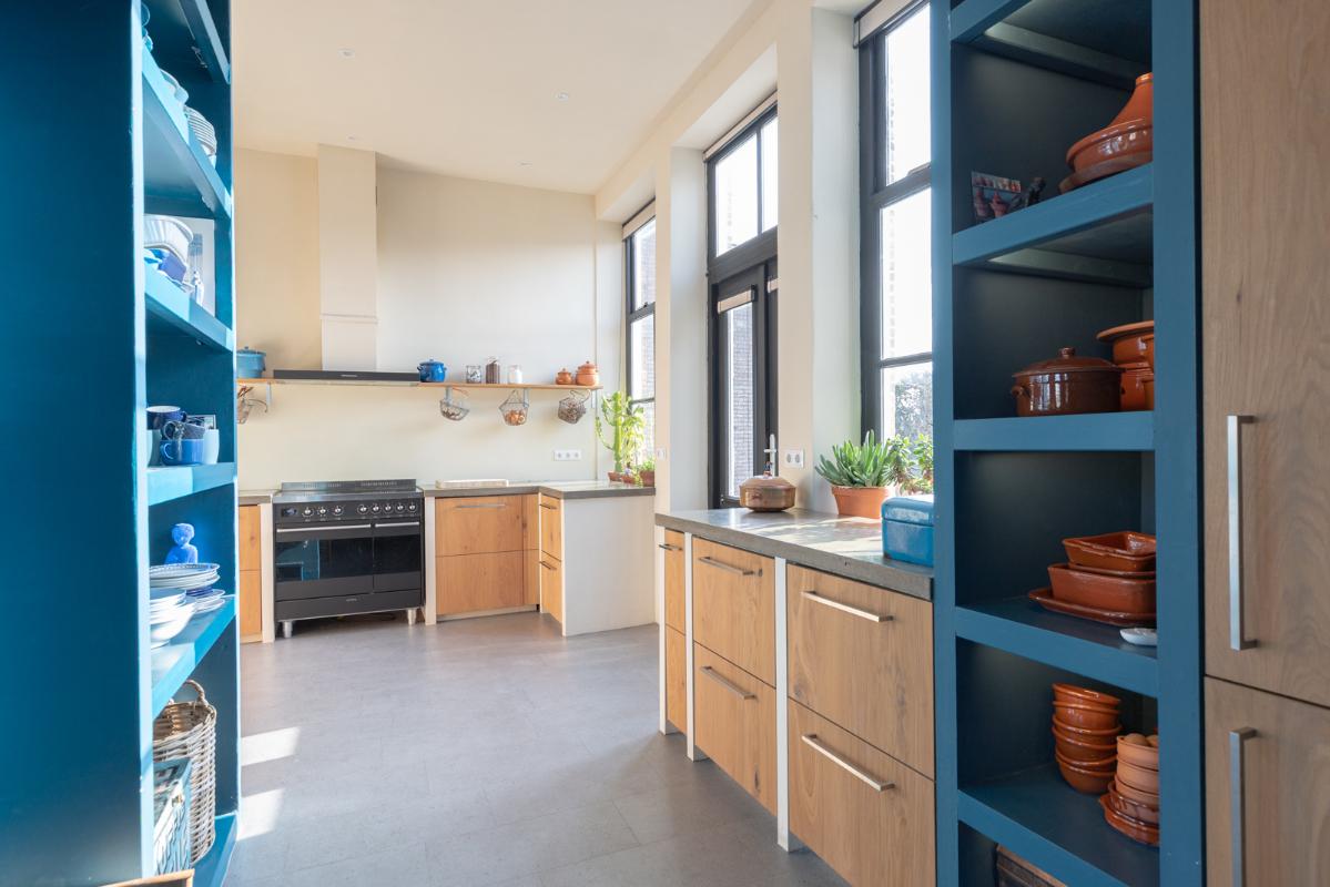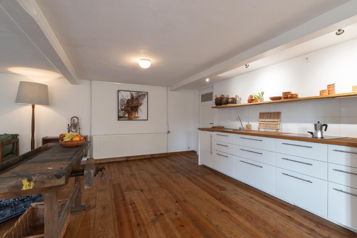 INDELING: BEGANE GROND: entree/tochtportaal met prachtige eikenhouten glas-in-lood deuren. Vanuit de imposante hal toegang tot het toilet, de woonkamer en de achtergelegen veranda. De riante living met halfopen keuken van ruim 100m² is een heerlijke ruimte vol warmte & sfeer en met een fraai uitzicht op de Vaart en de Witterbrug. De halfopen handgemaakte robuuste keuken (2023) is voorzien van een koel-vriescombinatie, inductiefornuis met oven, afzuigschouw, vaatwasser en veel kast- en werkruimte. Vanuit de keuken direct toegang de veranda (ca. 40m²) op het zuiden middels de dubbele tuindeuren. Het atelier (ca. 84m²) bevindt zich aan de tuinzijde en is middels een prachtige glaswand af te sluiten van de living. In 2024 is deze voormalige eetzaal van het Tehuis geheel verbouwd tot een prachtige multifunctionele ruimte. Dankzij het hoge plafond en grote ramen een heerlijke ruimte met prachtige lichtinval en een fraai uitzicht op de tuin. Het geheel wordt verwarmd (en gekoeld) middels twee airco-units en er is een extra keukenblok met spoelgelegenheid en koelkast. Vanaf de begane grond is er rechtstreeks toegang tot het gastenverblijf in het souterrain.