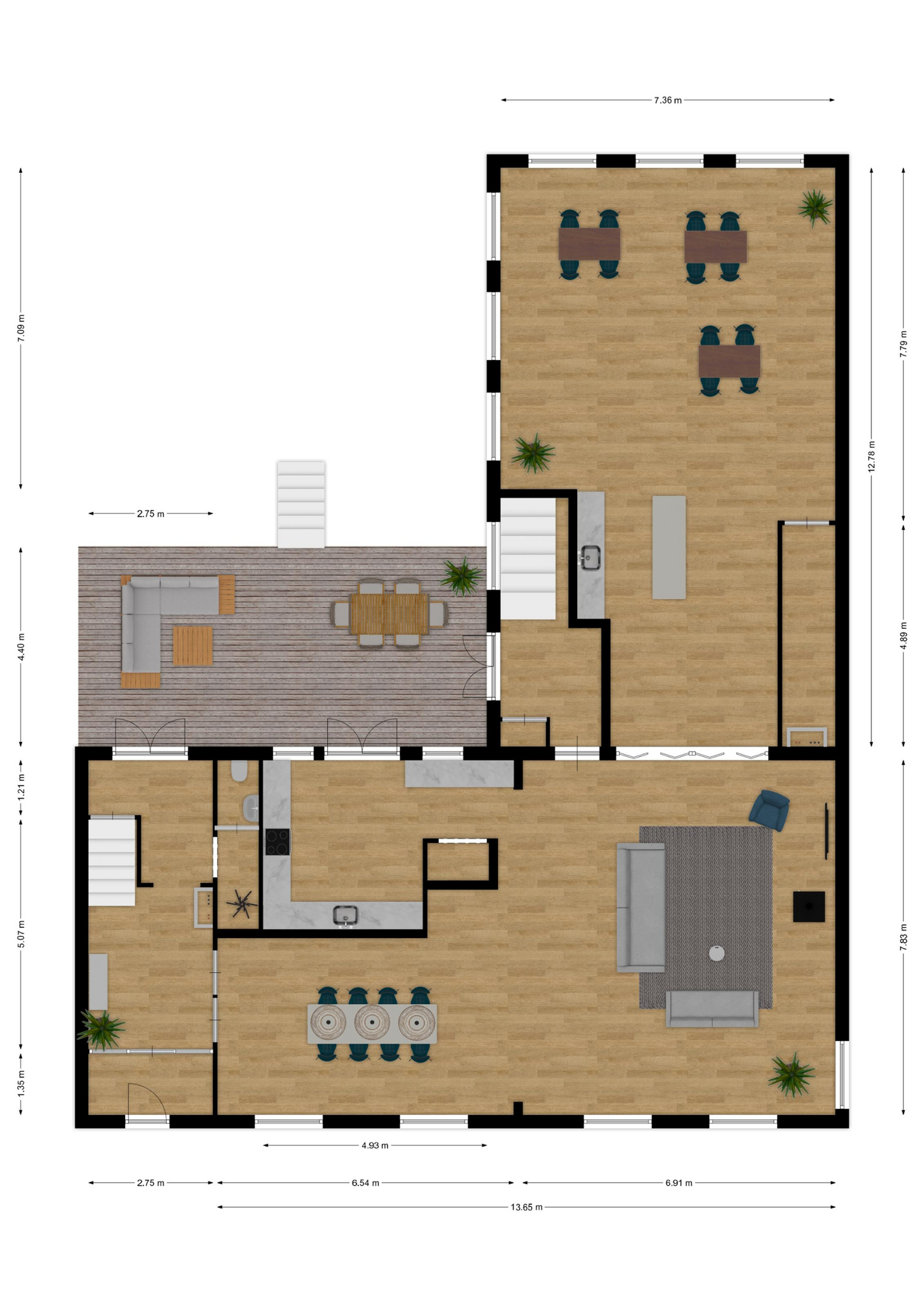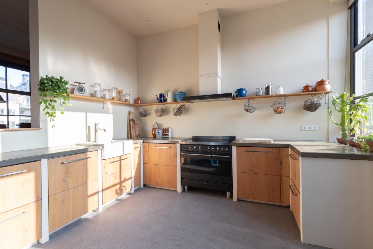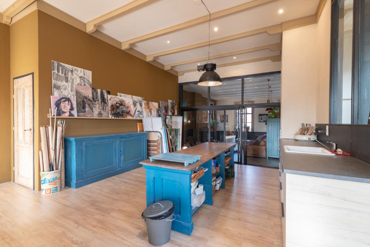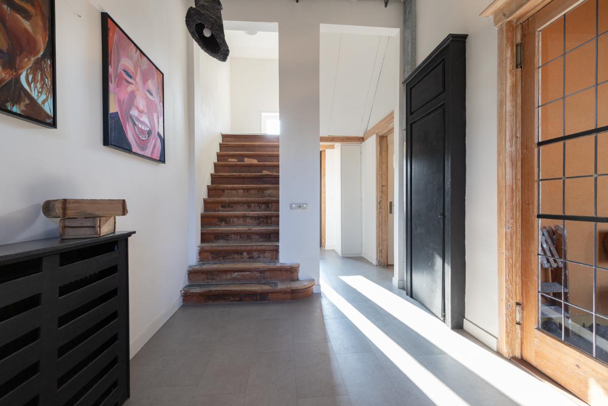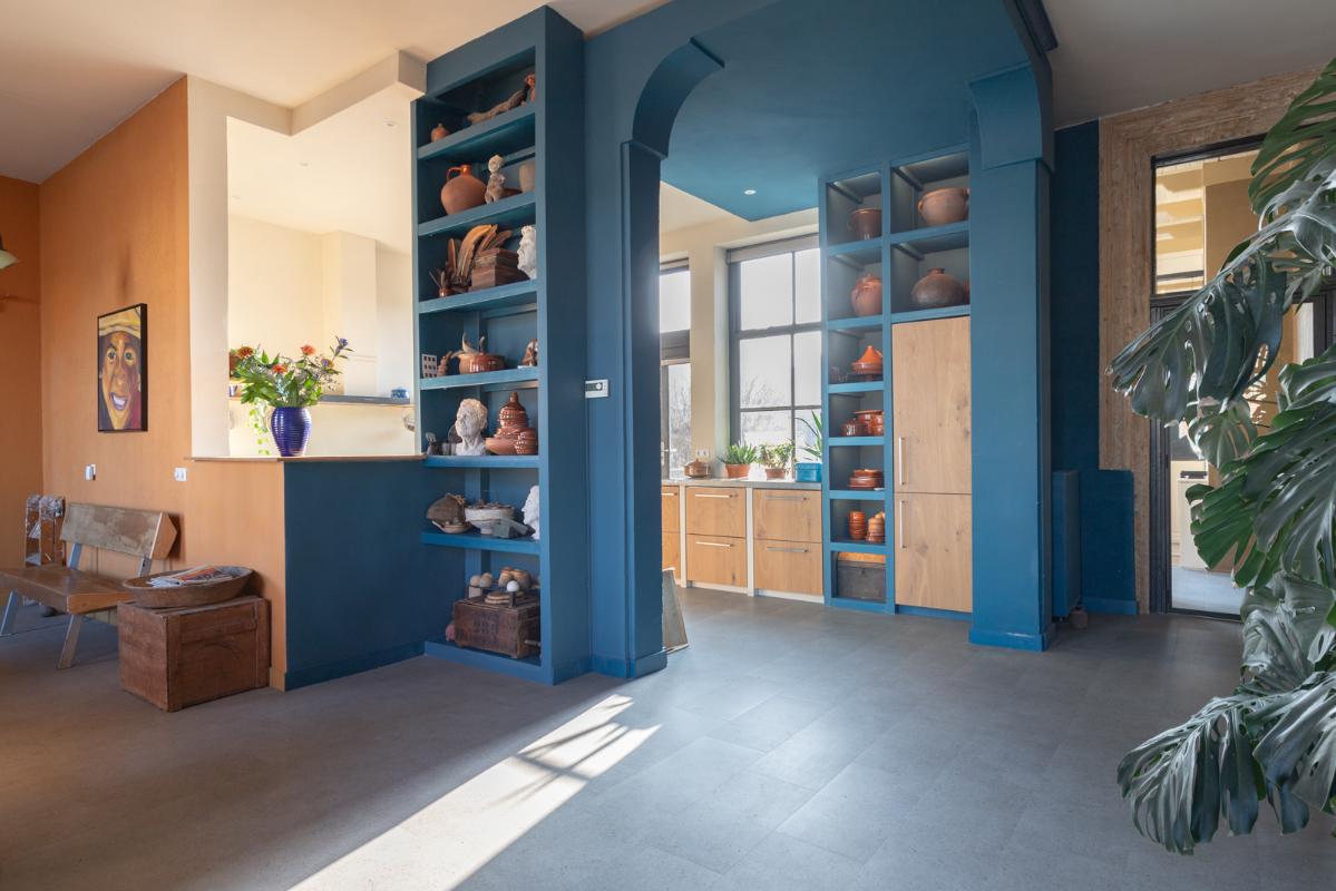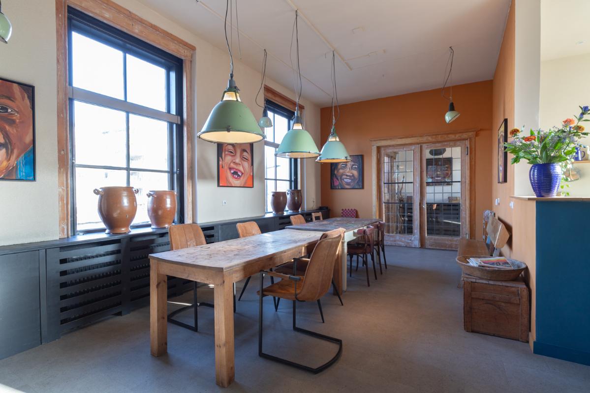 INDELING: BEGANE GROND: entree/tochtportaal met prachtige eikenhouten glas-in-lood deuren. Vanuit de imposante hal toegang tot het toilet, de woonkamer en de achtergelegen veranda. De riante living met halfopen keuken van ruim 100m² is een heerlijke ruimte vol warmte & sfeer en met een fraai uitzicht op de Vaart en de Witterbrug. De halfopen handgemaakte robuuste keuken (2023) is voorzien van een koel-vriescombinatie, inductiefornuis met oven, afzuigschouw, vaatwasser en veel kast- en werkruimte. Vanuit de keuken direct toegang de veranda (ca. 40m²) op het zuiden middels de dubbele tuindeuren. Het atelier (ca. 84m²) bevindt zich aan de tuinzijde en is middels een prachtige glaswand af te sluiten van de living. In 2024 is deze voormalige eetzaal van het Tehuis geheel verbouwd tot een prachtige multifunctionele ruimte. Dankzij het hoge plafond en grote ramen een heerlijke ruimte met prachtige lichtinval en een fraai uitzicht op de tuin. Het geheel wordt verwarmd (en gekoeld) middels twee airco-units en er is een extra keukenblok met spoelgelegenheid en koelkast. Vanaf de begane grond is er rechtstreeks toegang tot het gastenverblijf in het souterrain.