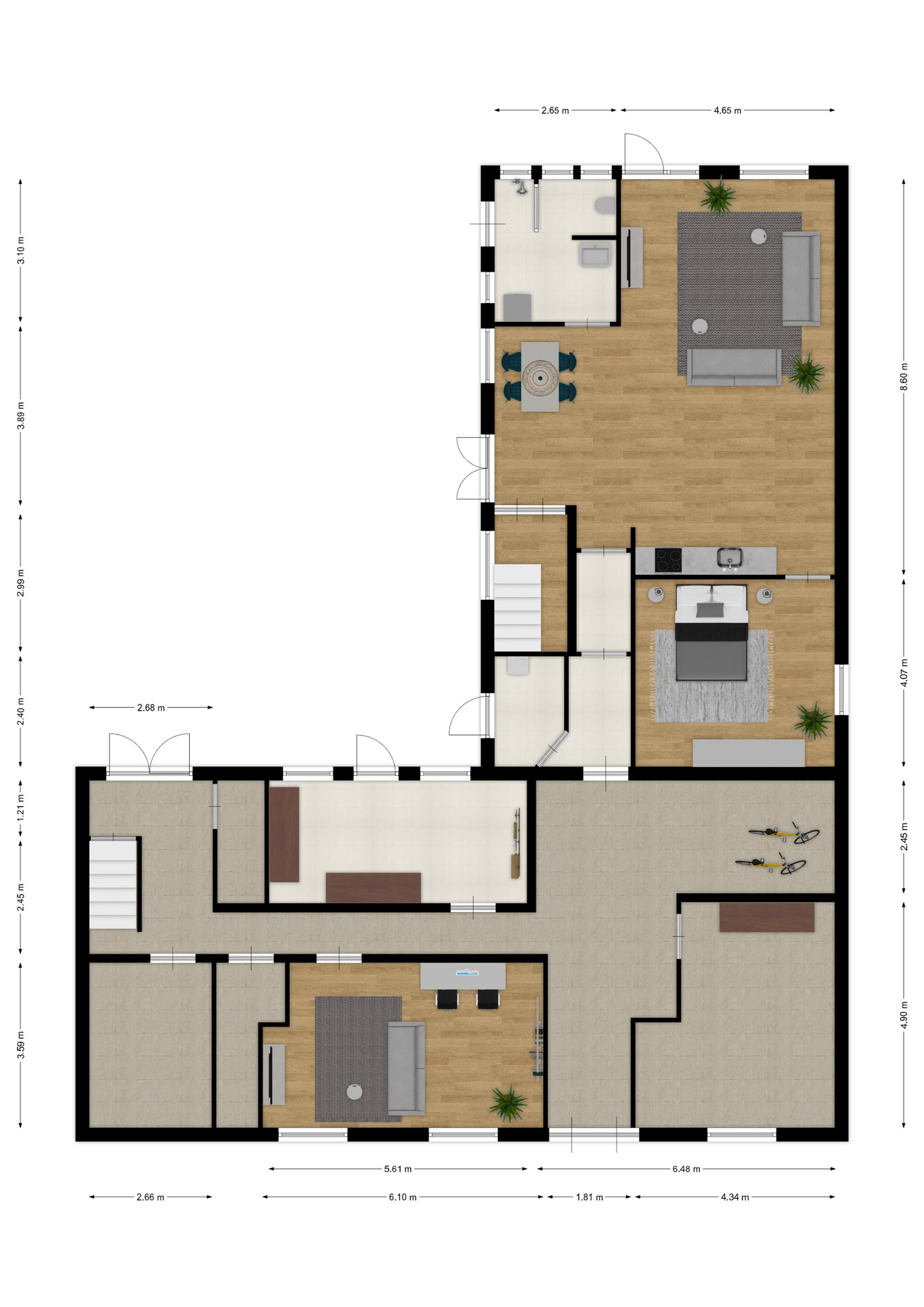 BESTEMMING & FUNCTIEGEBRUIK: Het pand heeft primair een woonbestemming maar het is ook toegestaan om er deels een kantoorfunctie aan te geven. Het souterrain (met eigen entree) of de atelierruimte zou uitstekend geschikt kunnen zijn om als kantoor of praktijk aan huis in te richten. Ook de aanwezigheid van het zelfstandige gastenverblijf geeft mogelijkheden om eventueel een dubbele bewoning te realiseren.