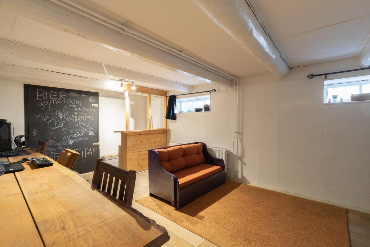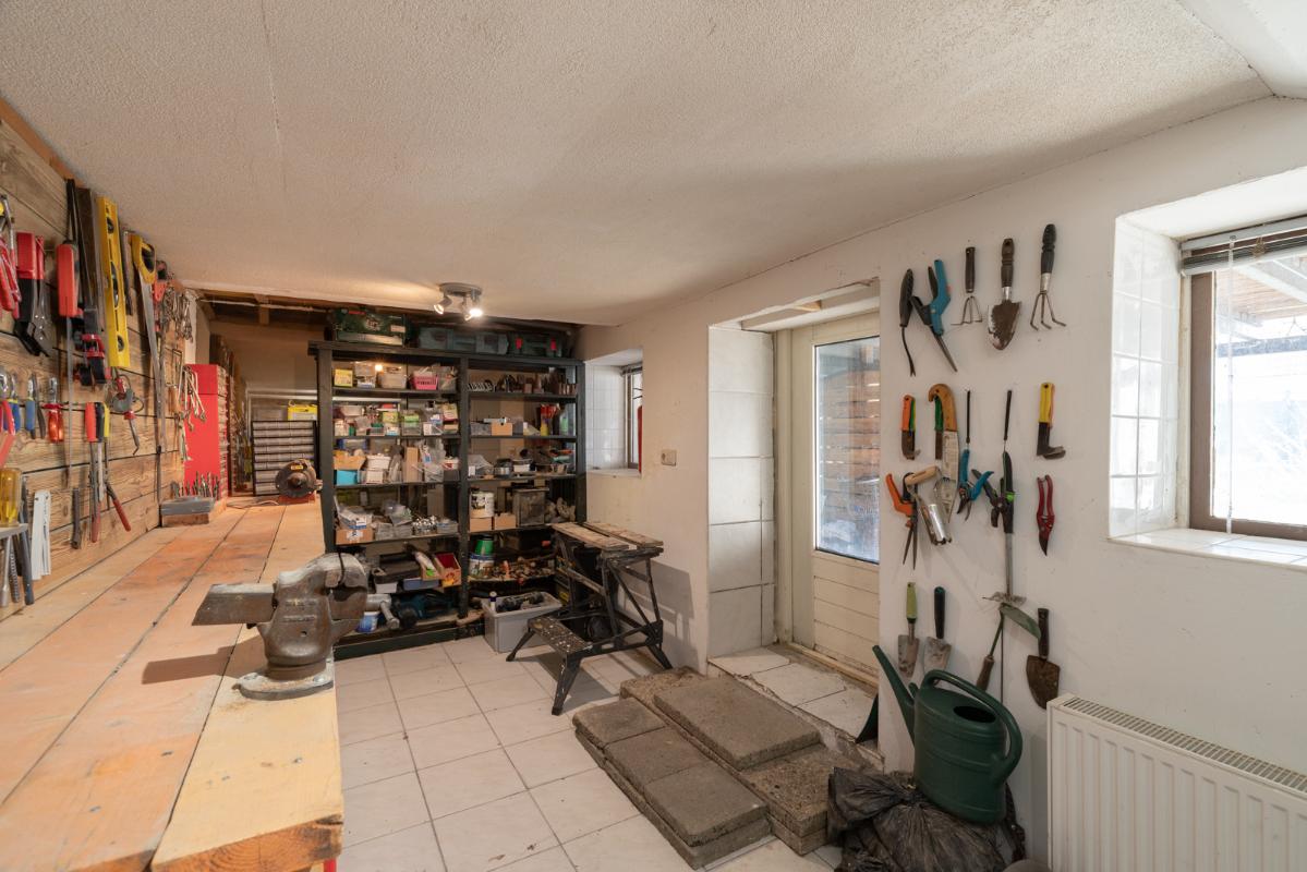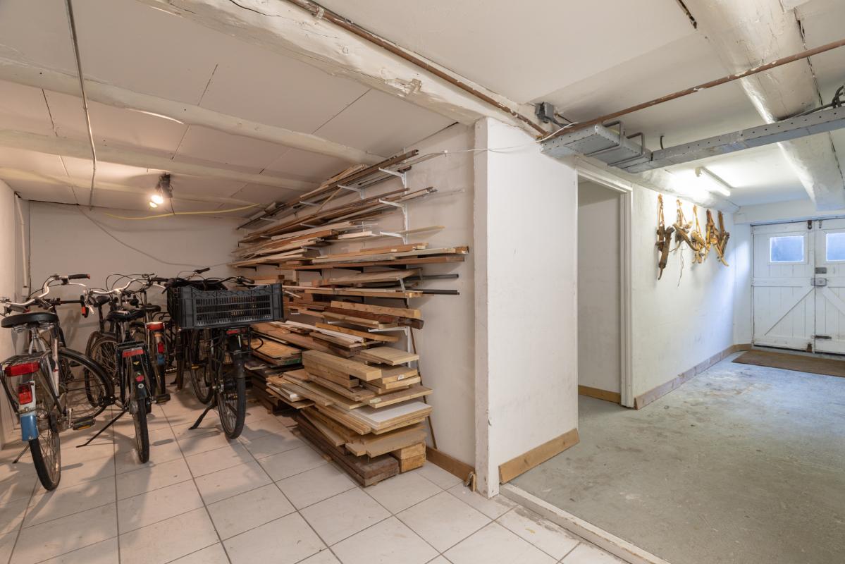 SOUTERRAIN (straatzijde): Eigen entree aan de voorzijde; twee ruime bergingen, fietsenstalling, een werkkamer/chillroom met daglicht (ca. 20m²) en een werkplaats/hobbyschuur (ca. 15m²) met deur naar de tuin.
