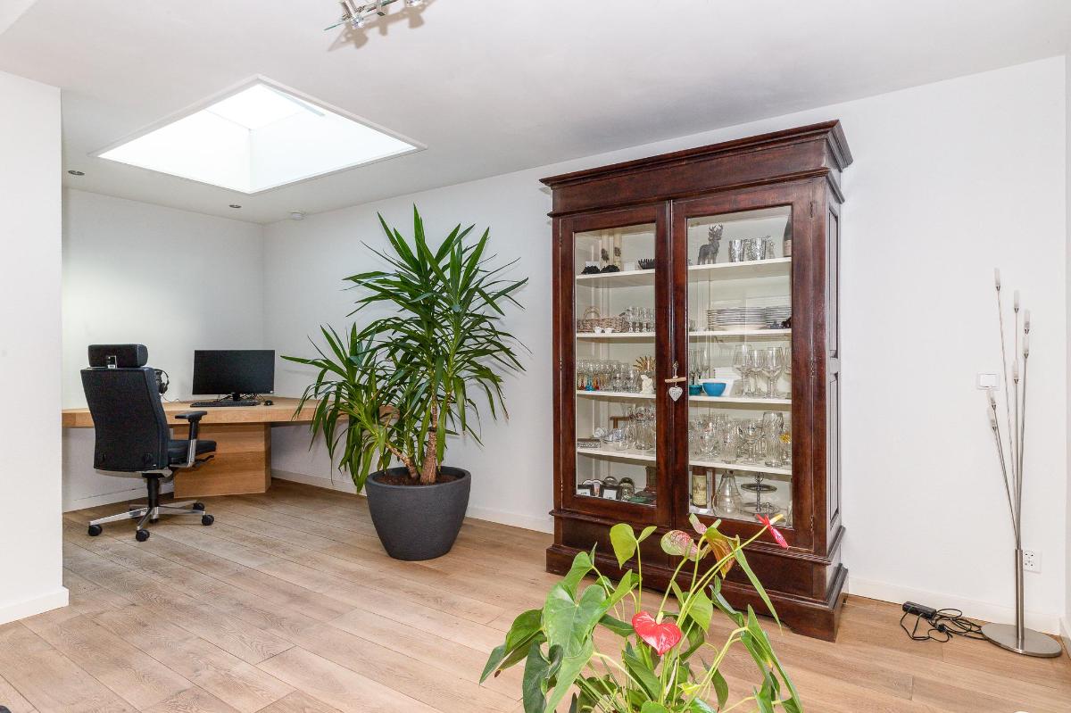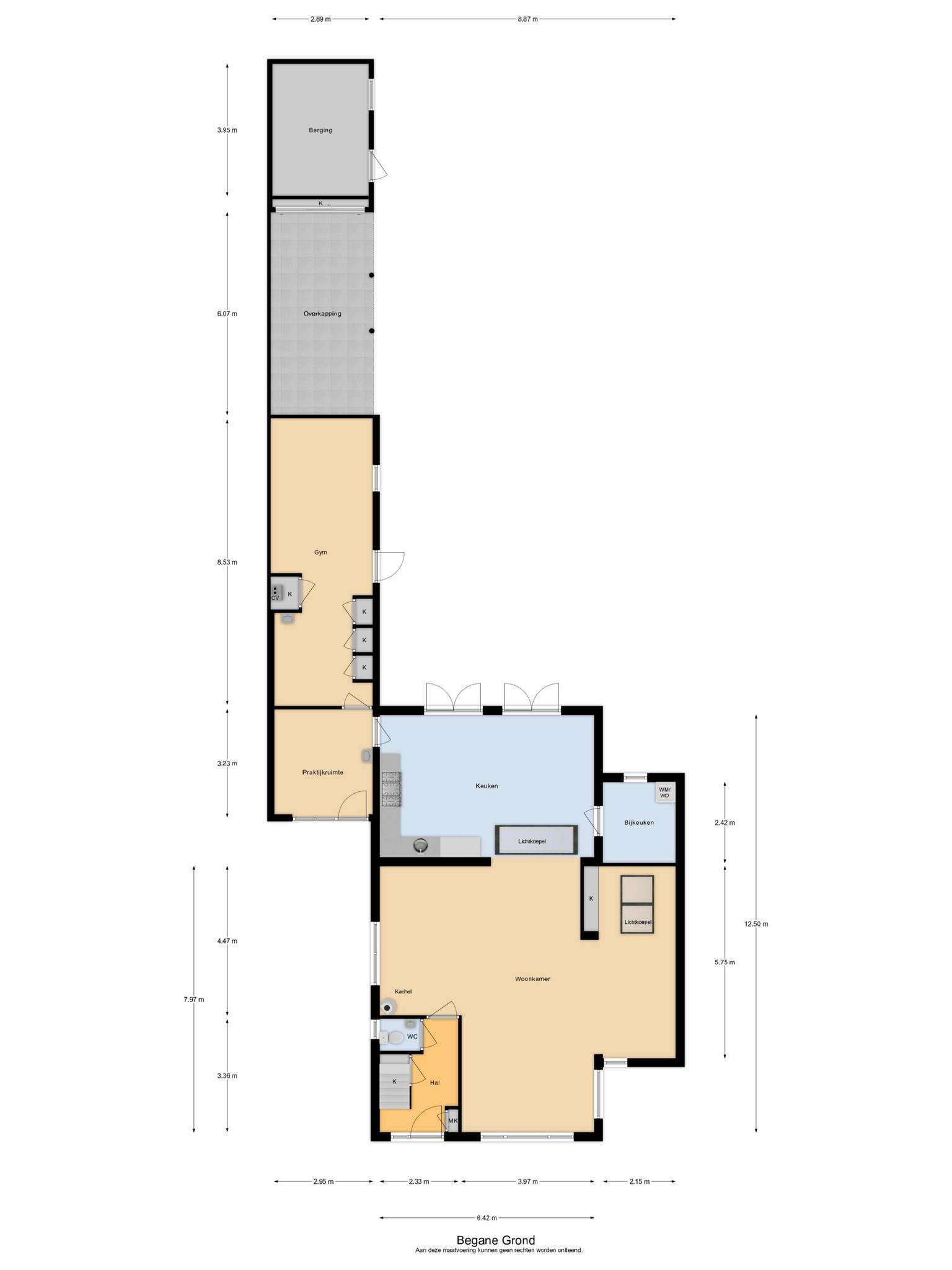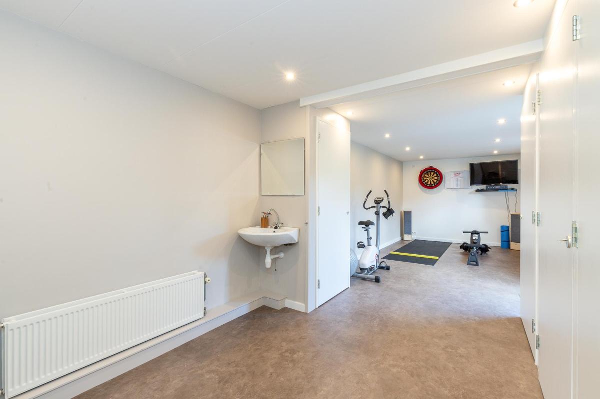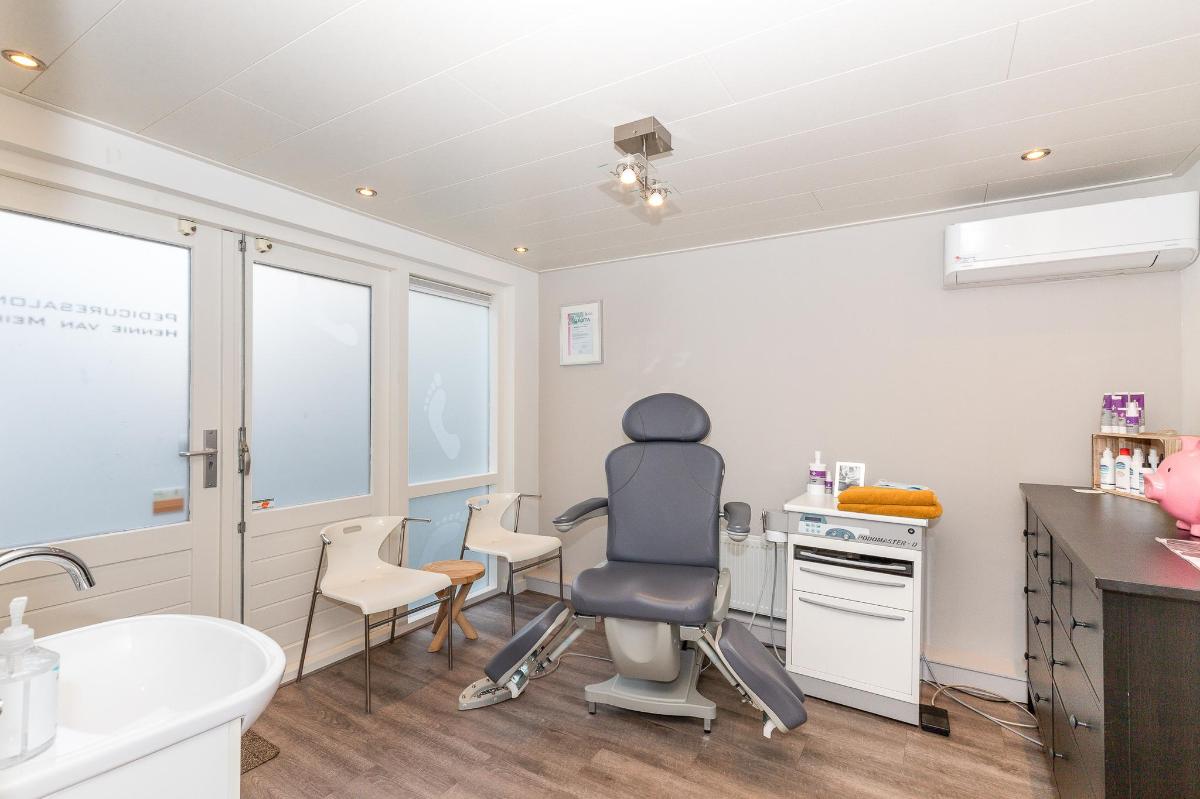 Praktijkruimte Multifunctionele ruimte die uitermate geschikt is voor een beroep aan huis of speelkamer. Na verbouwing kan de ruimte echter ook gebruikt worden als garage of juist als slaap- en badkamer. De ruimte kan met recht multifunctioneel worden genoemd! De totale ruimte is circa 35 m² groot en is nu verdeeld in een praktijk en sportruimte. De ruimte is voorzien van een airco, CV-ketel (Remeha Avanta, bouwjaar 2006) en diverse vaste kasten. In een van de vaste kasten zit een extra groepenkast (met 6 groepen, een krachtgroep en 2 aardlekschakelaars). De ruimte is bereikbaar vanuit de keuken, achtertuin en vanaf de oprit. Het voorste gedeelte, de praktijkruimte, is voorzien van een PVC vloer, de wanden zijn voorzien van stucwerk en het plafond betreft een systeemplafond. De vloer in de sportruimte is voorzien van vinyl, de wanden zijn voorzien van muurverf en het plafond is van gips.