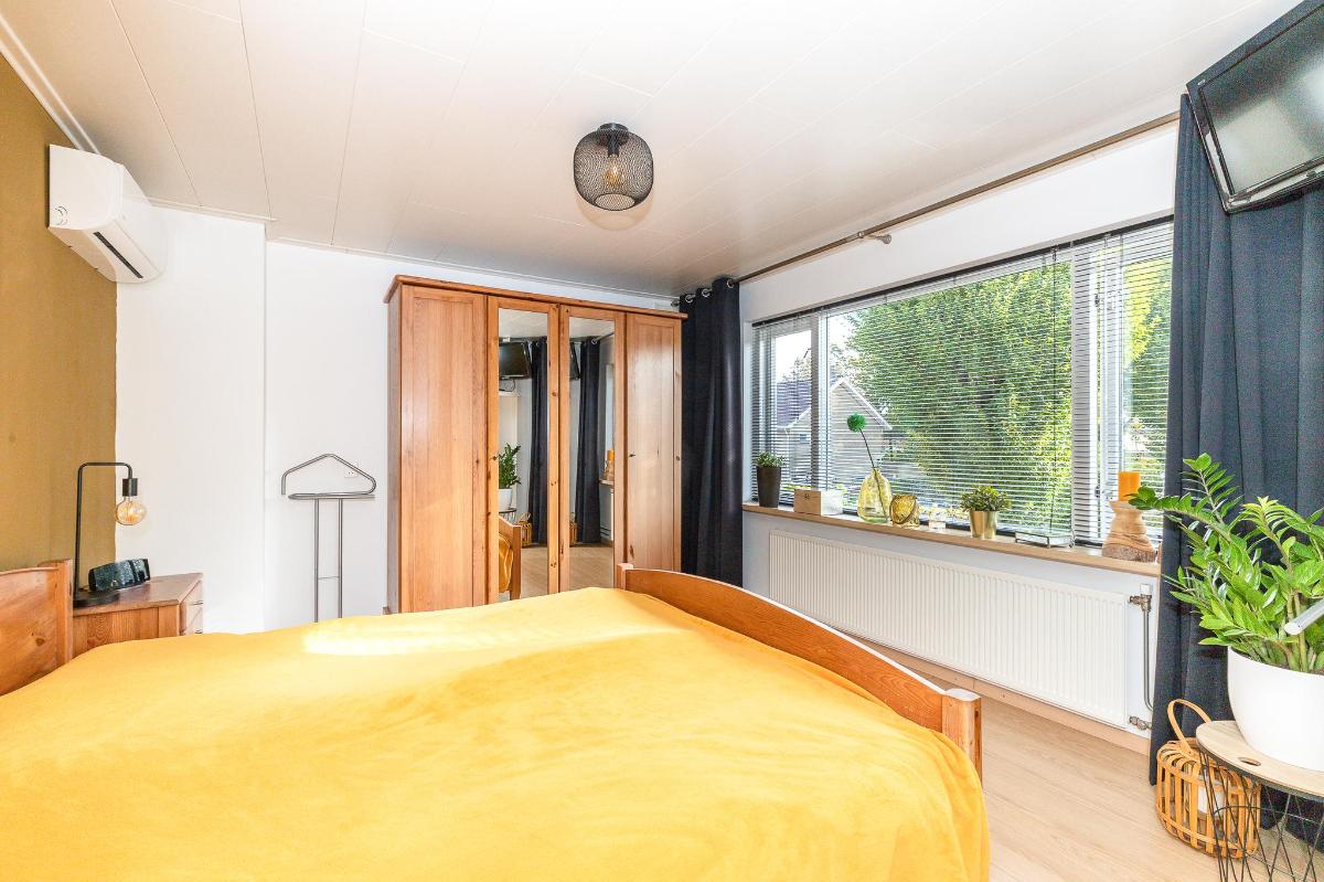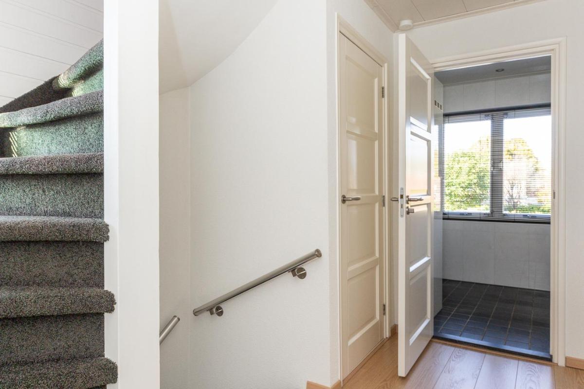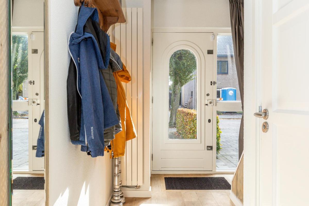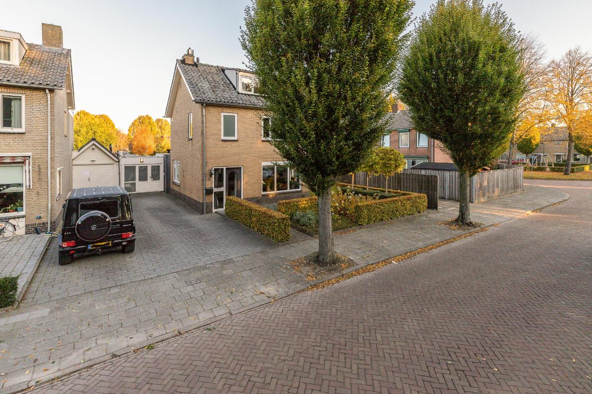 Entree/hal Via een van sierbestrating voorzien looppad door de voortuin bereikt u de voordeur en komt u in de hal. De voortuin is voorzien van diverse beplanting en links van de woning is een oprit die plaats biedt aan 3 auto's. De hal is voorzien van een eikenhouten vloer, de wanden zijn voorzien van spachtelputz en het plafond is voorzien van stucwerk. Vanuit de hal zijn de woonkamer, toiletruimte, bergkast, meterkast (met 8 groepen, 2 aardlekschakelaars en glasvezelaansluiting) en trapopgang naar de eerste verdieping bereikbaar. De toiletruimte beschikt over een hangend toilet en een fonteintje. De wanden zijn betegeld in een neutrale kleurstelling, de vloer is voorzien van zwarte tegels en het plafond is voorzien van stucwerk.