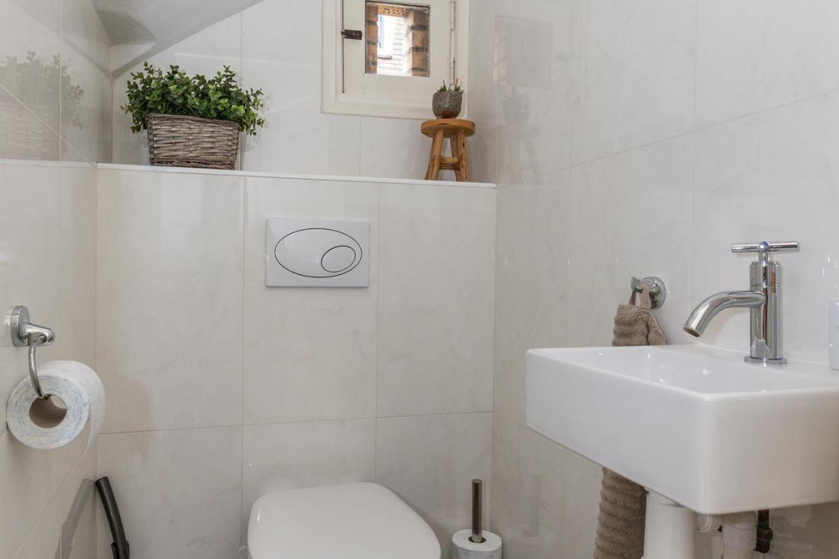 Bijkeuken De bijkeuken is circa 5 m² groot en is voorzien van een aansluiting voor de wasmachine. De vloer is voorzien van zwarte tegels, de wanden zijn voorzien van stucwerk en het plafond is voorzien van schuurwerk.