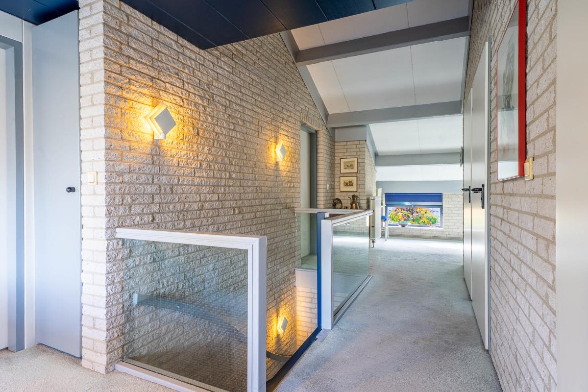 EERSTE VERDIEPING Overloop met toegang tot de slaapkamers, badkamers, drietal bergkasten, het balkon en de vlizotrap naar de bergzolder. Op de overloop is handig gebruik gemaakt van de vele ruimte door hier een aparte werkplek te creëren. Desgewenst kunnen op deze overloop nog 2 extra slaapkamers eenvoudig gecreëerd worden.