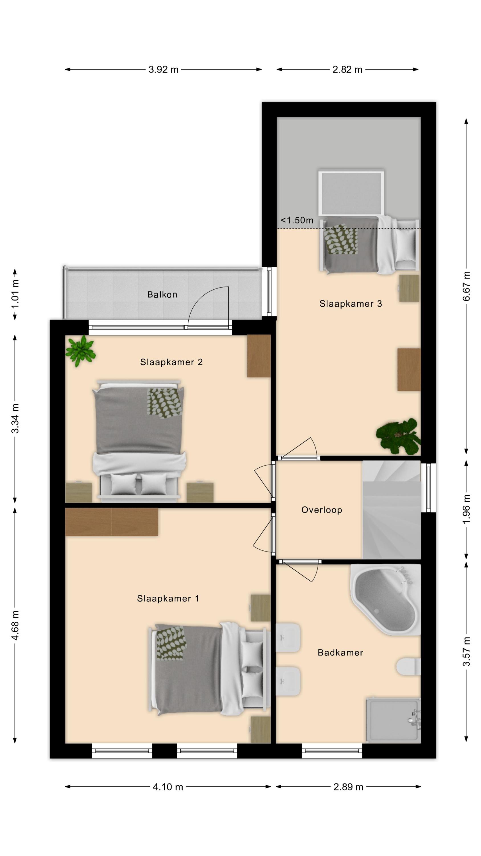 Aan de overloop grenzen drie slaapkamers welke allen ruimte bieden voor een tweepersoons bed! Ook de badkamer is heerlijk ruim van opzet en voorzien van onder meer een hangcloset, hoekbad, douchecabine en een dubbele wastafel in meubel. Het raam zorgt voor natuurlijke lichtinval en ventilatie, daarnaast kan de ruimte ook mechanisch worden geventileerd.