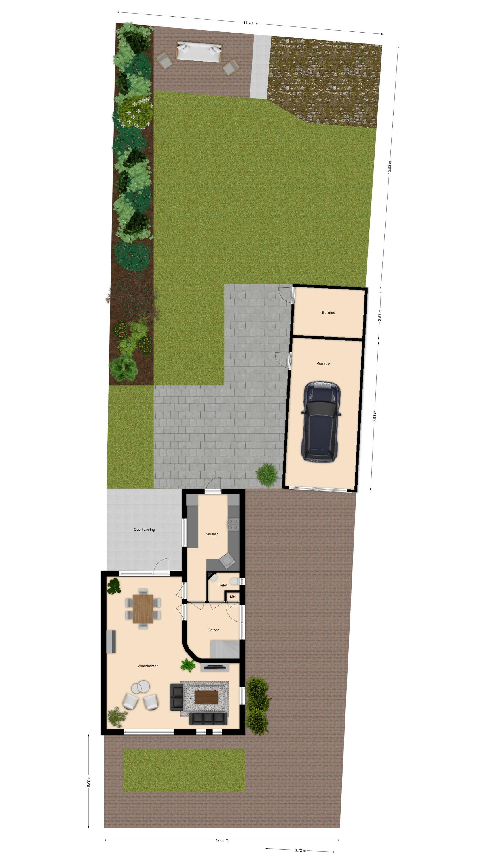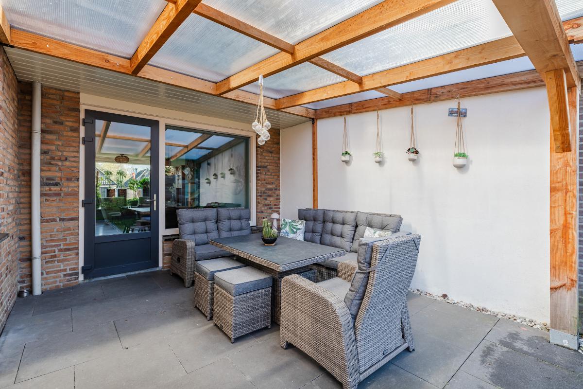 Met een diepte van maar liefst 28 meter heeft de achtertuin op het noorden altijd zonrijke plekken. De tuin is mooi aangelegd met onder meer diverse plantenborders, terrassen en gazon en een extra overdekt terras tegen de achtergevel. De garage is in spouw gebouwd en is met een diepte van 7,96m en een breedte van 3,70m een slag ruimer dan de standaard garage. De garage is voorzien van een sectionaaldeur, water, elektra, krachtstroom en riolering aansluiting. Er is een extra loopdeur met HR++ beglazing. Een fijne klus- of bergruimte.
