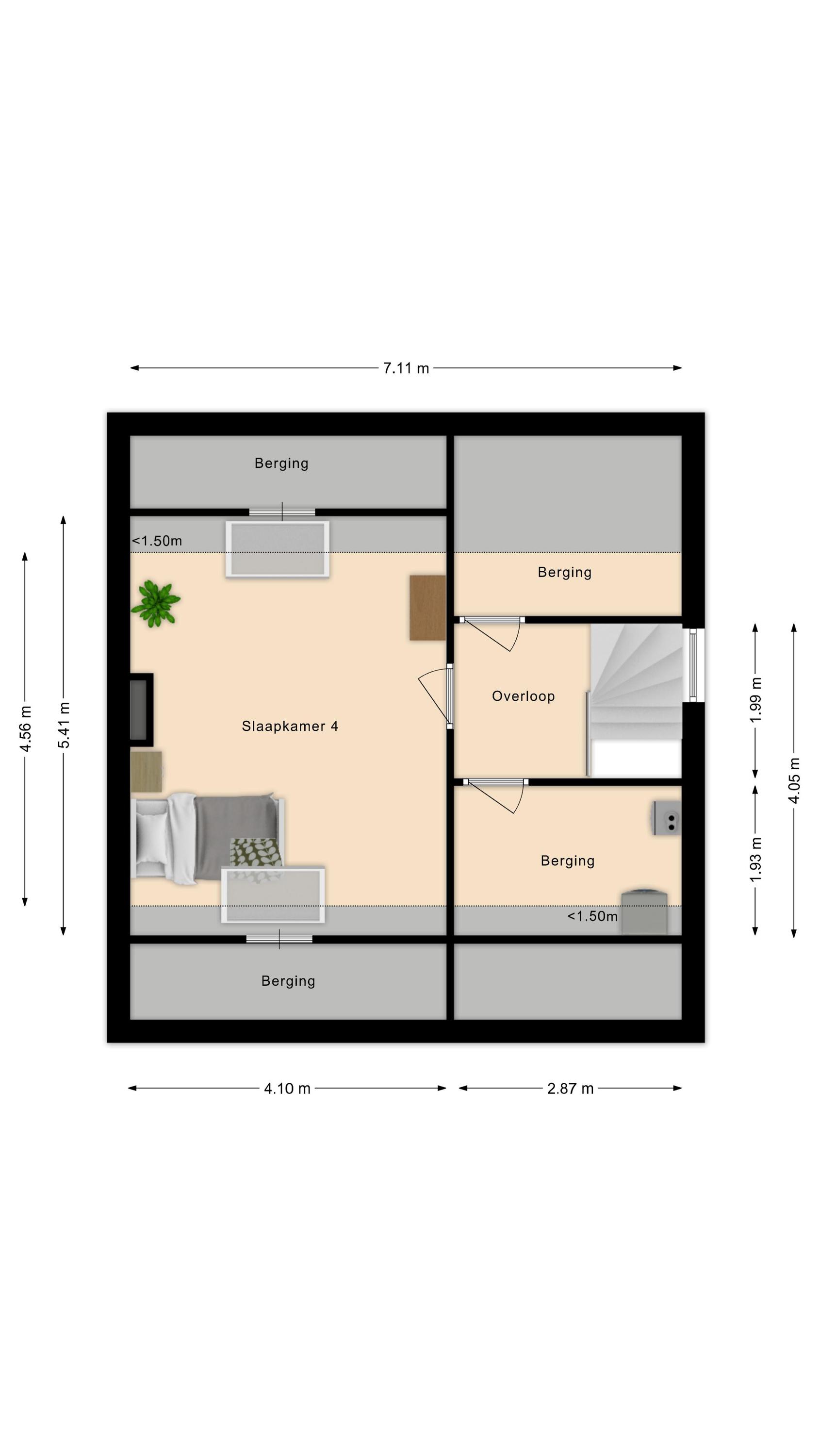 Middels vaste trap bereikbaar. Voorzolder met bergruimte en was- en droogruimte met met aansluitingen voor wasapparatuur en opstelling cv-combiketel (Intergas HRE, 2011). Grote slaapkamer 4 met Velux vensters. Naar wens is deze kamer prima op te delen in twee slaapkamers waardoor het huis in totaal 5 slaapkamers te bieden heeft.
