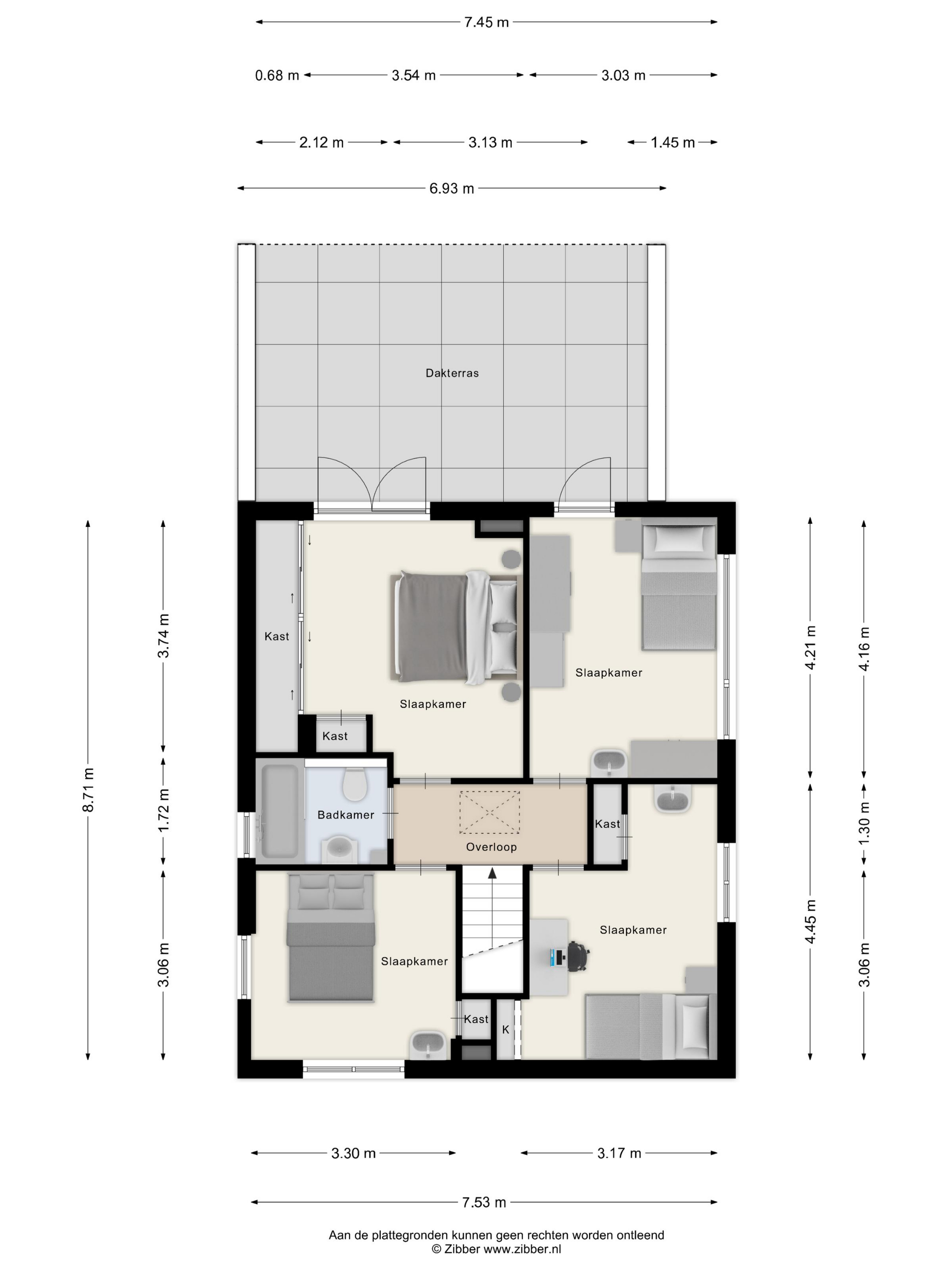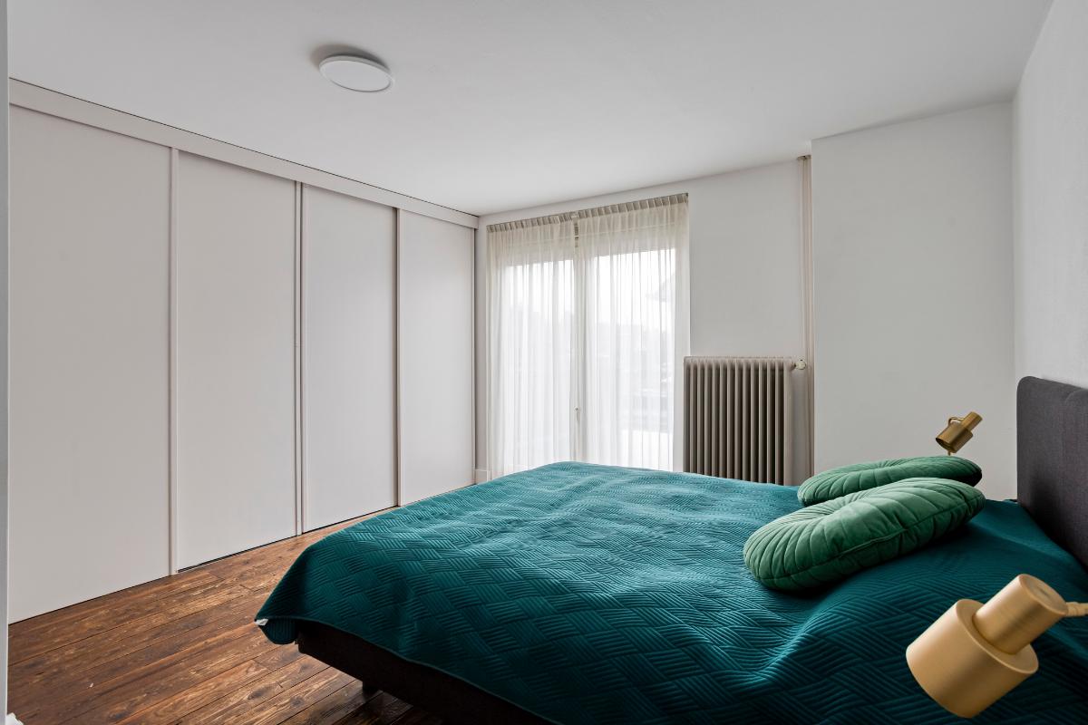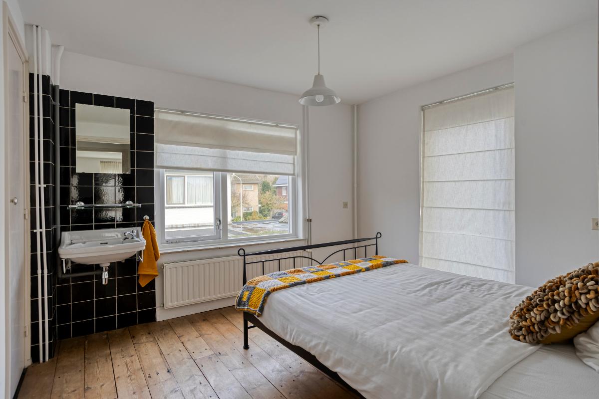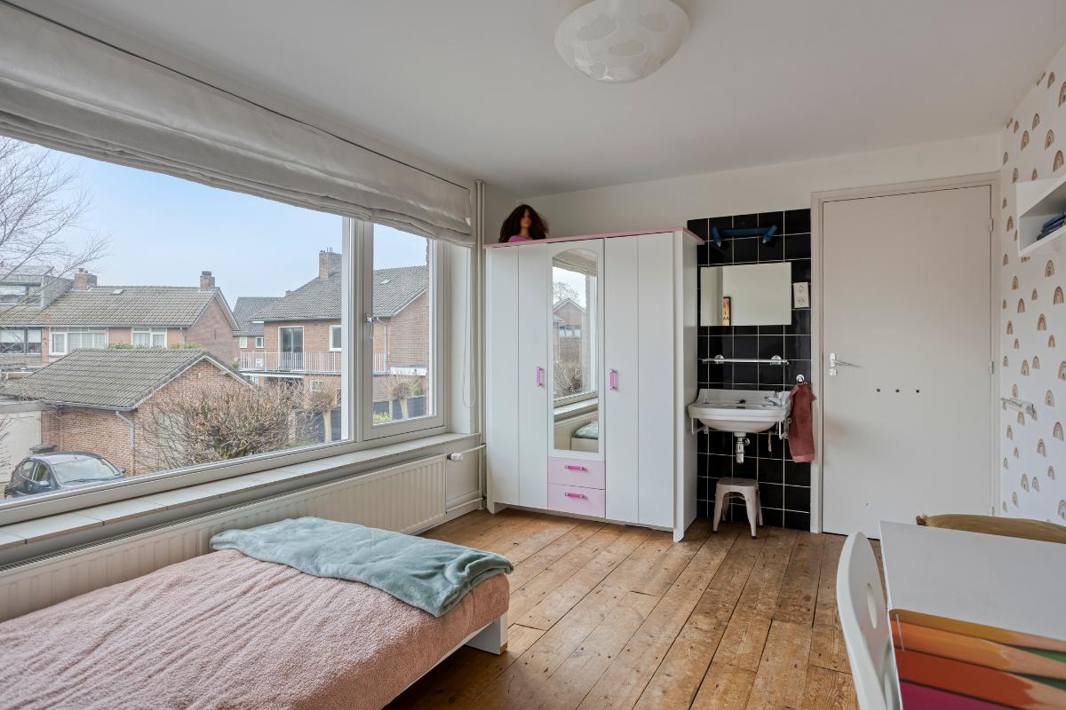 SLAAPKAMER(S) - Slaapkamer I (ca. 17 m²): Royale ouderslaapkamer aan de achterzijde, voorzien van planken vloer, inbouwkast, ruime kastenwand, dubbele deuren naar het plat dak en stucwerk wand- en plafondafwerking. - Slaapkamer II (ca. 13 m²): Gelegen aan de voorzijde, voorzien van planken vloer, vaste wastafel, deur naar plat dak en stucwerk wand- en plafondafwerking. - Slaapkamer III (ca. 12 m²): Eveneens aan de voorzijde, thans in gebruik als werkkamer, met planken vloer, twee vaste inbouwkasten en stucwerk afwerking. - Slaapkamer IV (ca. 10 m²): Aan de achterzijde gelegen, voorzien van planken vloer, inbouwkast, vaste wastafel en deur naar plat dak.
