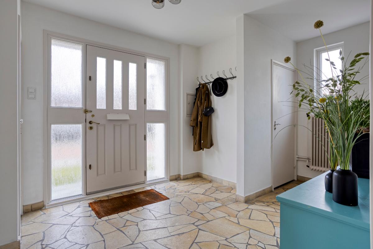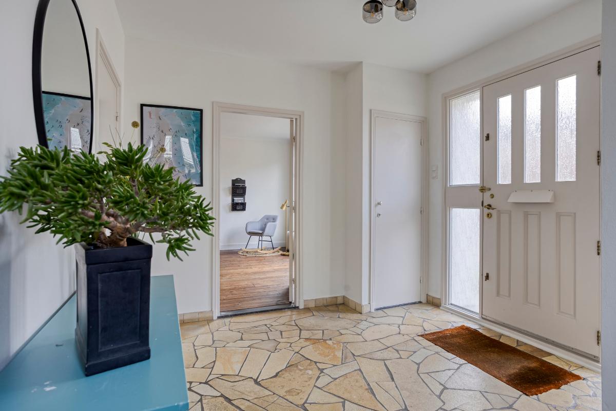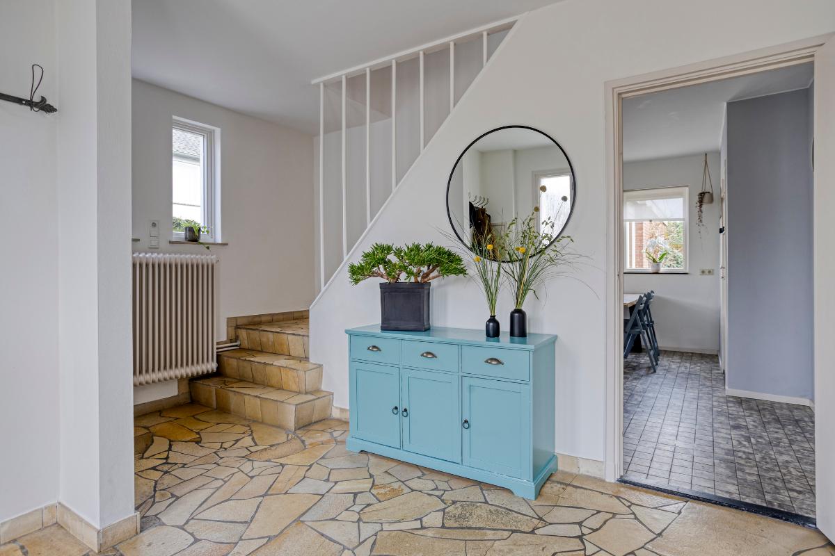 BEGANE GROND Via de ruime oprit bereikt u de entree van de woning. De ontvangsthal is voorzien van een garderobe, meterkast met uitgebreide groepenkast, trapopgang naar de verdieping en een volledig betegelde toiletruimte met wandcloset en fonteintje. Vanuit de hal is er toegang tot de living en de keuken.