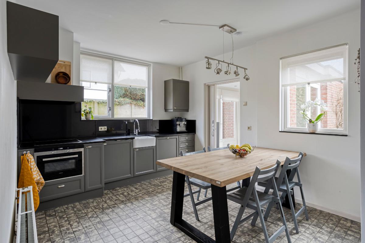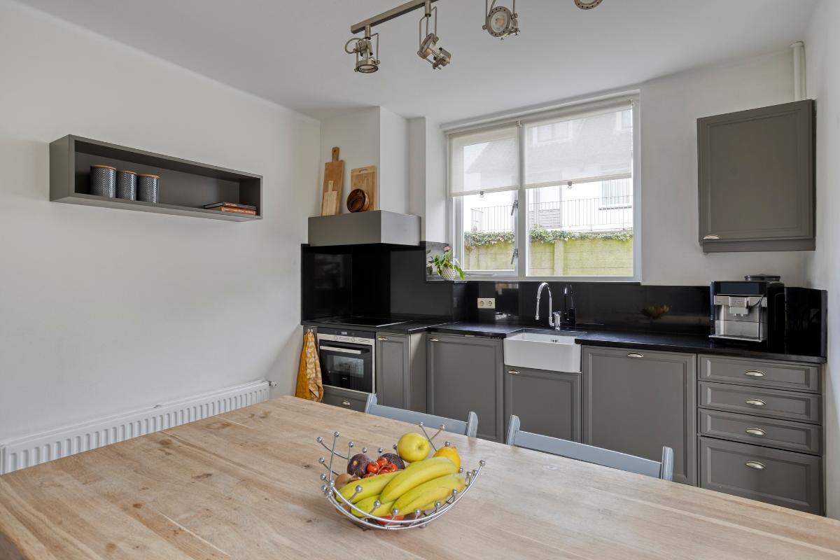 Daarnaast beschikt de keuken over een ruime inbouwkast, een deur naar het achtergelegen portaal en een deur met toegang tot een manshoge kelder, voorzien van elektra.