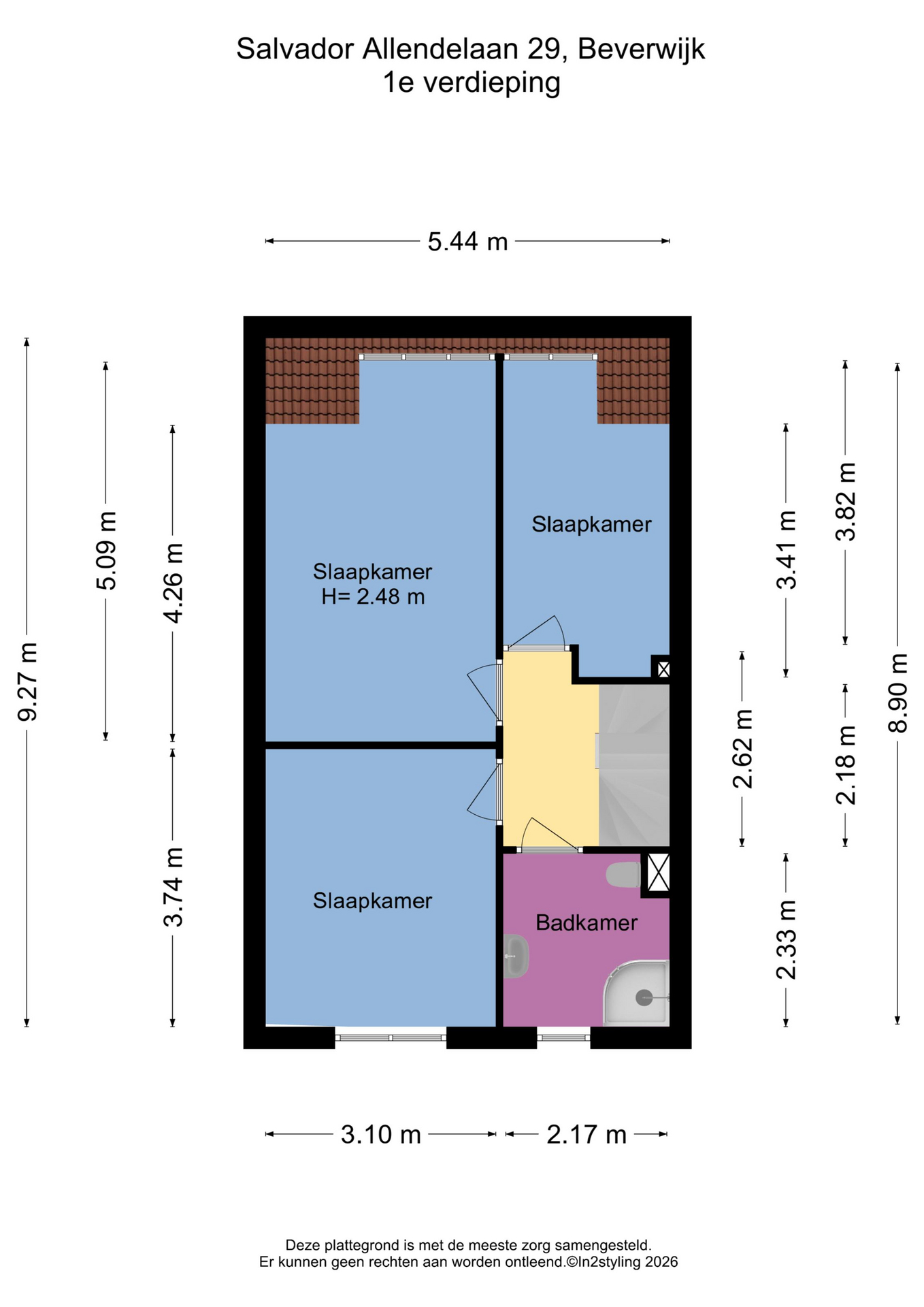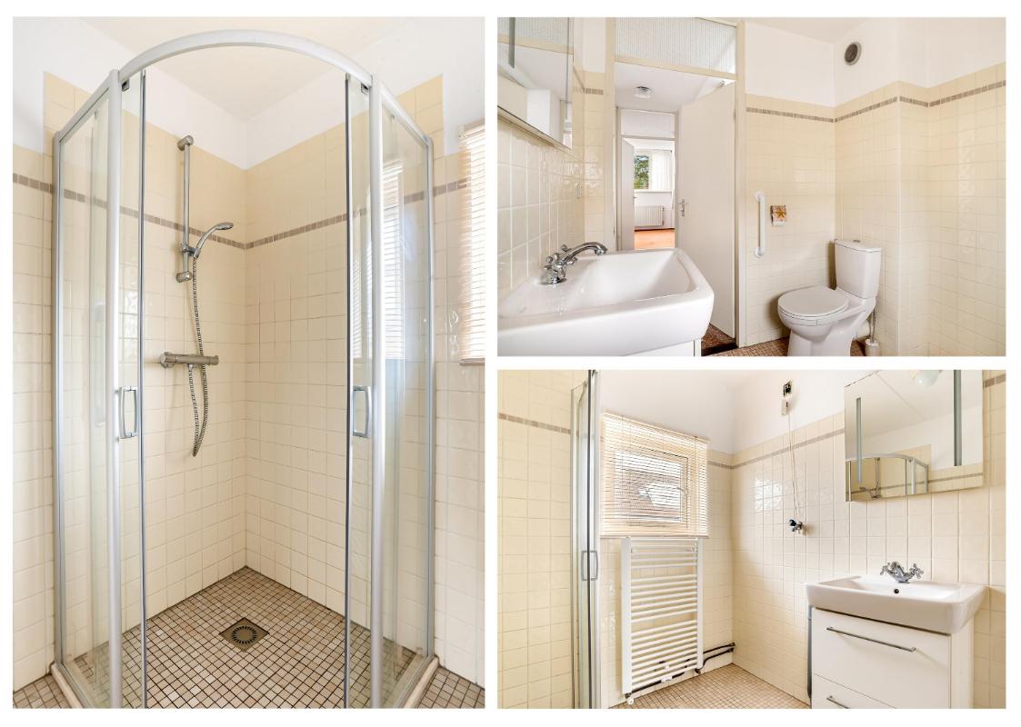 Op de eerste verdieping treft u drie goed bemeten slaapkamers en een complete badkamer met inloopdouche, wastafelmeubel, toilet, handdoekradiator en aansluiting voor de wasmachine.
