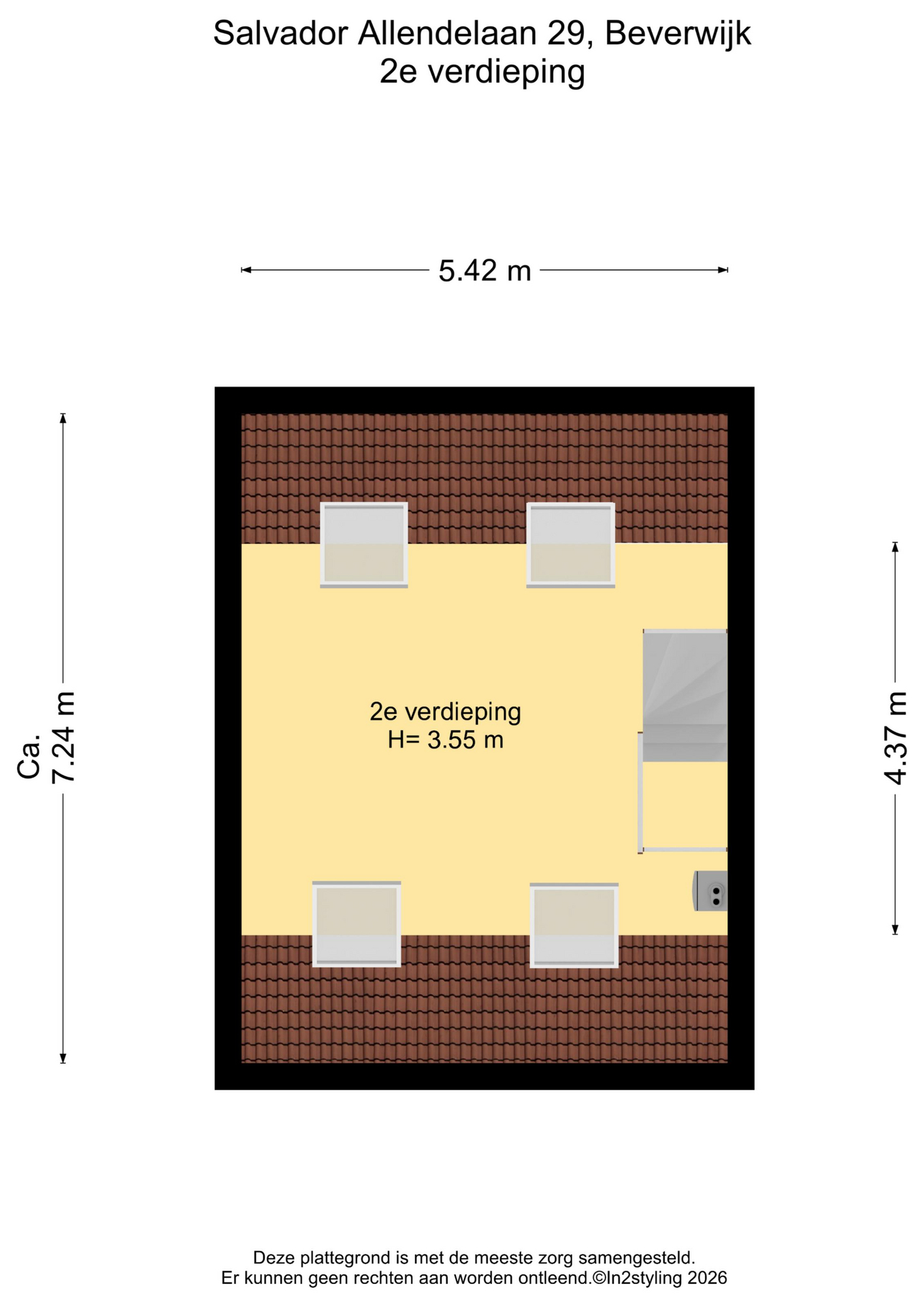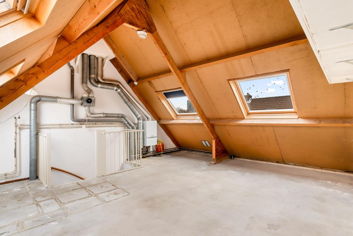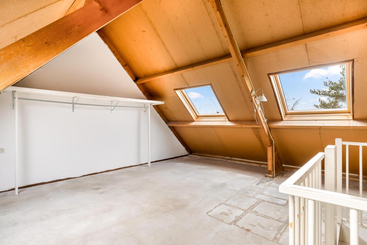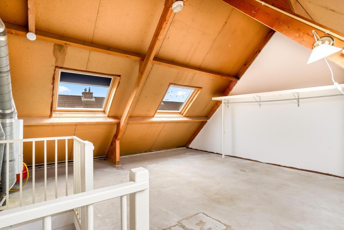 De tweede verdieping is een verrassend ruime zolderverdieping die nog geheel naar eigen wens is in te delen. Hier kunnen eenvoudig één of zelfs twee extra slaapkamers worden gerealiseerd – ideaal voor een groeiend gezin, een thuiswerkplek of hobbyruimte.
