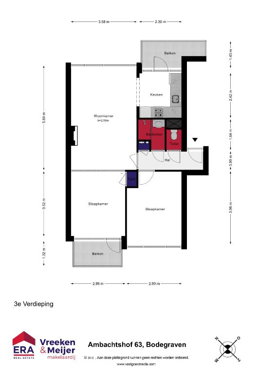 De presentatie is met zorg samengesteld. Bij het ontbreken van informatie of aan eventuele onjuistheden kunnen geen rechten worden ontleend. De woning is opgemeten conform de branchebrede meetinstructie, gebaseerd op de norm NEN2580. Aan deze maten kunnen geen rechten worden ontleend. Op de plattegronden genoemde maten zijn slechts indicatief en zijn niet bestemd om te worden gebruikt voor bestelling van keuken, sanitair en/of stofferingen.