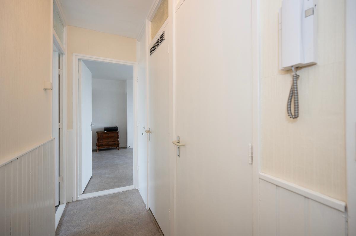Appartementsentree op de derde verdieping: u komt binnen in de hal waar u de toegang heeft tot diverse vertrekken zoals de grote slaapkamer, het toilet, de badkamer, de meterkast en de woonkamer. Laten we beginnen bij de woonkamer. Deze heeft een prima maatvoering en heeft door de grote ramen aan de voorzijde een prettige lichtinval en heeft u een mooi uitzicht over de voorgelegen groenstrook en de omgeving. Vanuit de woonkamer is een open verbinding met de keuken welke in een hoekopstelling is geplaatst en is voorzien van een koel-vriescombinatie, 5 pits gaskookplaat en een aansluitpunt voor de wasmachine alsmede een deur naar het balkon. In de keuken hangt tevens de Intergas ketel welke op dit moment alleen gebruikt wordt voor de warmwatervoorziening voor de keuken en badkamer. Grenzend aan de woonkamer is een deur naar de kleinere slaapkamer welke eveneens een deur heeft naar het balkon. De grote slaapkamer bevindt zich eveneens aan de achterzijde. De badkamer is voorzien van een douche en wastafel en er is een separaat toilet. De meterkast is voorzien van een moderne groepenkast.