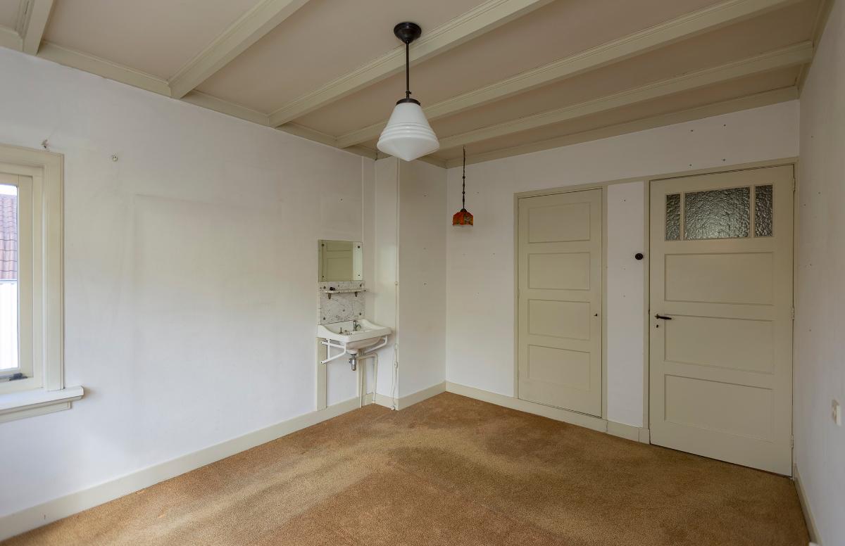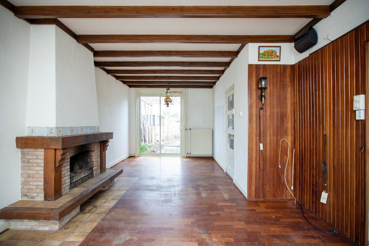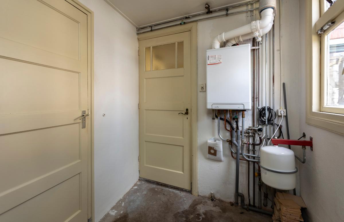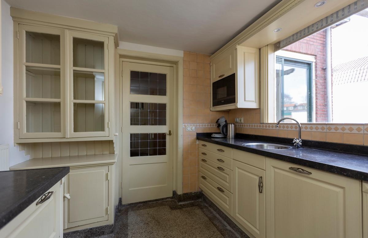Begane grond: Entree, lange gang met een granitovloer, moderne meterkast, bergkast onder de trap en niet te vergeten de toegang tot de woonkamer. De woonkamer is voorzien van een erker aan de voorzijde, een open haard en een schuifpui naar de tuin. De keuken bevindt zich aan de achterzijde van de woning en is voorzien van een authentieke servieskast, de keukenopstelling is aan 2 zijden en is voorzien van een ingebouwde koel-vriescombinatie, een vaatwasser, 4-pits gaskookplaat, afzuigkap en een oven. Doorgang naar de bijkeuken met de opstelplaats voor de cv ketel (Intergas combi ketel uit 2021) en de toegang tot de badkamer met een inzet douche, wasbakje en een toilet. Deur naar de tuin.