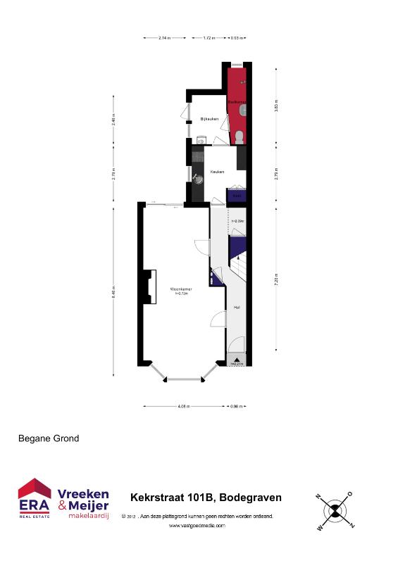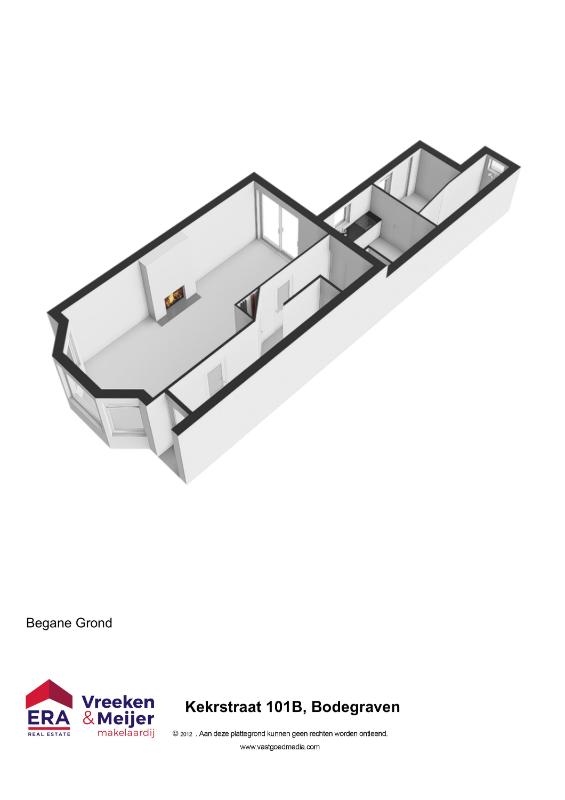 De presentatie is met zorg samengesteld. Bij het ontbreken van informatie of aan eventuele onjuistheden kunnen geen rechten worden ontleend. De woning is opgemeten conform de branche-brede-meetinstructie, gebaseerd op de norm NEN2580. Aan deze maten kunnen geen rechten worden ontleend. Op de plattegronden genoemde maten zijn slechts indicatief en zijn niet bestemd om te worden gebruikt voor bestelling van keuken, sanitair en/of stofferingen.